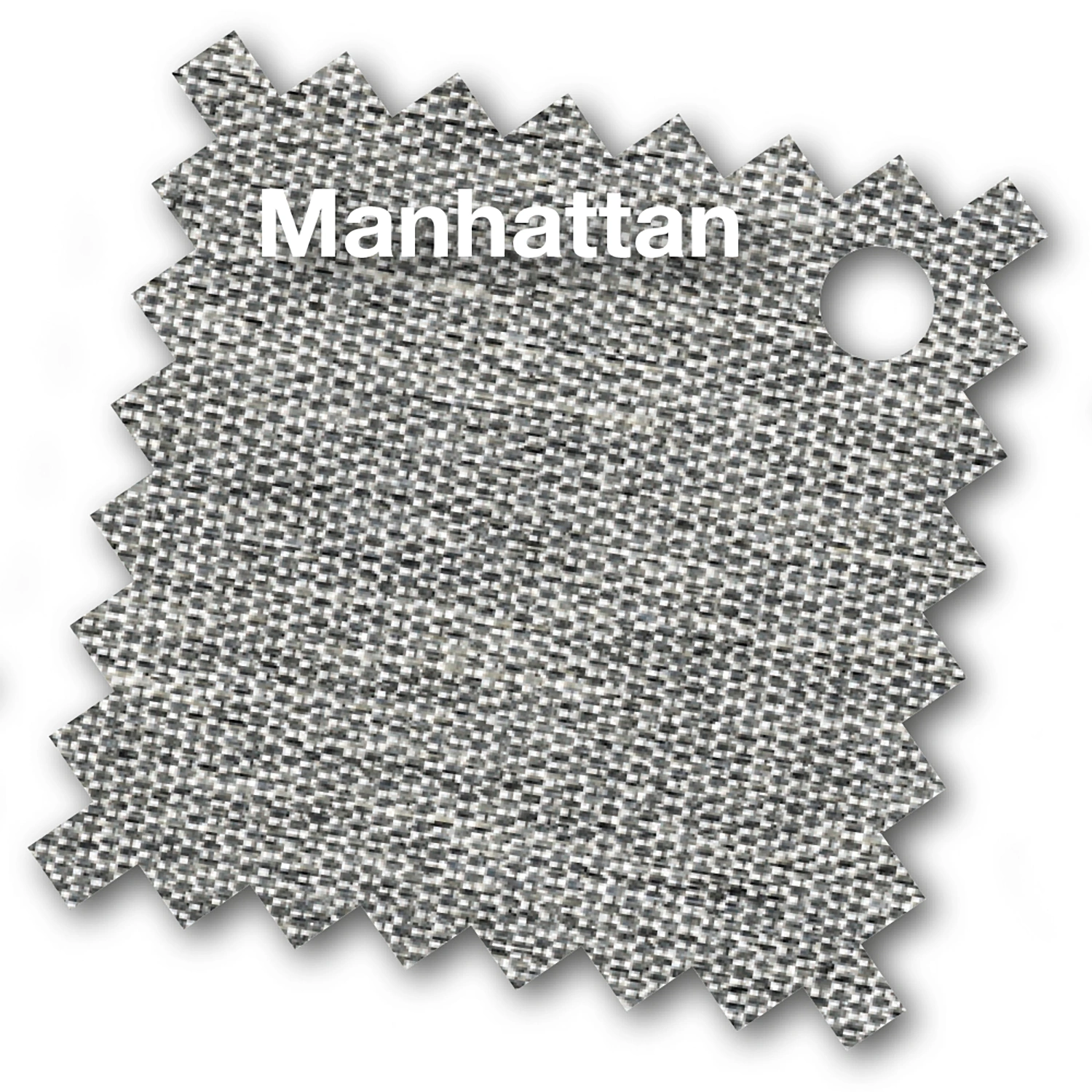 Den lyxiga flerfärgade 240 grams Spuncrylic premiumduken i färgen Manhattan förblir vacker under lång tid, är färgäkta och ger optimalt skydd mot solen; upp till 98 % UV-skydd. Duken har en vatten- och smutsavvisande beläggning och tygspännare.