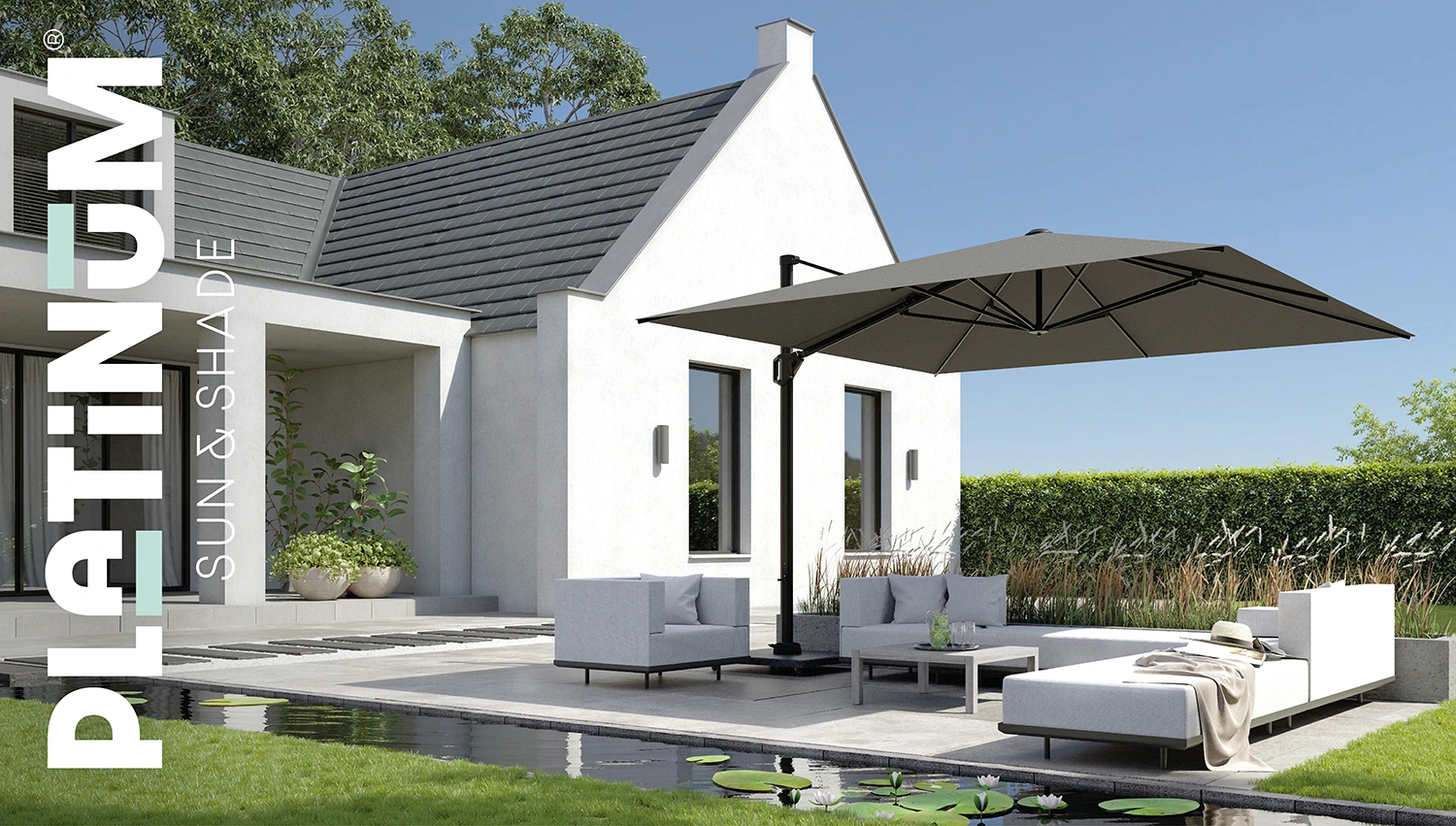 Parasollet levereras utan bas eller fotkryss. Parasollet kräver en parasollfotsvikt minst 120 kg. Vi rekommenderar att du placerar detta parasoll på en parasollfot från Platinum Sun & Shade. Dessa är försedda med hjul så att parasollet är lätt att flytta. Platinum Sun & Shade erbjuder även In-Ground parasollfötter som kan grävas ner eller gjutas fast i marken. Detta ger dig mer utrymme på din uteplats.