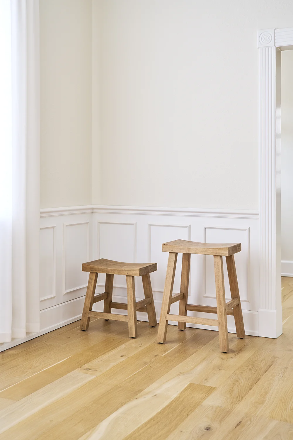Charles är ett rustik pall från Sika Design i teak. Teaken är återvunnen och tas från gamla hus och båtar, varje pall är därför unikt och liknar inget annat. Charles finns i två höjder, här visas den lägre pallen.