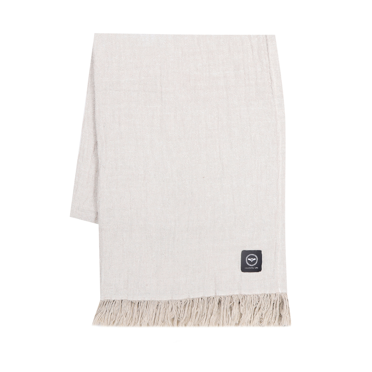 Clara är en tunn, lätt pläd i en naturlig linnefärgad ton med vit detalj. Den passar utmärkt som ett mjukt lager i soffan, på sängen eller som ett diskret tillskott under ljumma kvällar. Med sina mått på 130×170 cm är den enkel att vika, drapera eller ta med ut på terrassen. Den avskalade färgskalan gör den lätt att kombinera med olika typer av inredning.