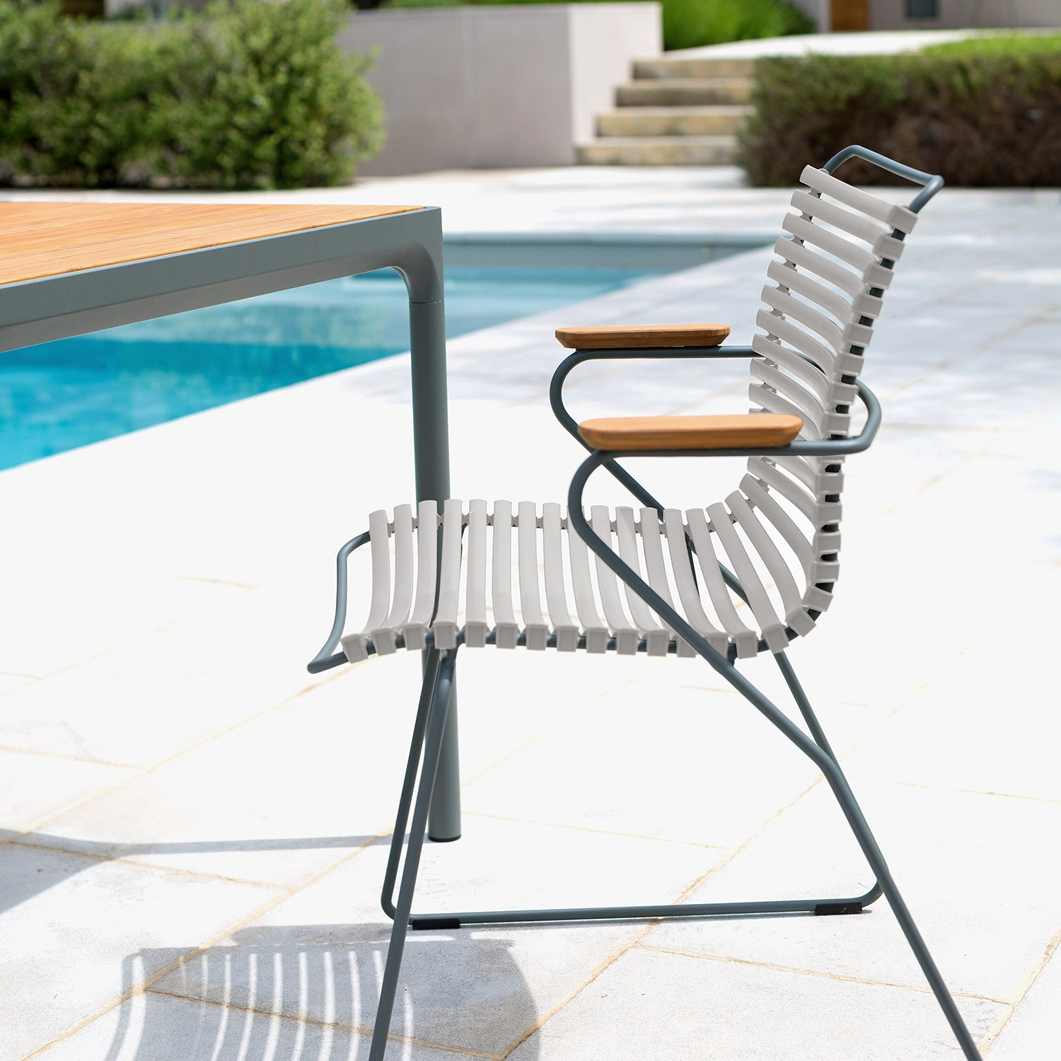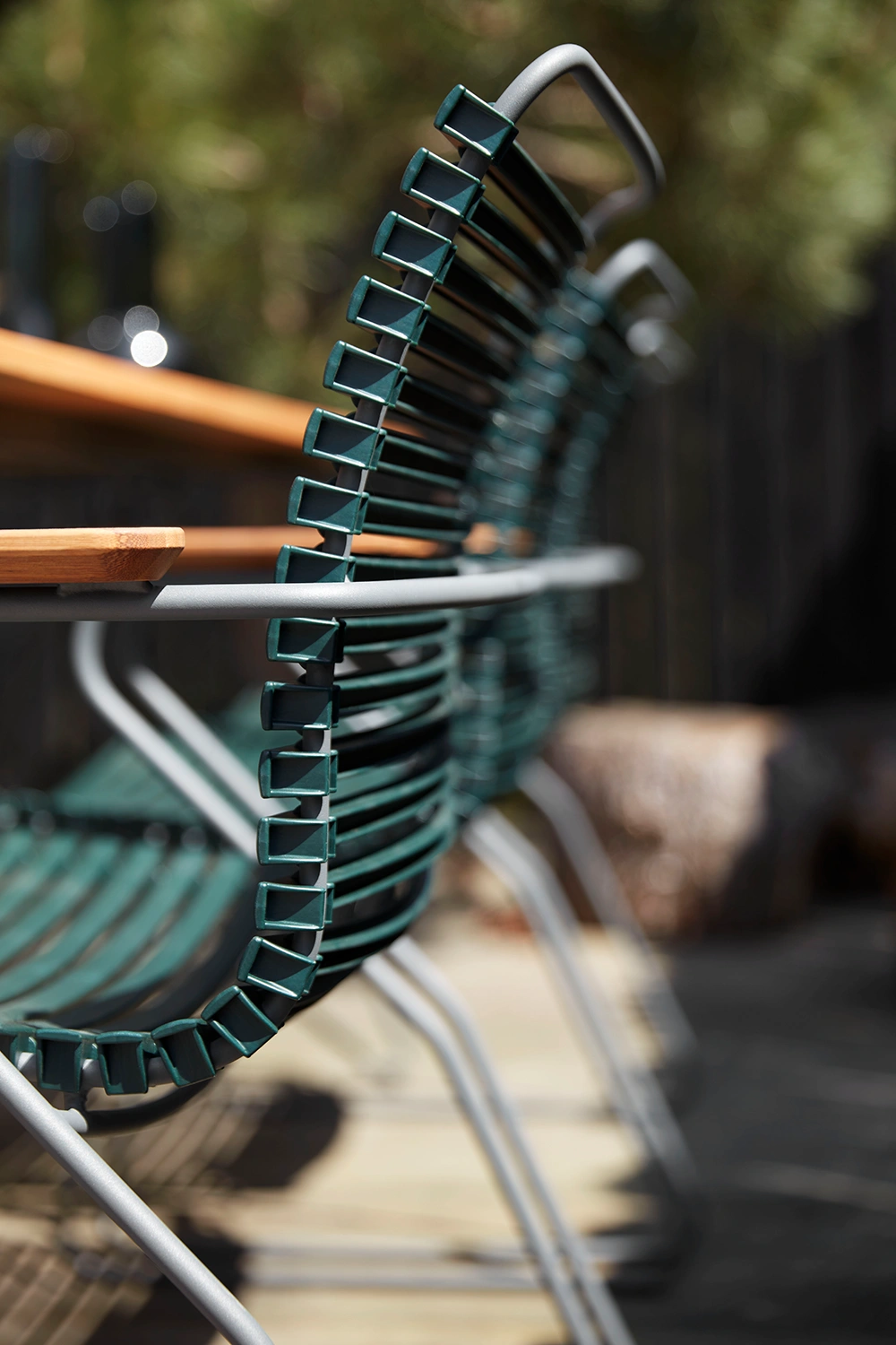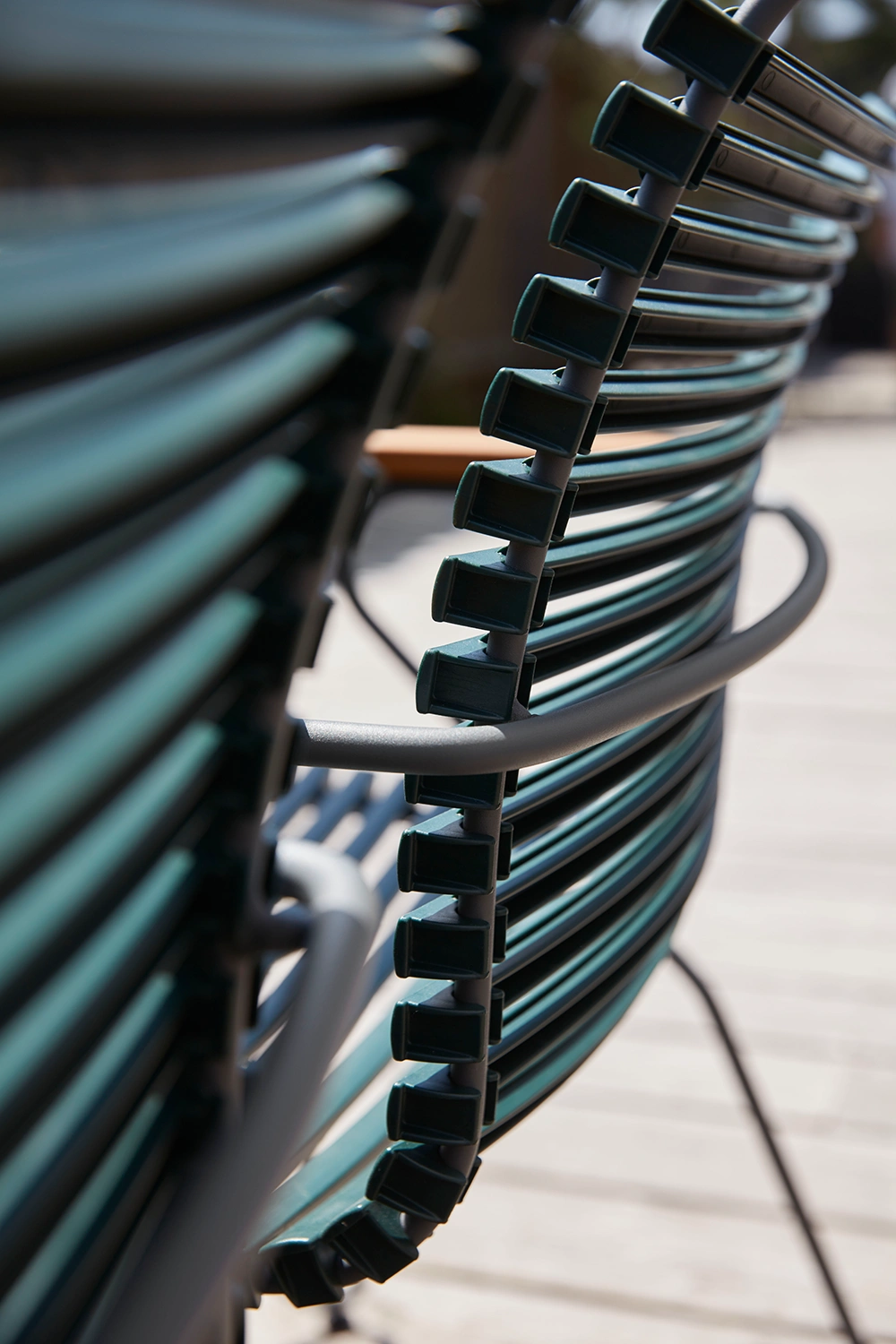 Click karmstol är tillverkat av ett pulverlackerat stålstativ med enkla, ergonomiskt väl genomtänkta plastlameller. Lamellerna går lätt att plocka av och ersätta med nya i andra färger, på så sätt kan du skapa dig en helt unik stol. Lamellerna är utformade så att de sviktar precis lagom, därför behövs ingen dyna.