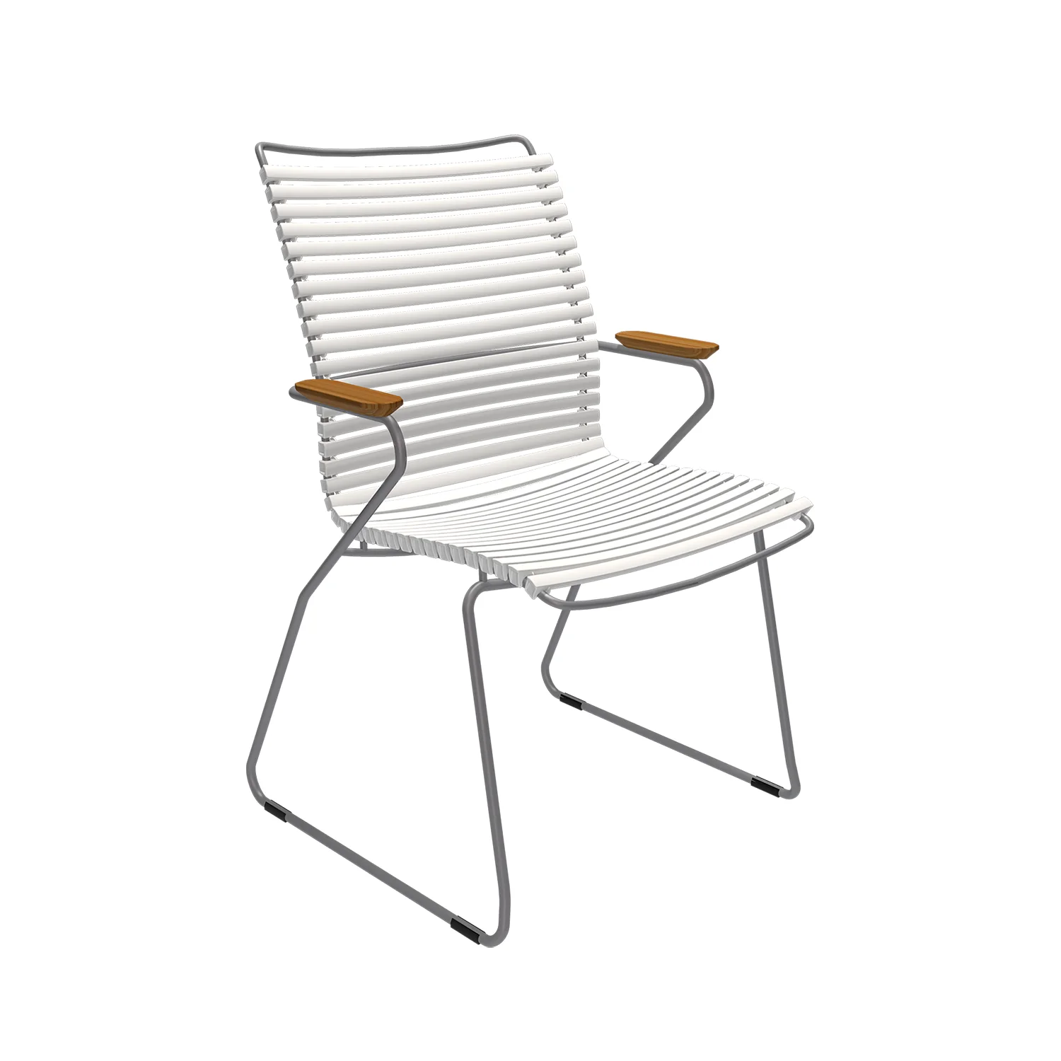 Click karmstol med hög rygg, armstöd i bambu och plastlameller i färgen muted white.