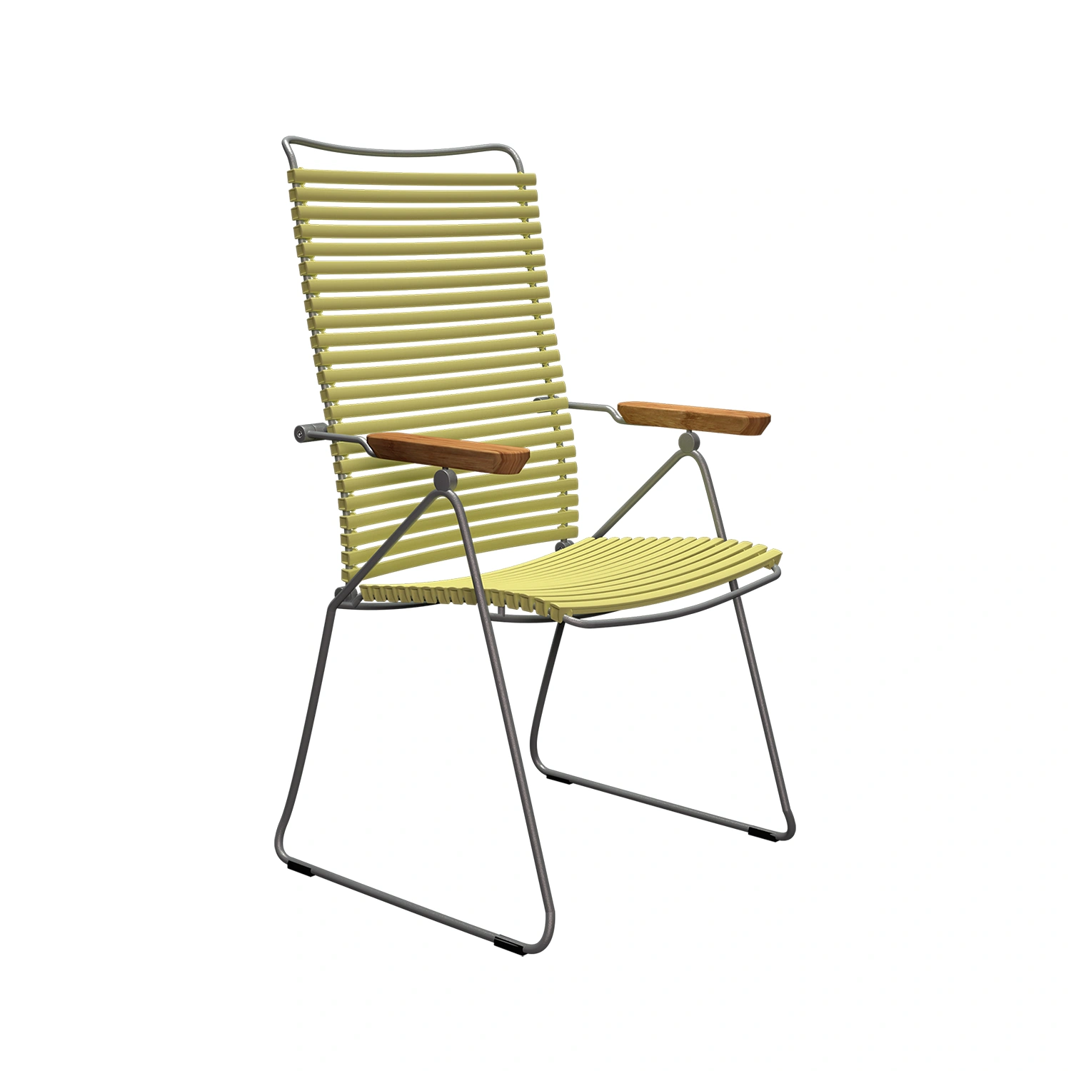 Lamellerna är utformade så att de sviktar precis lagom, därför behövs ingen dyna. Stolen har armstöd av bambu. I samma möbelserie finns dessutom flera olika däckstolar och solstolar. Stolen kombineras med fördel till ett av Houes egna matbord.