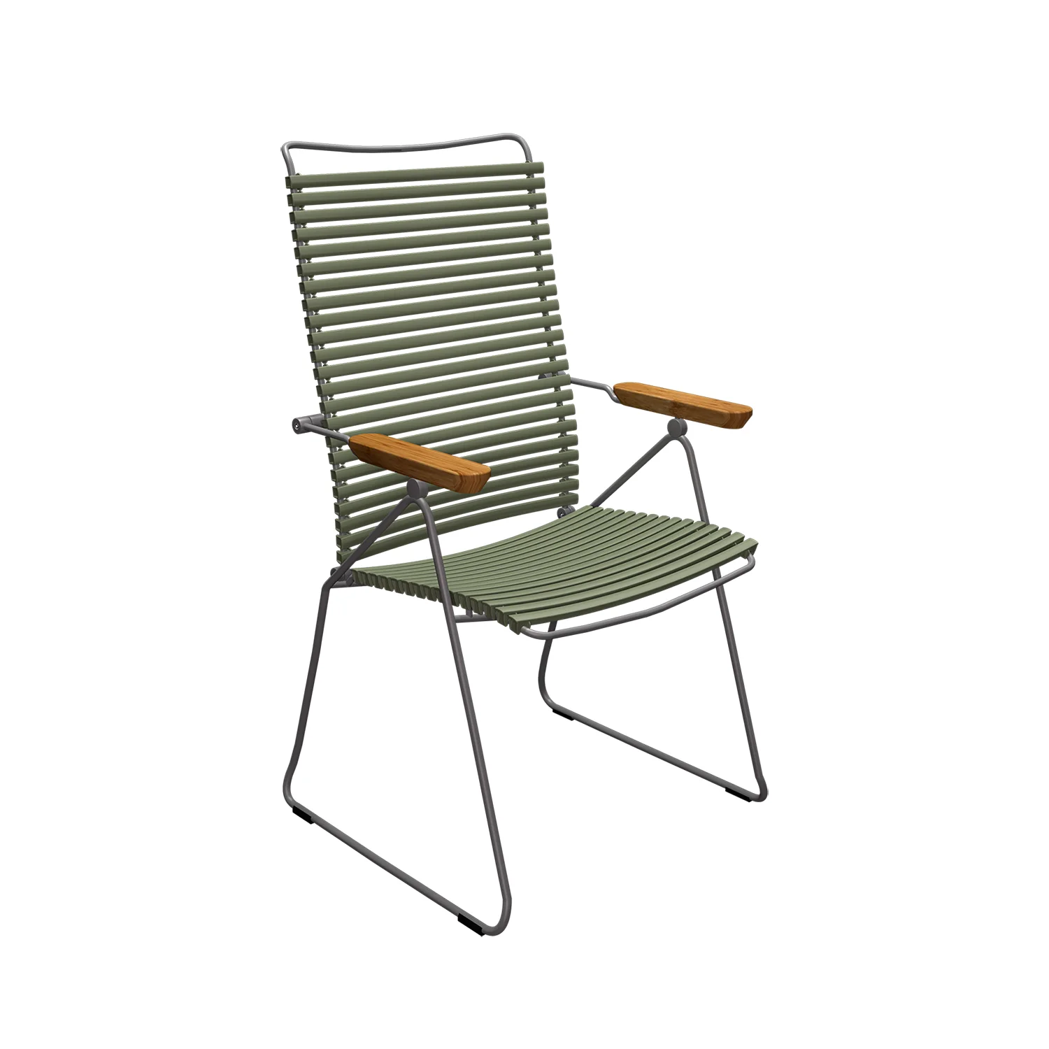 Stolen har armstöd av bambu. I samma möbelserie finns dessutom flera olika däckstolar och solstolar. Stolen kombineras med fördel till ett av Houes egna matbord.