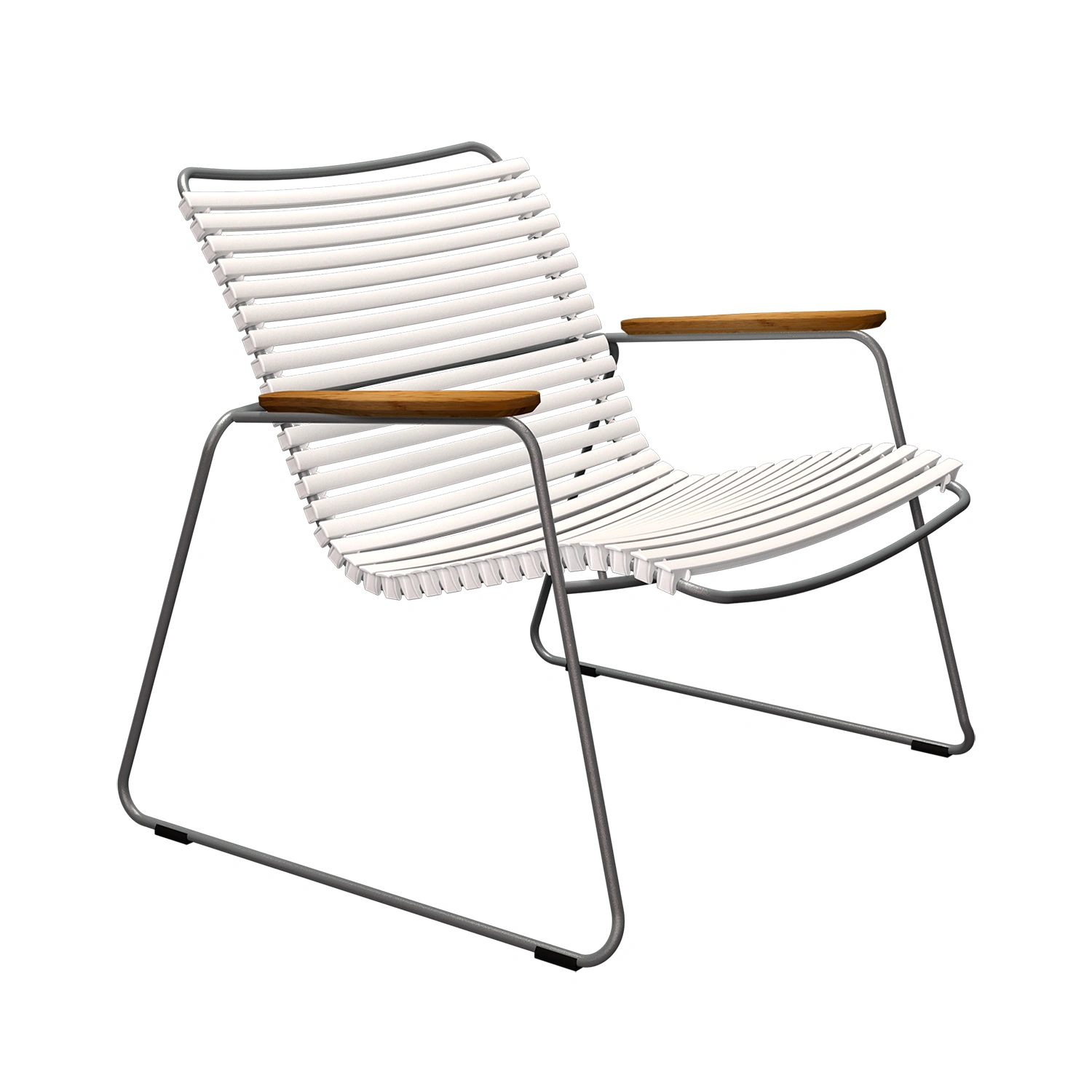Click Roomy loungefåtölj med armstöd i bambu och plastlameller i vitt.