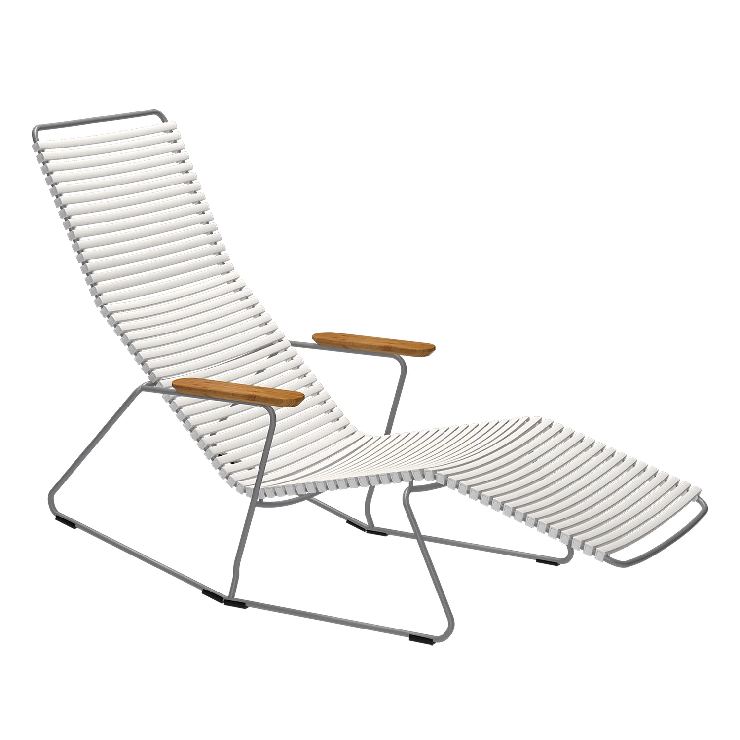 Click Sunrocker från Houe, här i färgen muted white med armstöd i bambu. Muted White är en ny färg inför säsongen 2025.