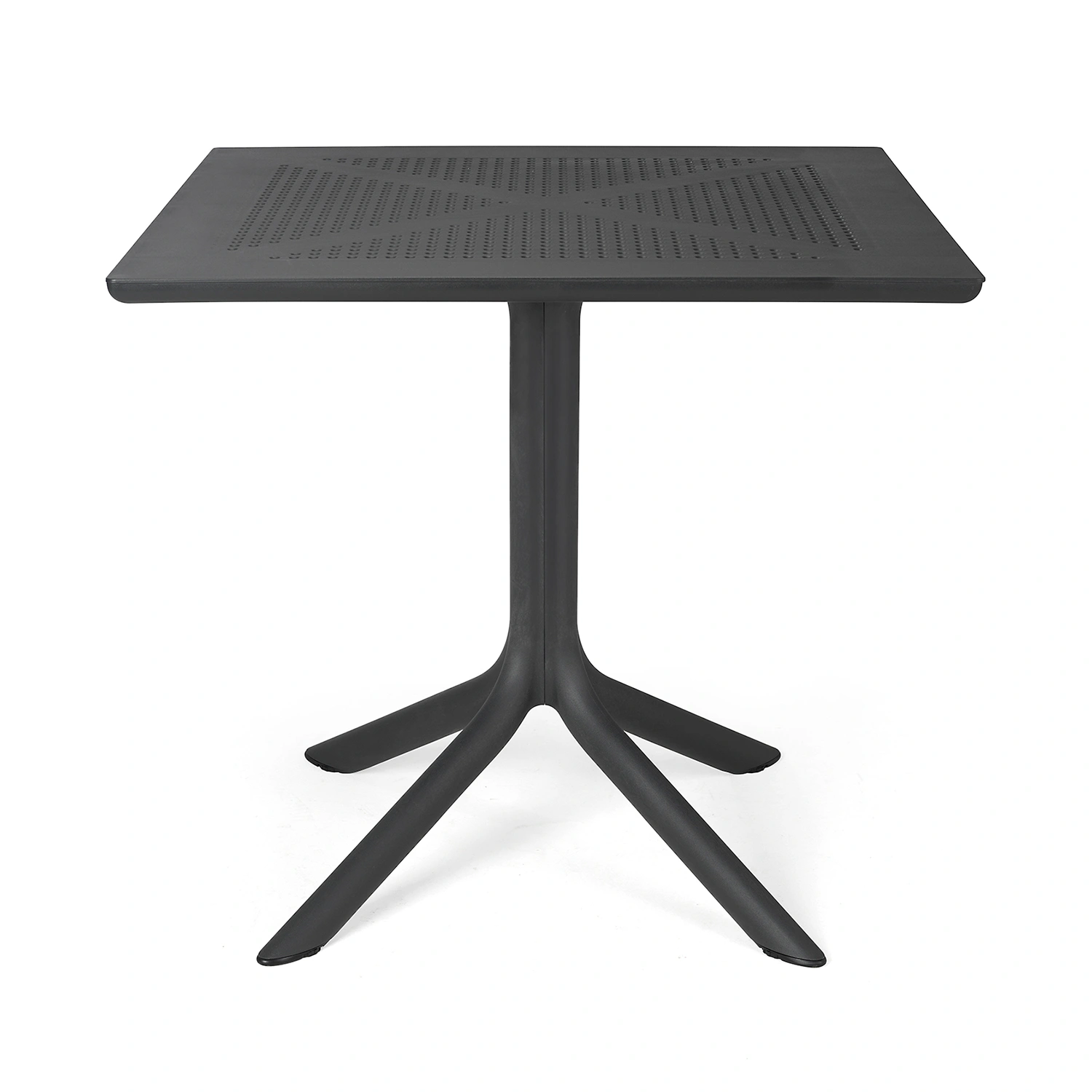 Speciellt designat för att ta väldigt lite plats, Clip är ett professionellt fyrkantigt bord i UV-behandlad glasfiberpolypropen. Centralt stöd med mittpelare och fyra ekrar.