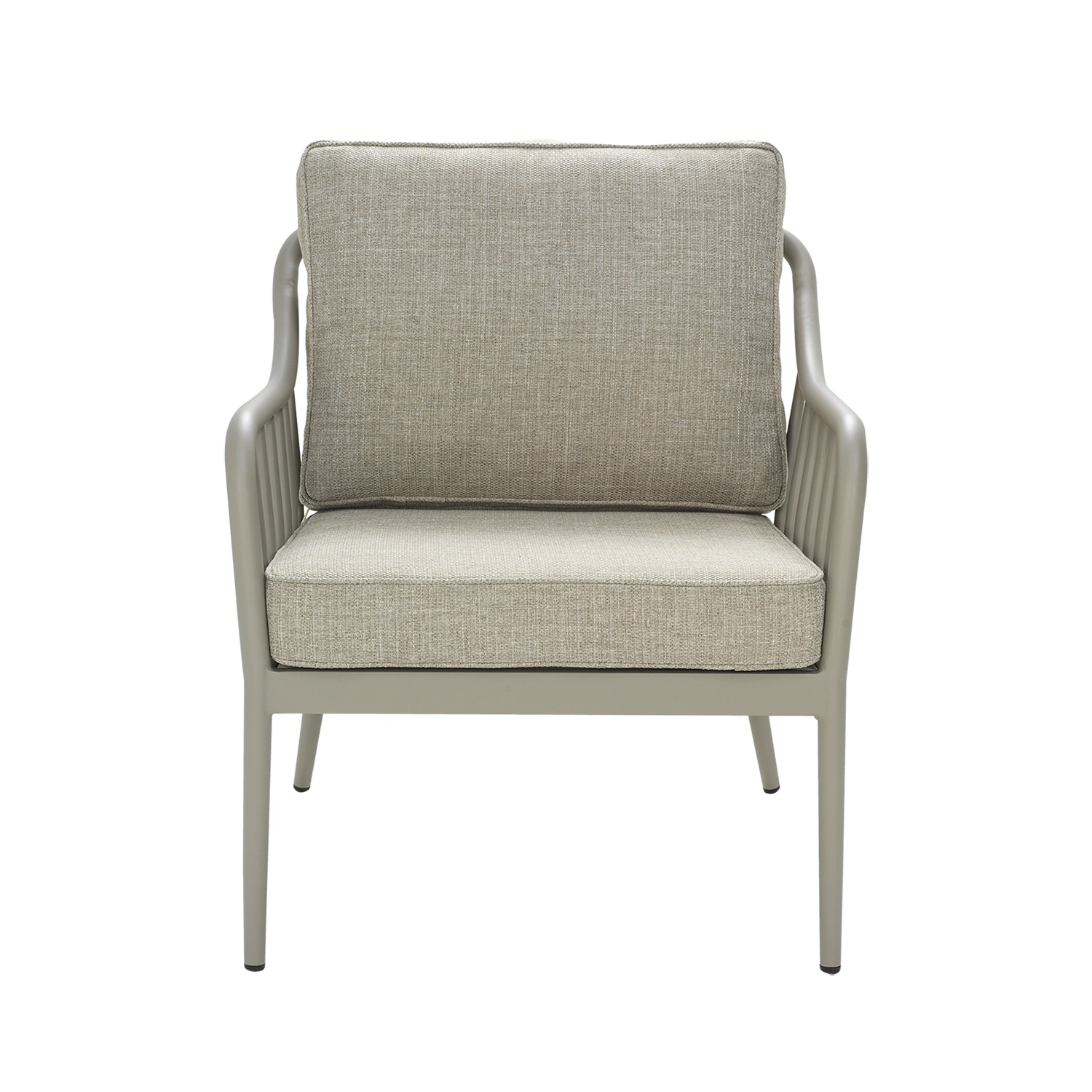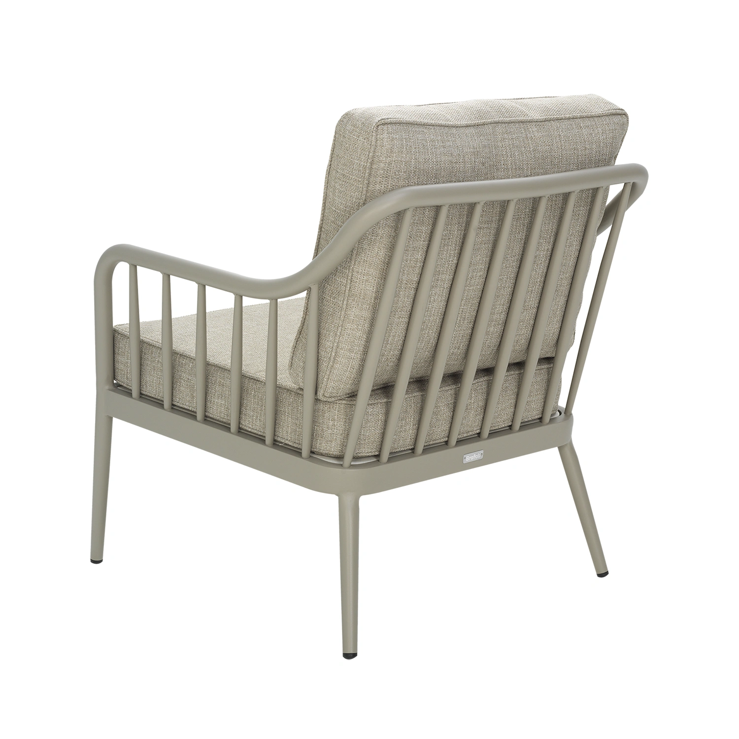 Fåtöljen har en mattlackad stomme i khaki och är klädd med mjuka dynor i färgen burlap beige. Dynorna tillför både komfort och en naturlig, varm ton som passar utmärkt i både moderna och klassiska miljöer. Coleville ingår i en komplett soffgrupp från Brafab och kan med fördel kombineras med något av deras soffbord.