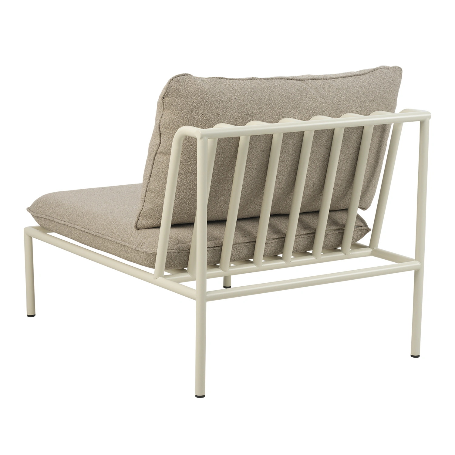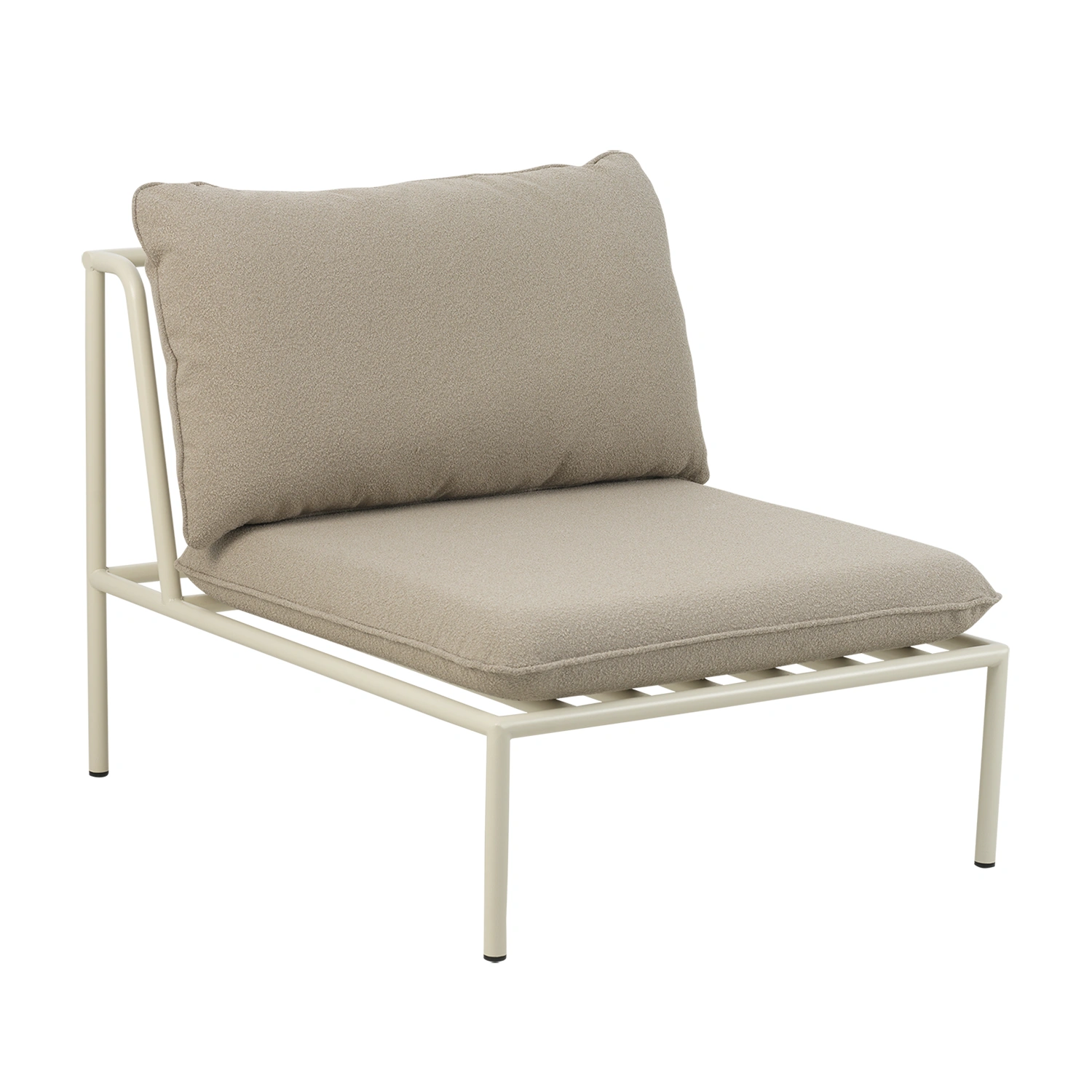Collier mittmodul är en flexibel del i en modulär loungeserie där du själv bestämmer soffans storlek. Den pärlvita stommen i böjt aluminium ger ett ljust och elegant uttryck, medan dynorna i teddy beige tillför mjukhet och värme.
