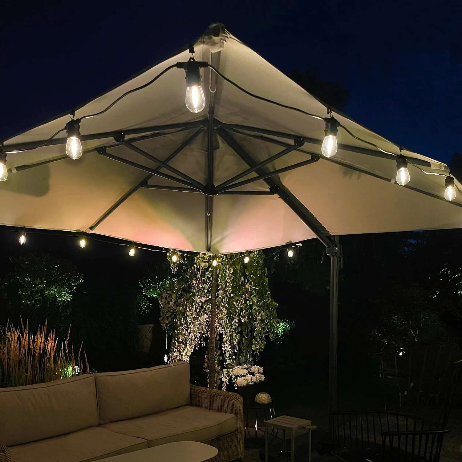 Till skillnad från många andra ljusslingor är lamporna utbytbara, vilket gör dem till ett mer kostnadseffektivt och hållbart val. Lamporna är tillverkade av transparent plast för hög hållbarhet och motståndskraft mot väderförhållanden, vilket innebär att du kan ha ljusslingan tänd året runt. Cosy är det perfekta valet för flexibel belysningsdesign i trädgårdar, uteplatser eller partytält.