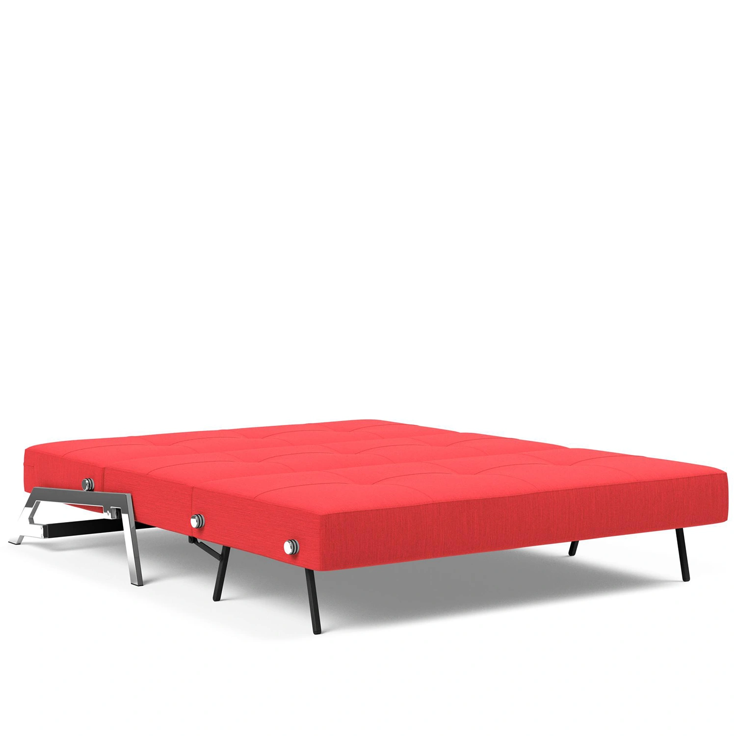 Cubed 02 bäddsoffa från Innovation Living med bredden 160 cm. Cubed är en kompakt och fällbar soffa som kan användas som en extrasäng. Den visas här med ben i kromad metall, inkluderat är två ryggkuddar i samma tyg som stolen.