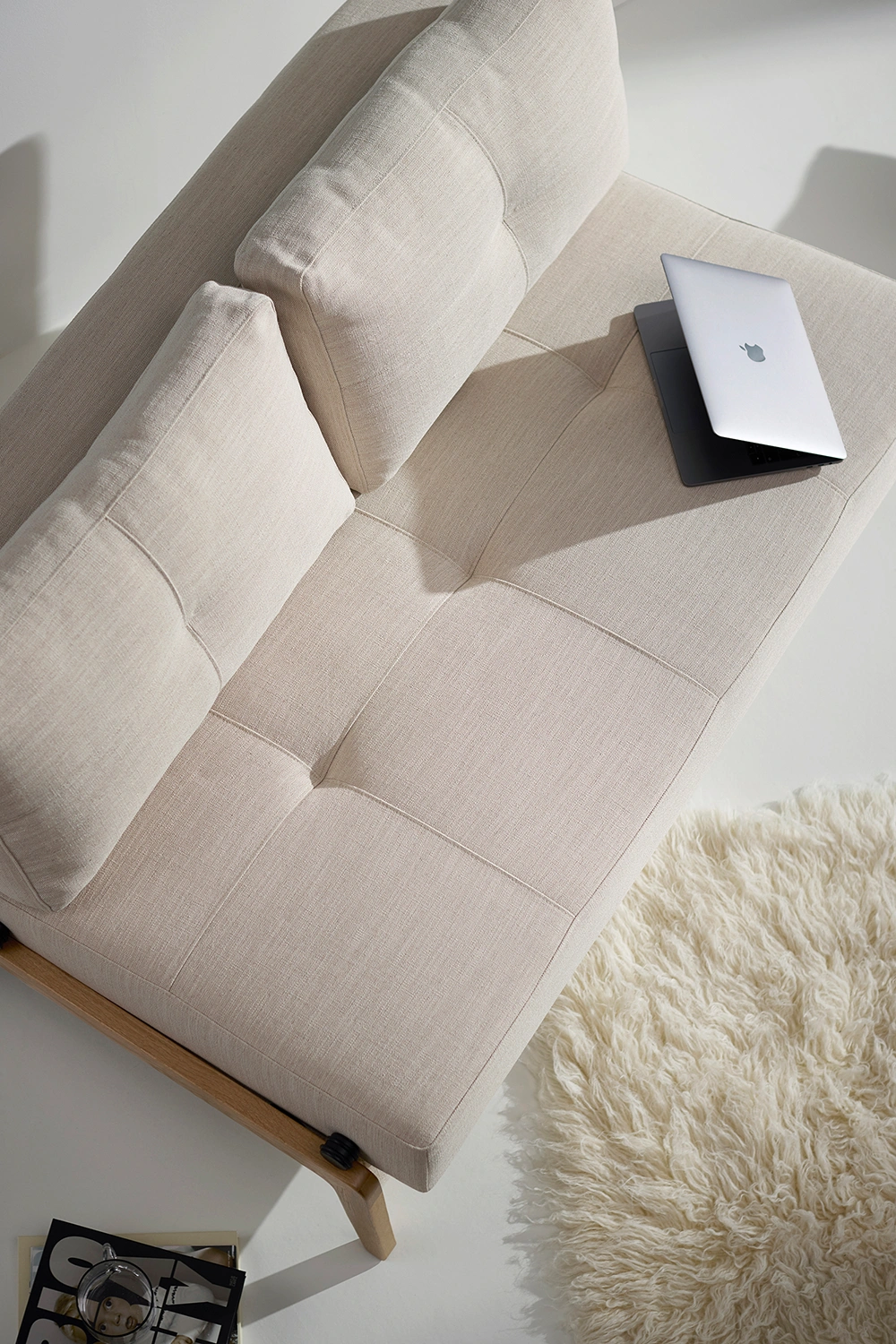 Funktionell bäddsoffa i naturlig skandinavisk design. Cubed Wood bäddsoffa är perfekt för kompakt boende. Soffan fälls ut till en bekväm säng för 2 personer.