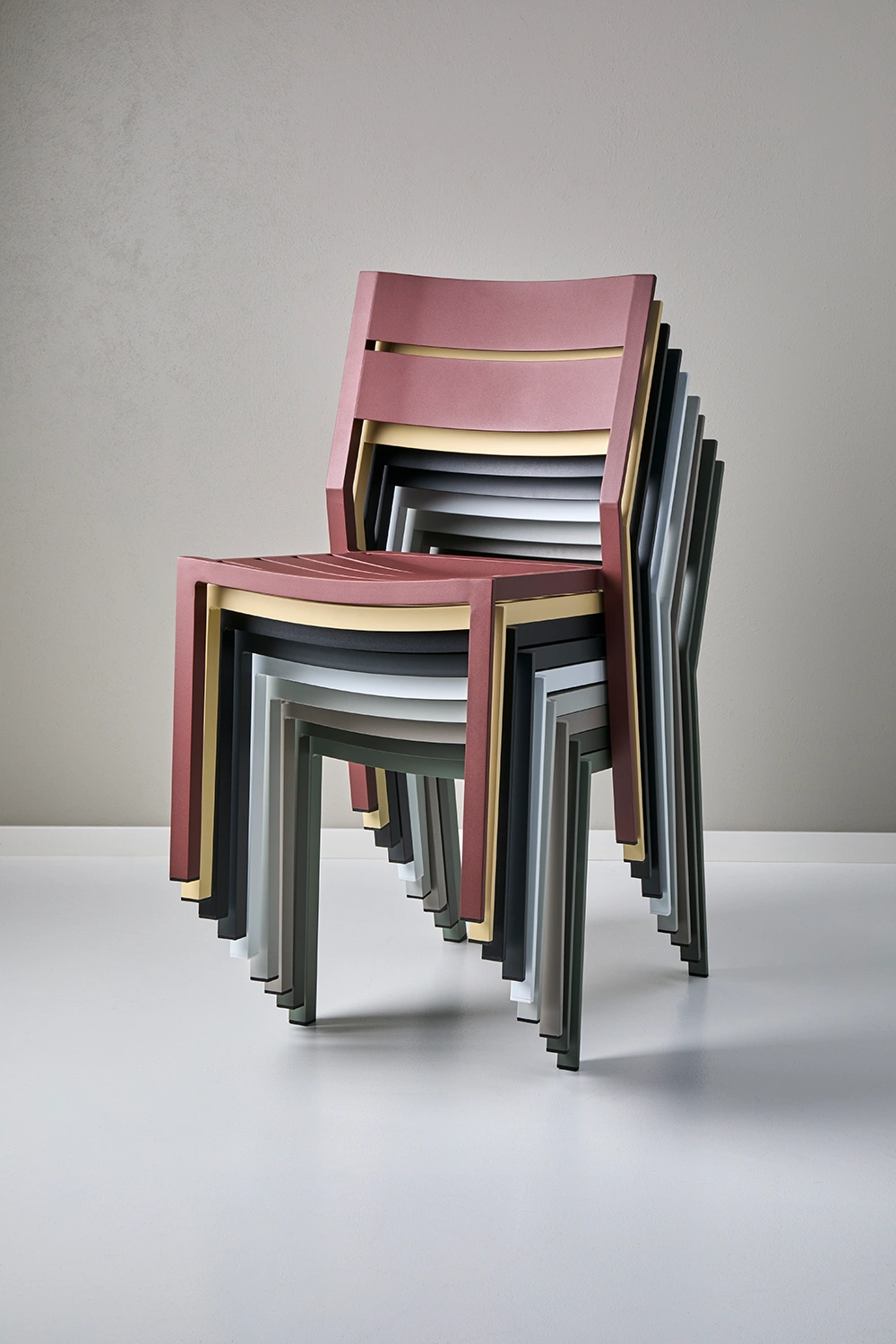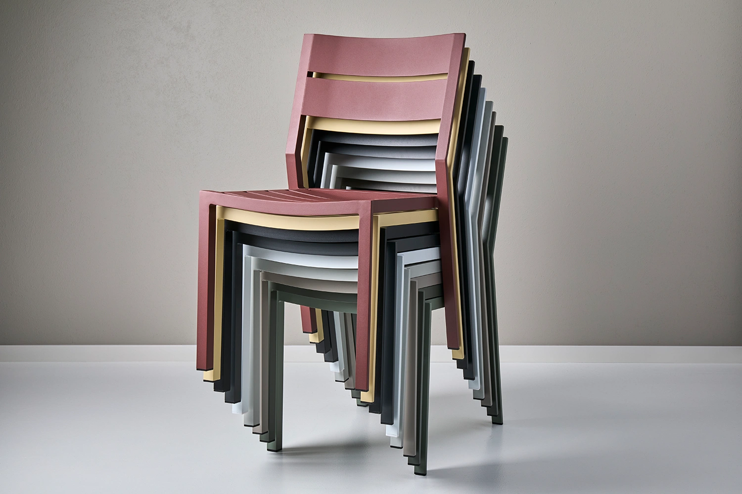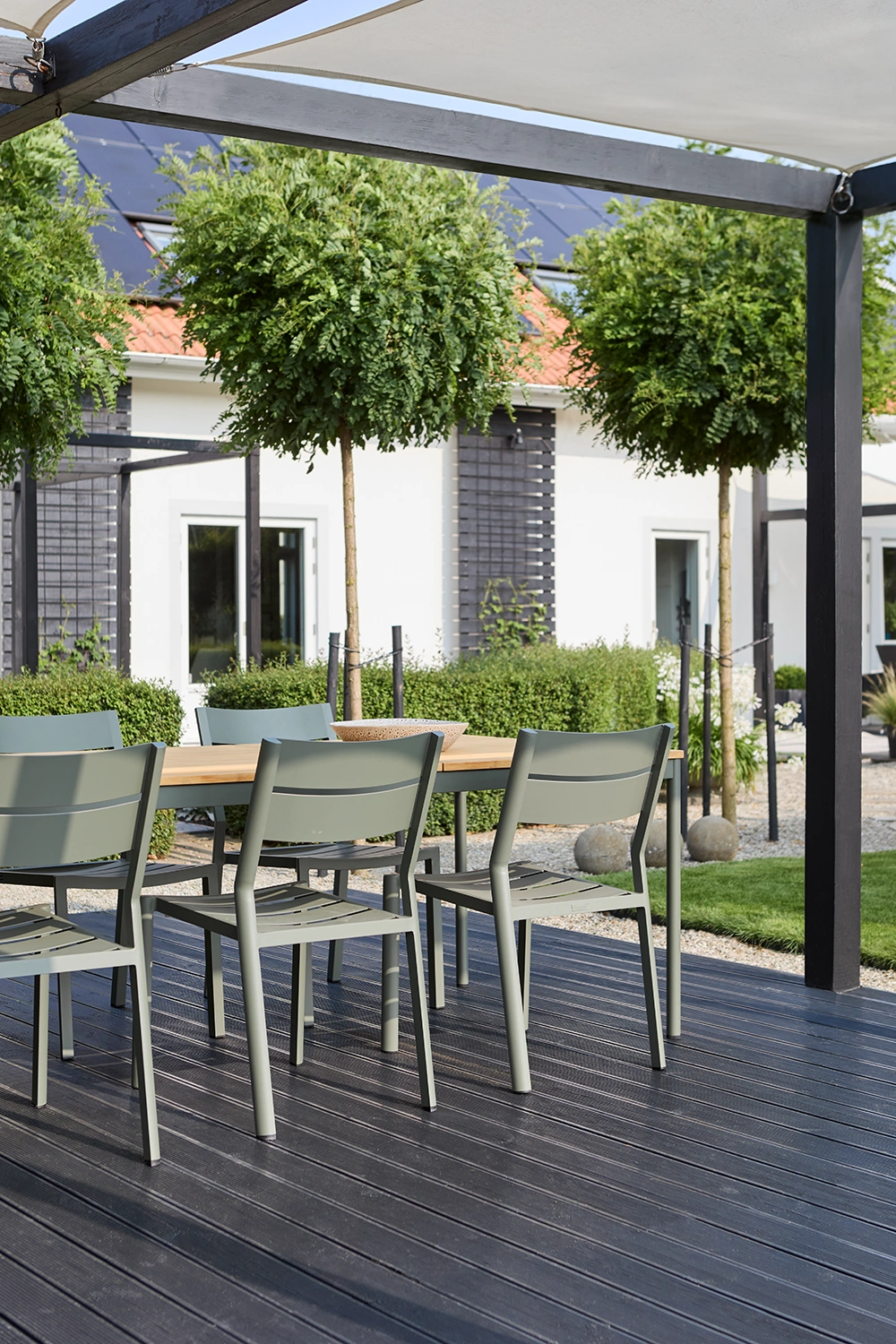 Delia matstol utan armstöd, i mörkgrön (nordic green) pulverlack.