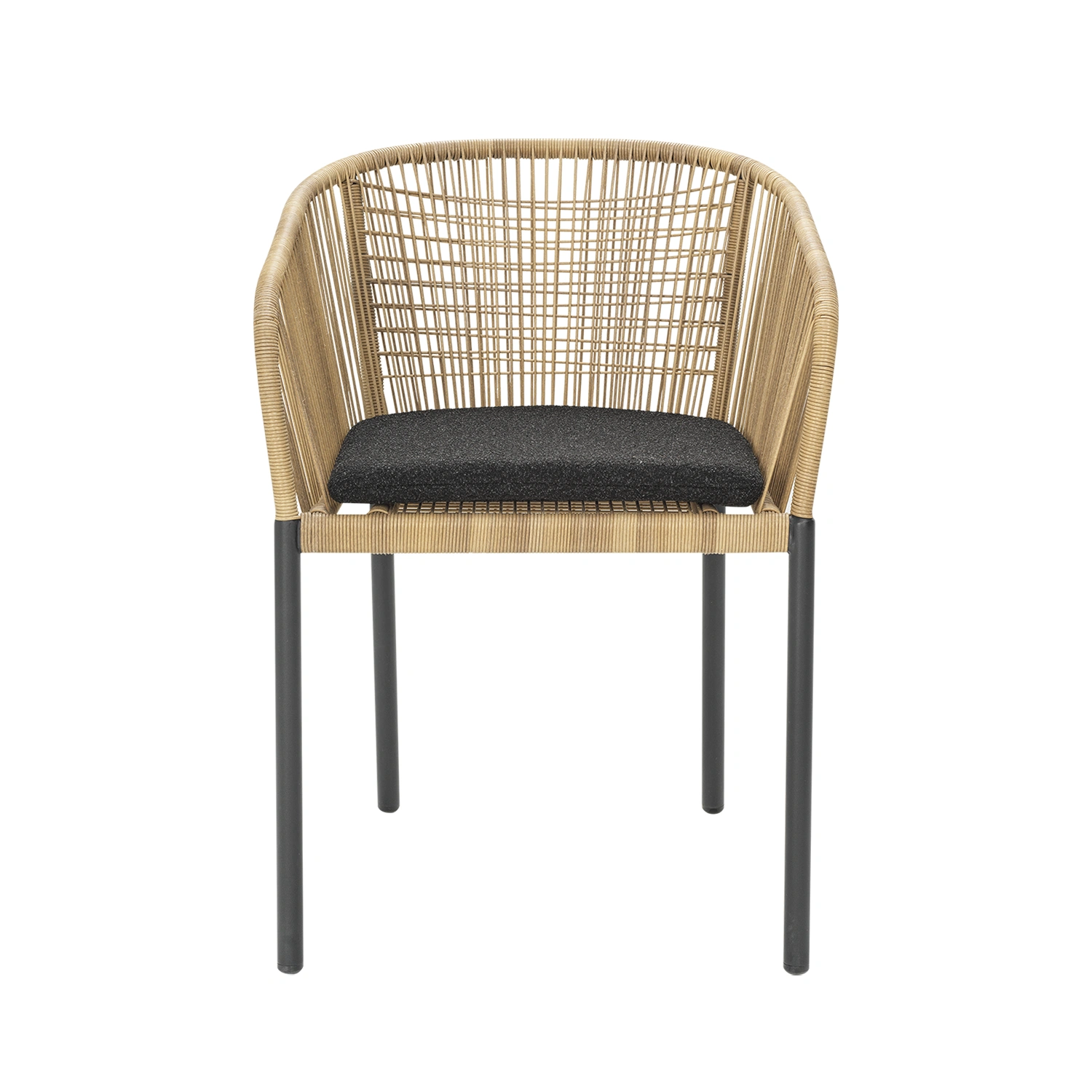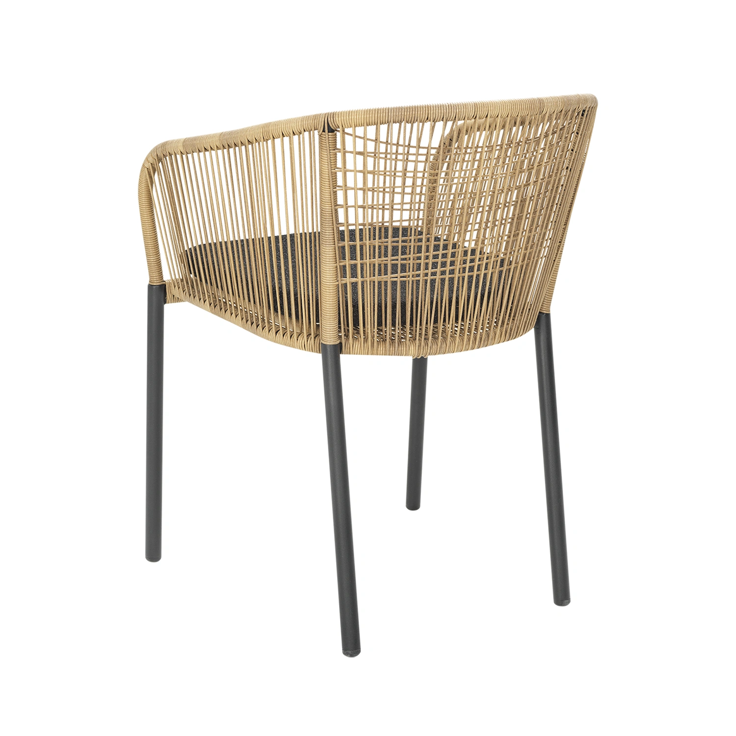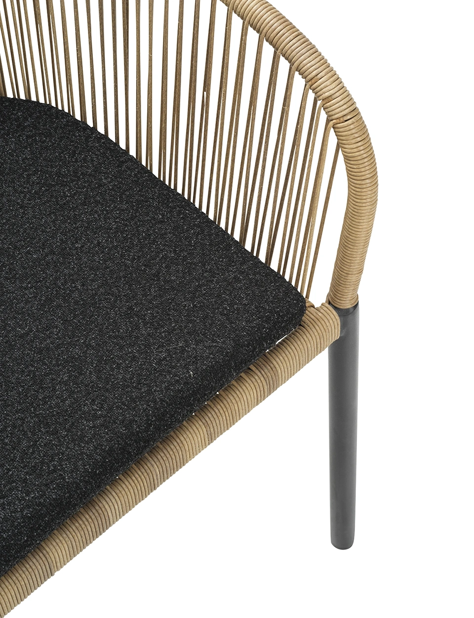 Sitsen är vackert flätad i konstrotting i en varm naturton som ger ett mjukt, organiskt intryck. För extra komfort ingår en mjuk dyna klädd i trendigt Teddy-tyg. Delta finns även med mörkgrått flätat textilrep för en mer grafisk och modern känsla.
