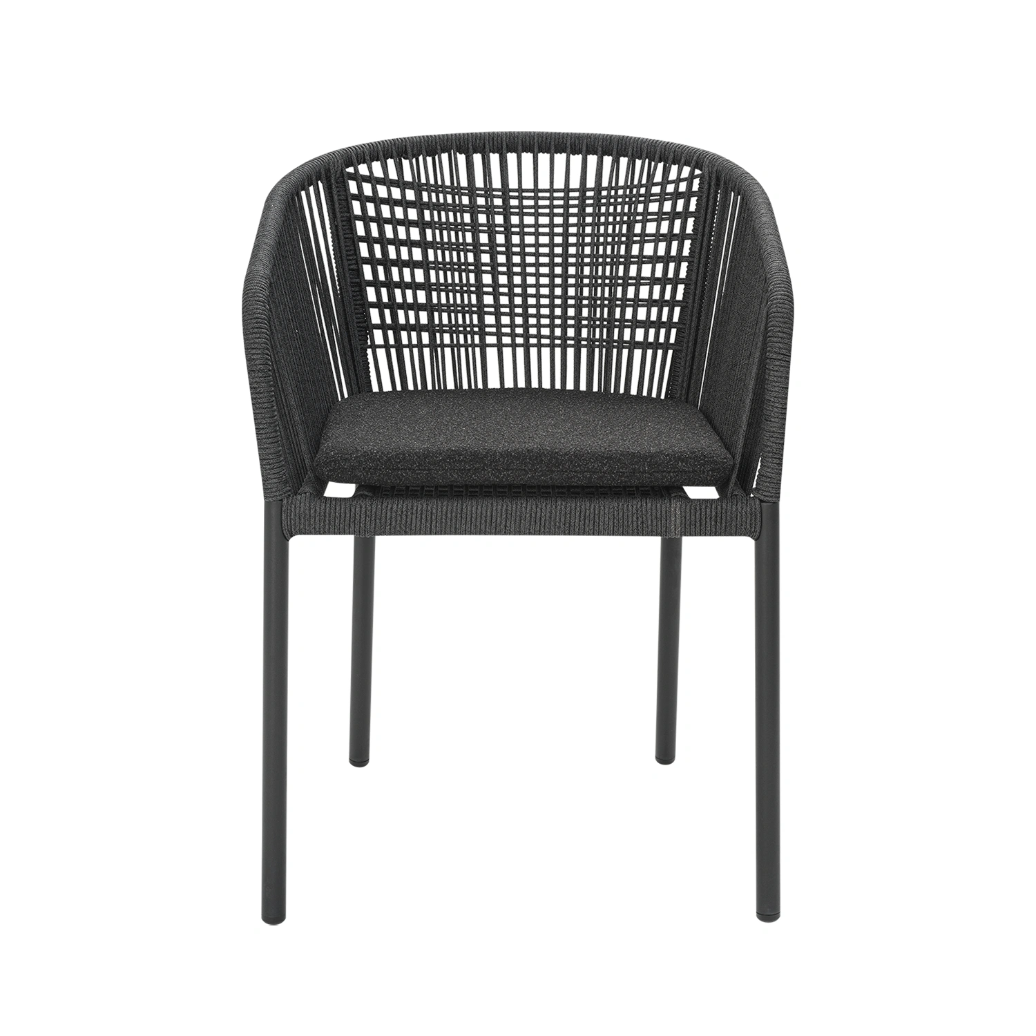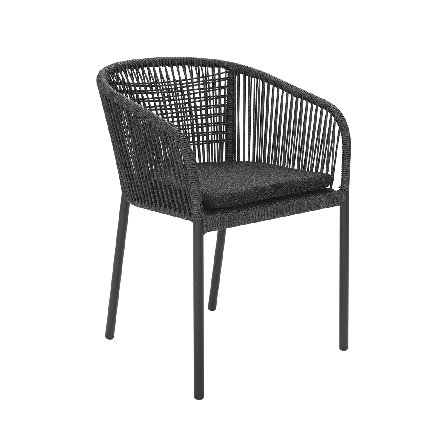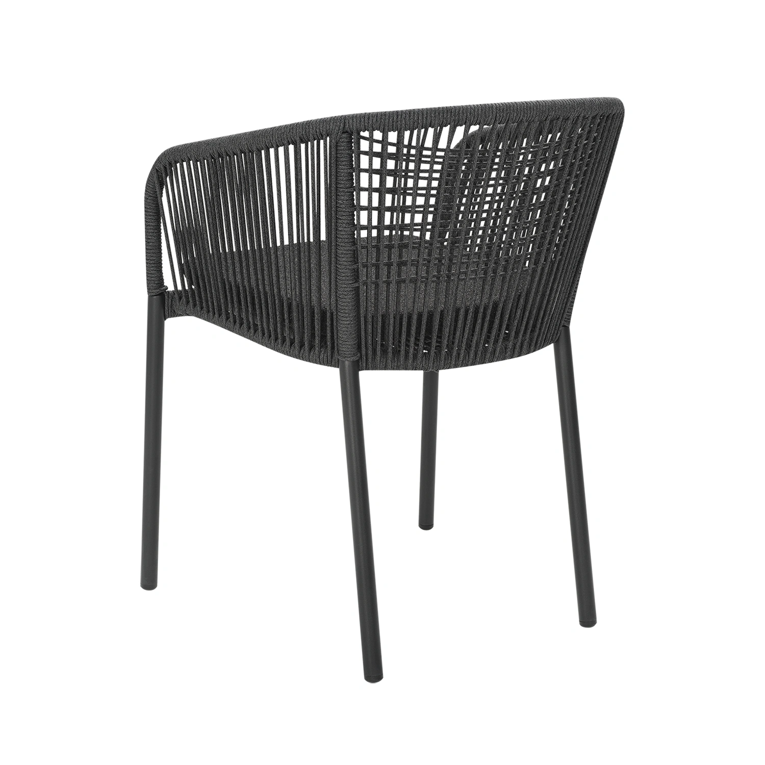 Delta är en stilren stol som förenar modern design med praktisk hållbarhet. Den svarta pulverlackerade aluminiumstommen är lätt, robust och motståndskraftig mot rost – perfekt för utomhusbruk året runt.