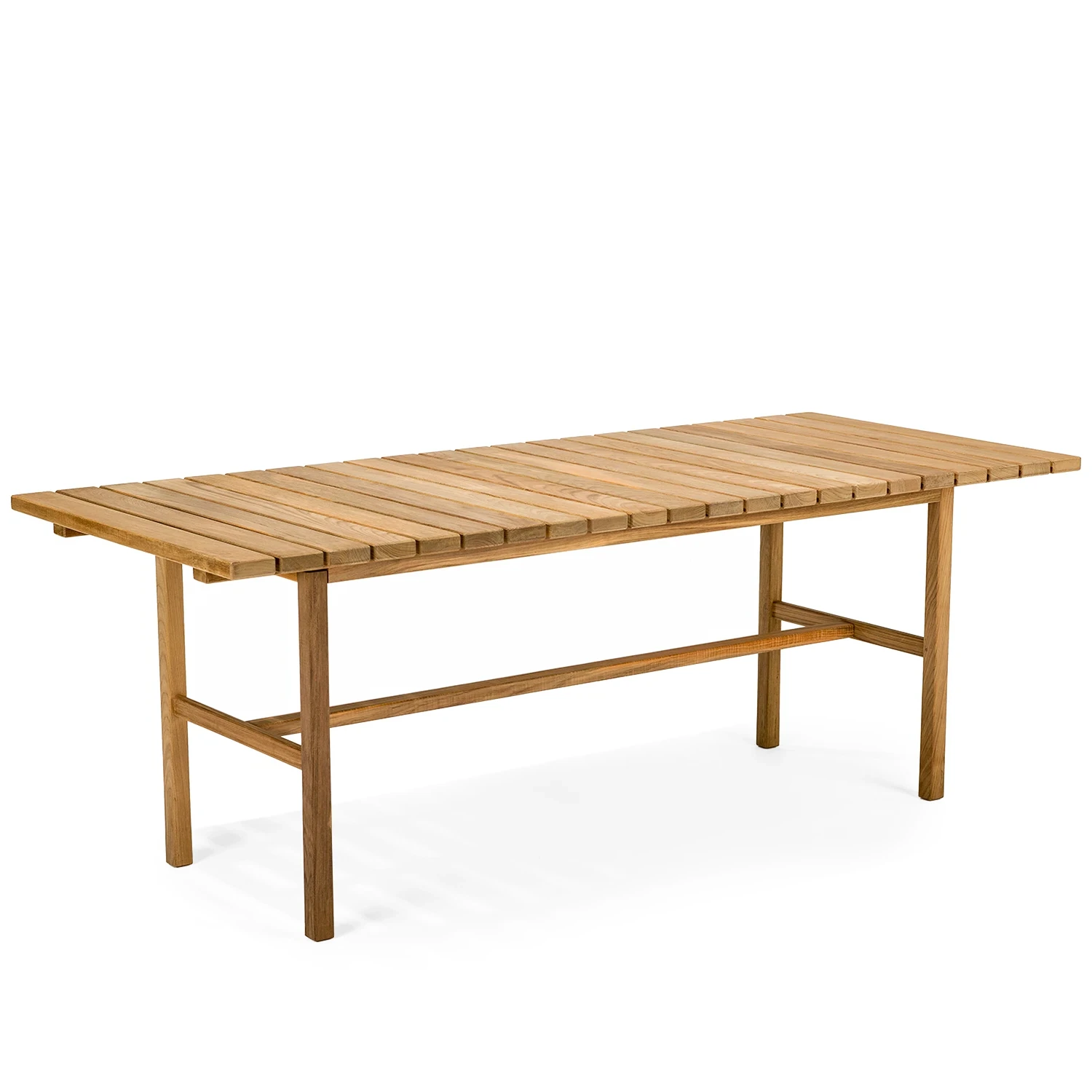 Djurö matbord i teak är ett stilrent och välproportionerat bord med plats för upp till åtta personer. Bordets rena linjer och naturliga träyta ger ett lugnt och tidlöst uttryck som passar lika bra på en skuggig altan som i ett inglasat uterum. Den generösa längden gör det till en funktionell samlingspunkt för måltider och samtal, medan teakens naturliga oljor ger bordet en tålig yta som klarar utomhuslivets påfrestningar.
