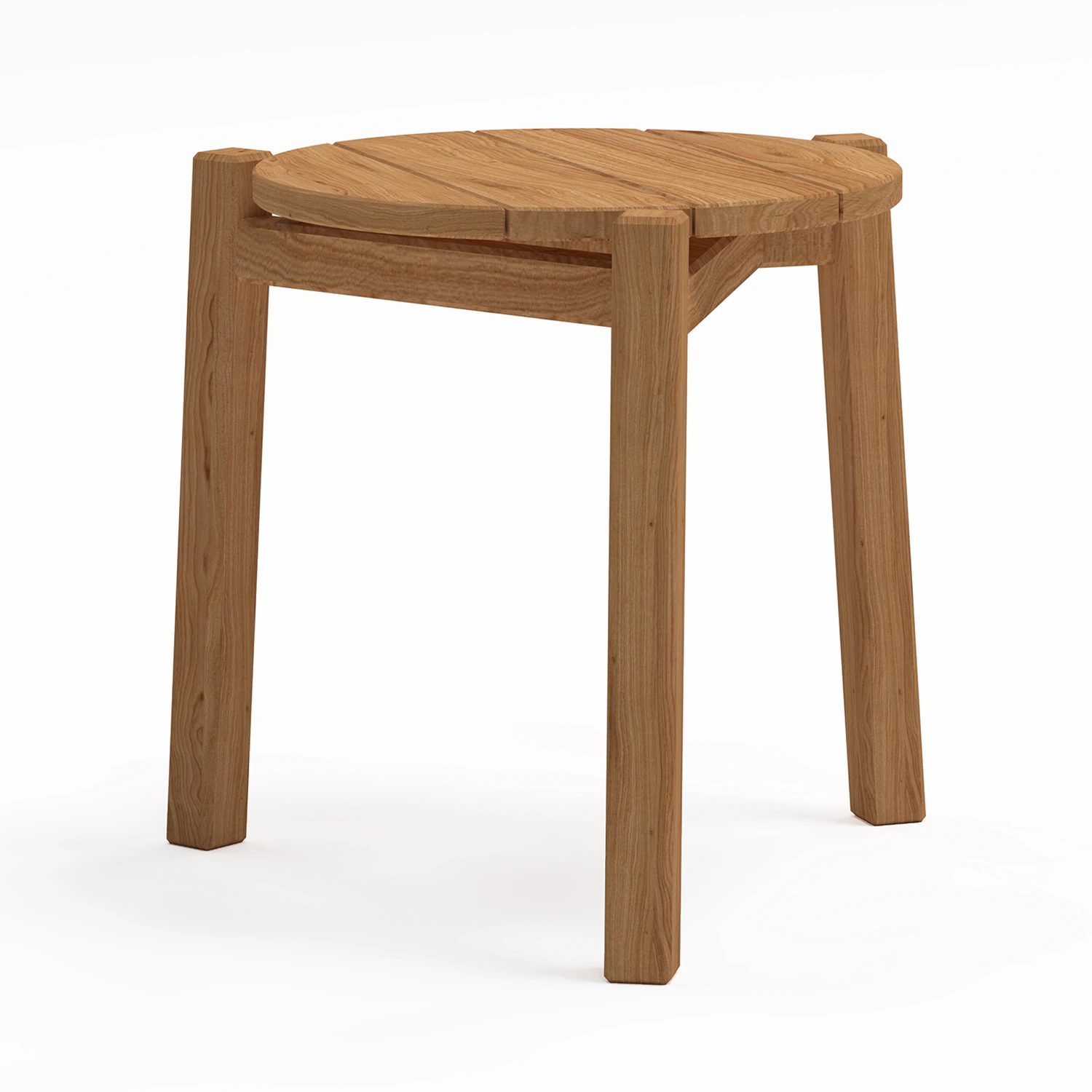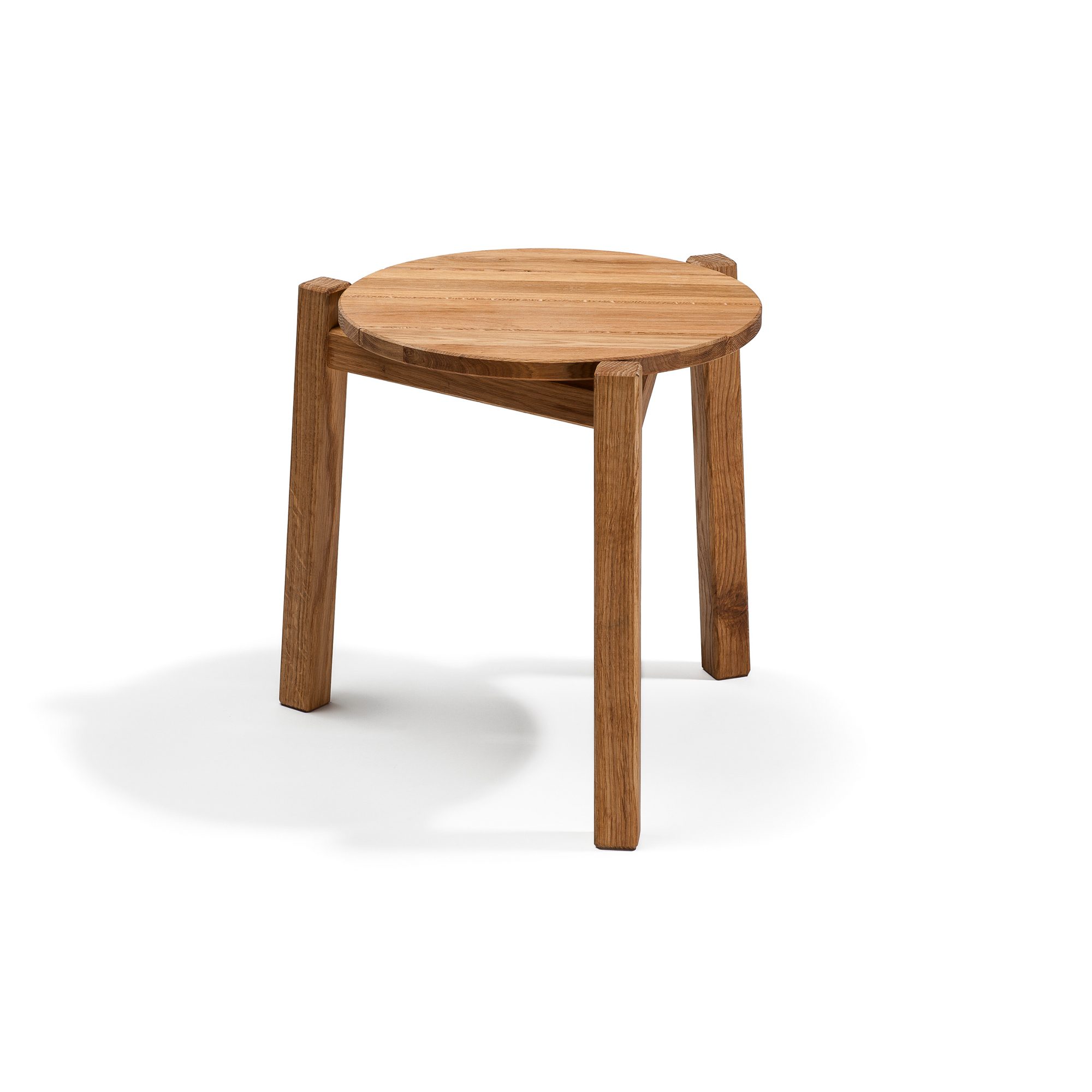 Djurö bord Ø42 cm i massiv teak är ett litet och mångsidigt sidobord som passar lika bra vid en loungefåtölj som mellan två stolar. Den runda formen och det kompakta formatet gör det enkelt att placera, medan teakens naturliga ådring tillför värme och karaktär. Bordet är utformat för utomhusbruk och åldras vackert med tiden – från gyllene ton till silvergrå patina.