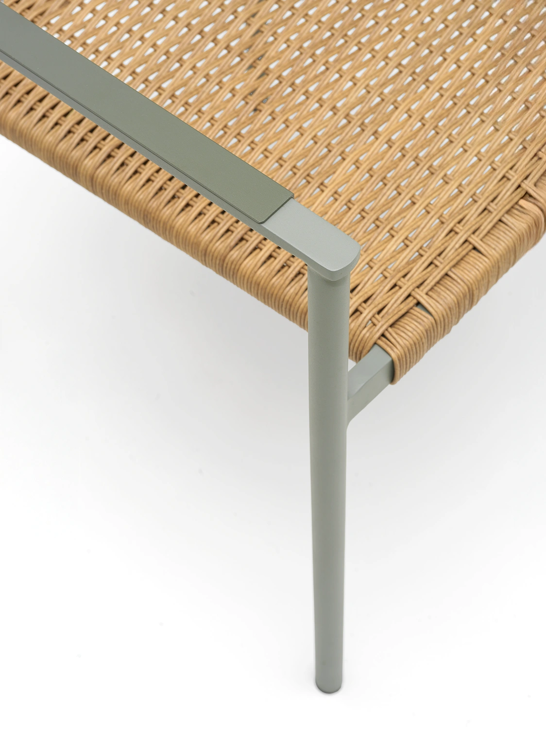 DK hyllar den skandinaviska designen och som för tankarna till mästerverk från 1950-talet. Elegant och stabil stomme i aluminium och med kontrasterande detaljer som lyfter känslan och håller DK aktuell – länge. Kontrastfärgerna på armstödet och den flätade sitsen i konstrotting är detaljer som lyfter stolen. Den genomgående luftiga känslan i designen är ett tydligt arv från de skandinaviska klassikerna. Finns i fyra färger.