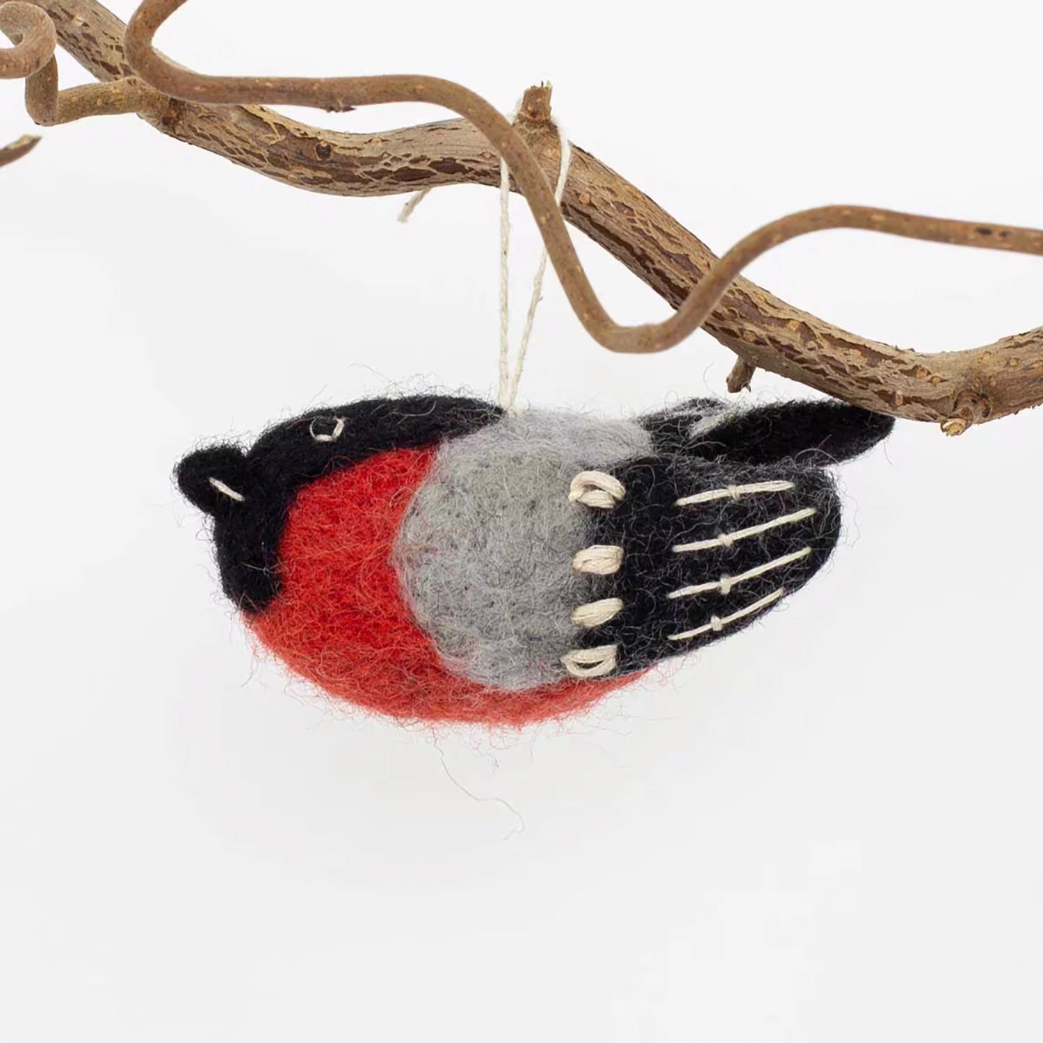 A World of Crafts fina ulldjur från Nepal är ett återkommande inslag vid juletid. Tillverkningen är helt hantverksbaserad och tekniken som används är så kallad nålfiltning. Här en fin domherre.