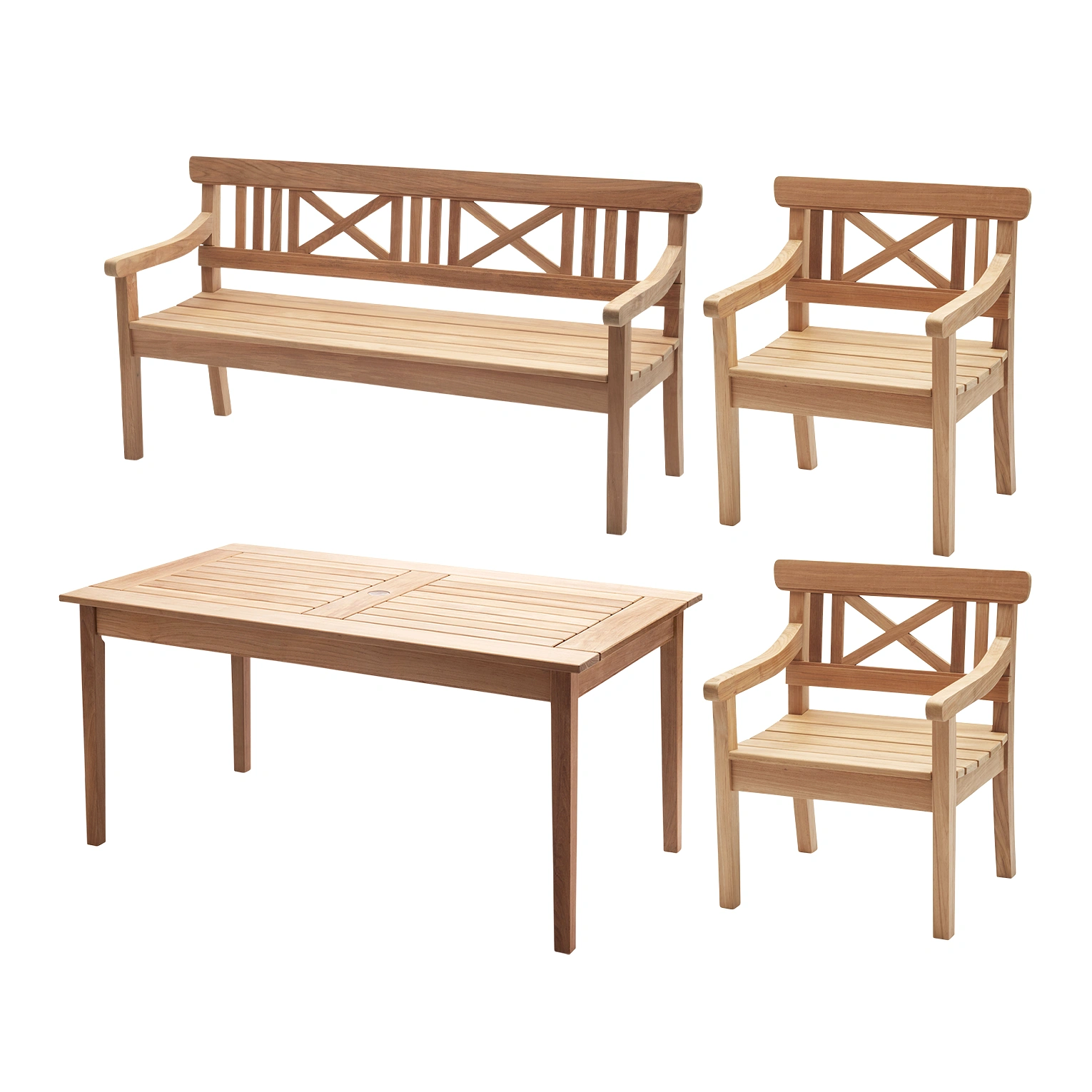 Designad i samarbete med den danske designern Bernt Santesson, är Drachmann-stolen vacker i sig och bekväm som en bekväm plats vid bordet. Stolen i teak är hållbar i alla väder och åldras graciöst och får en silvergrå patina.