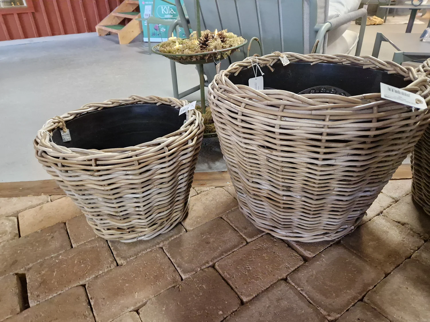 Drypot kruka i naturell rotting med innerkruka i hård plast. Tack vare innerkrukan kan Drypot användas både inomhus och utomhus utan att läckande vatten förstör underlaget. Tänk på att rotting är trä som kommer att bli väderbiten och grå om den förvaras utomhus och utsätts för sol och regn. Utomhusförvaring kommer även förkorta krukans livslängd.