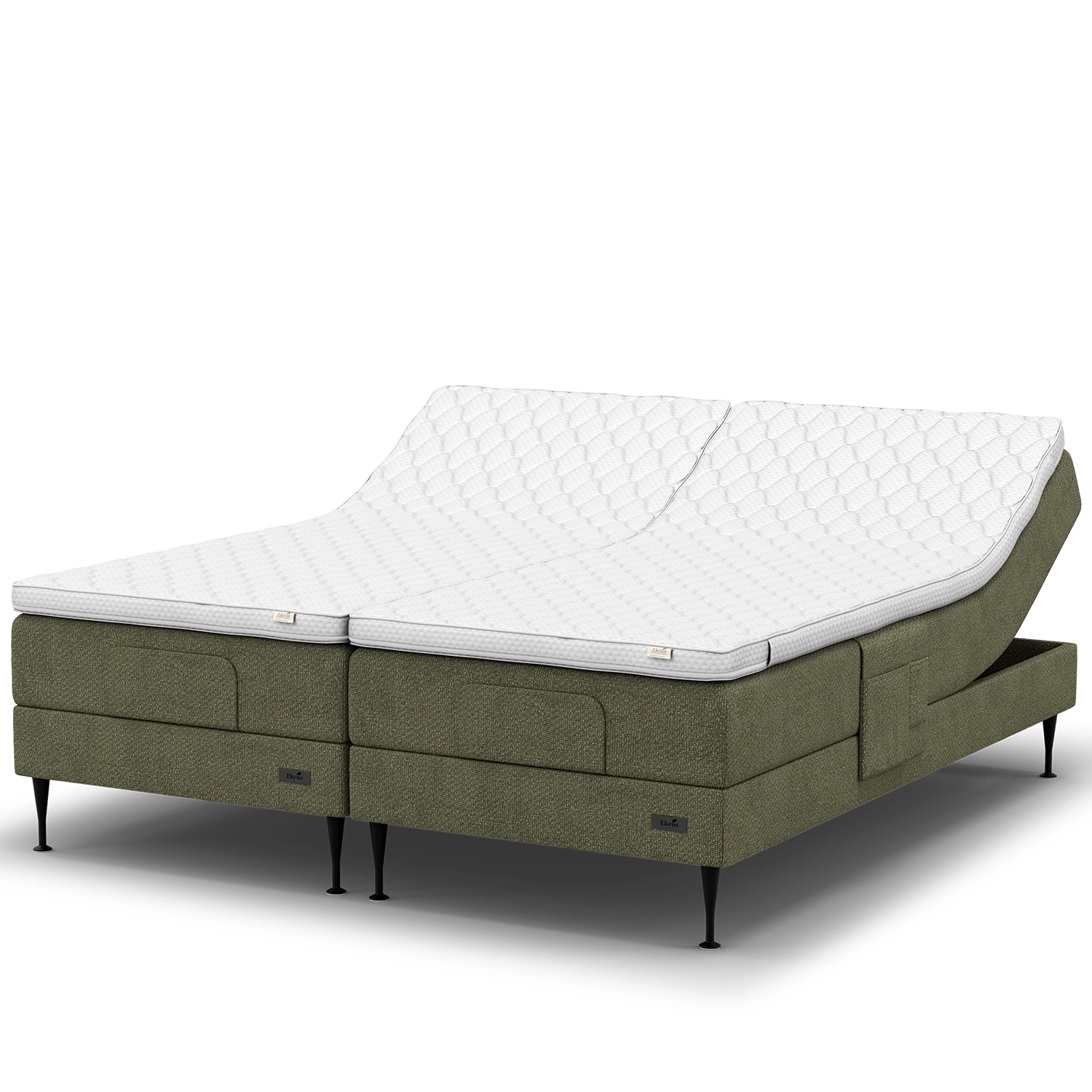Till kampanjenEkens Essens är en ställbar säng som förenar klassisk enkelhet med modern funktion. I storleken 180×200 cm får du en rymlig dubbelsäng som består av två ställbara sängar, vilket gör att du och din partner kan justera komforten individuellt. Sängen levereras med två separata bäddmadrasser i storleken 90×200 cm för att varje sida ska kunna anpassas helt efter personliga behov. Med ett mjukt knapptryck höjer eller sänker du huvud- och fotända för att hitta den mest bekväma positionen – perfekt för vila, läsning eller en lugn stund framför tv:n. Små justeringar, som att fälla upp fotänden en aning, kan göra stor skillnad för en avslappnad sovställning och ge kroppen den avlastning den behöver.