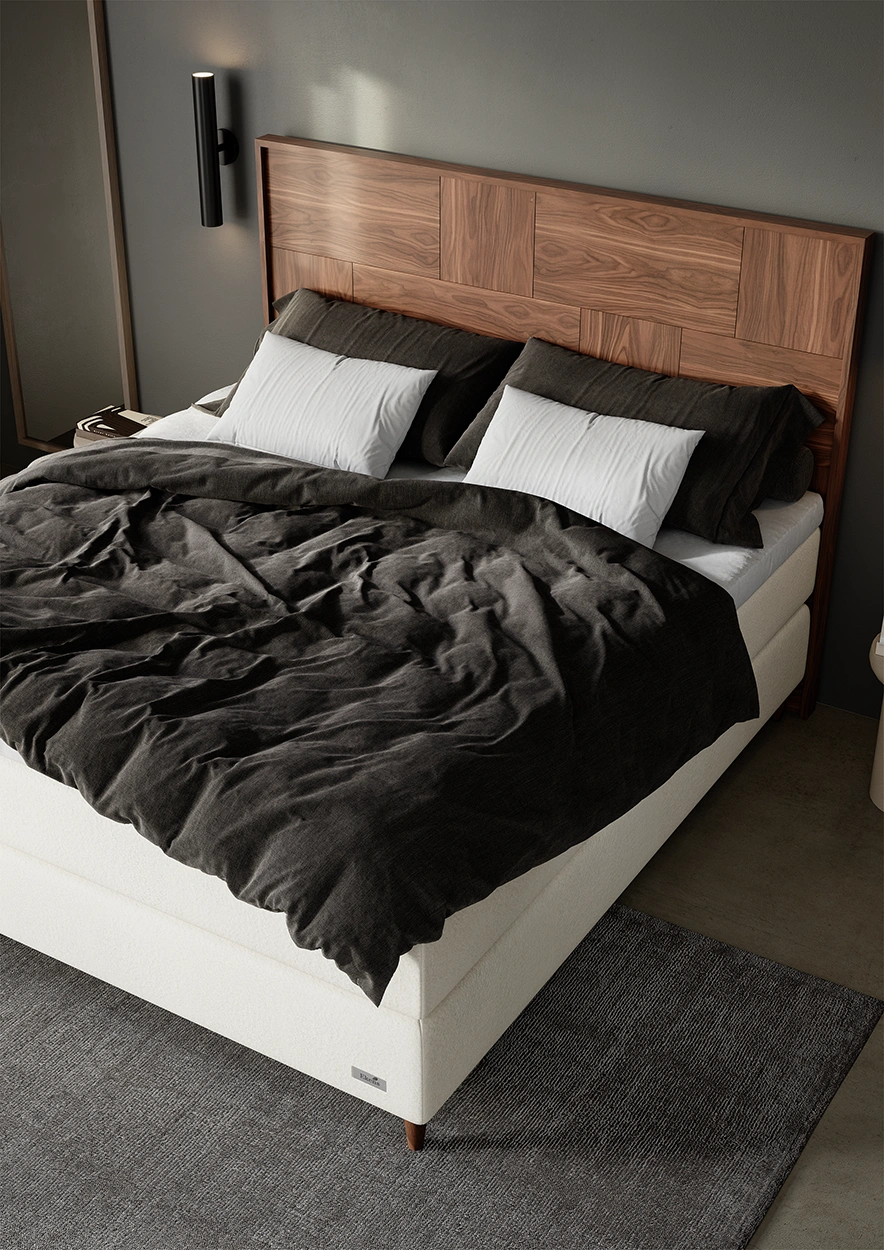 Designen är lika genomtänkt som komforten. Med vackert utvalda material, ett harmoniskt färgurval inspirerat av naturen och ett brett sortiment av matchande tillbehör – inklusive helt nya sänggavlar – får du friheten att skapa ett personligt och stilfullt sovrum. Bäddmadrassen Tempflex Latex kompletterar konstruktionen med en mjuk, elastisk yta som finns både med avtagbart fodral och med trensat utförande.