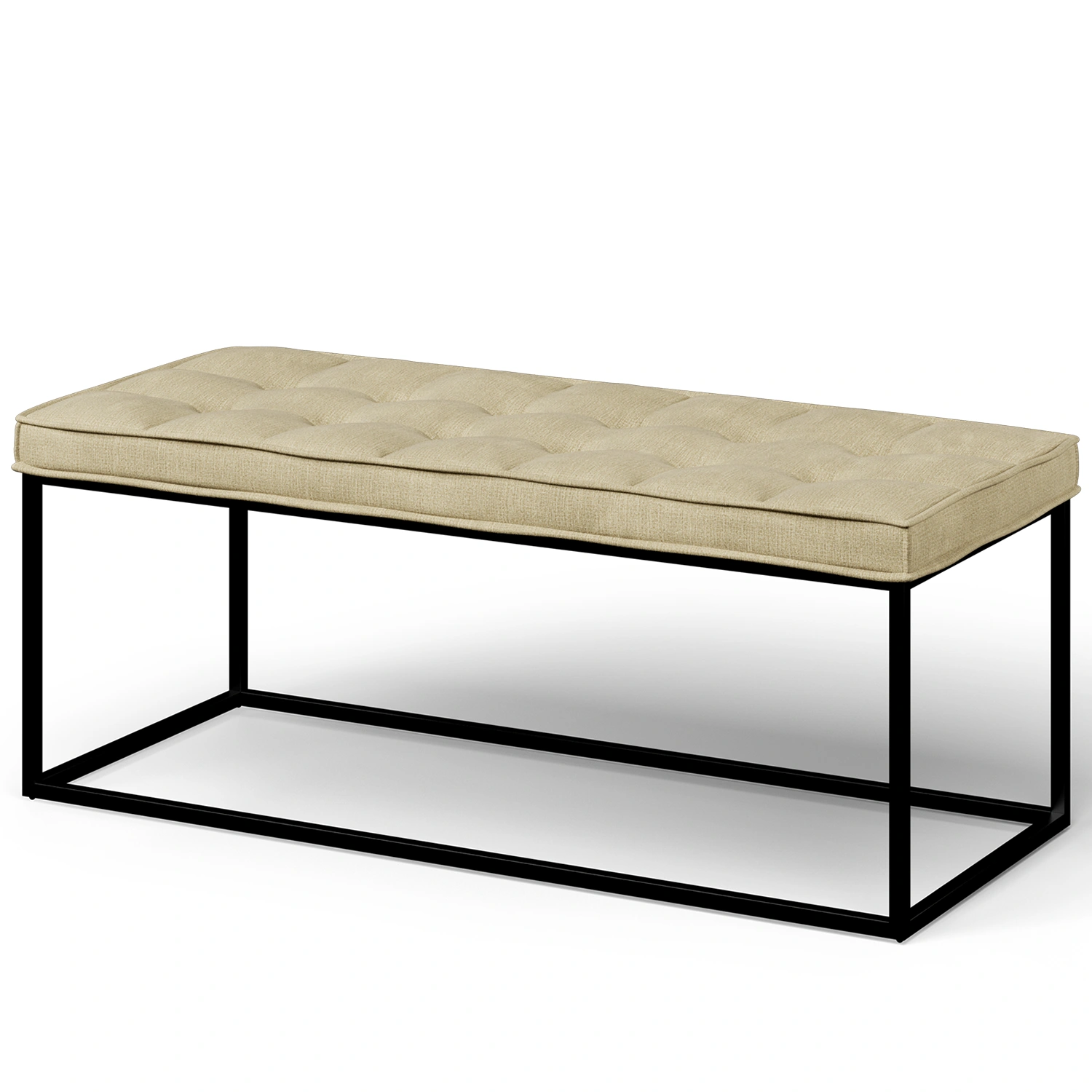 Elegant sittbänk från Ekens – perfekt att placera vid fotändan av sängen för en stilfull och praktisk lösning. Bänken har ett robust stativ i svart järn och en mjukt stoppad sits som ger både komfort och design. Sitsen finns i samma exklusiva tyger som Ekens sängar och gavlar, vilket gör det enkelt att skapa en harmonisk helhet i sovrummet.
