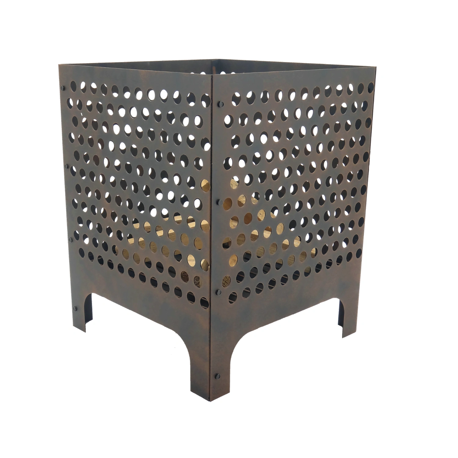 Skapa en varm och inbjudande atmosfär med denna fyrkantiga eldkorg från Västanvinden. Tillverkad i robust plåt med perforerade sidor som ger lågorna liv och synlighet från alla håll. Den industriella designen kombinerar funktion och form på ett diskret och stilrent sätt.
