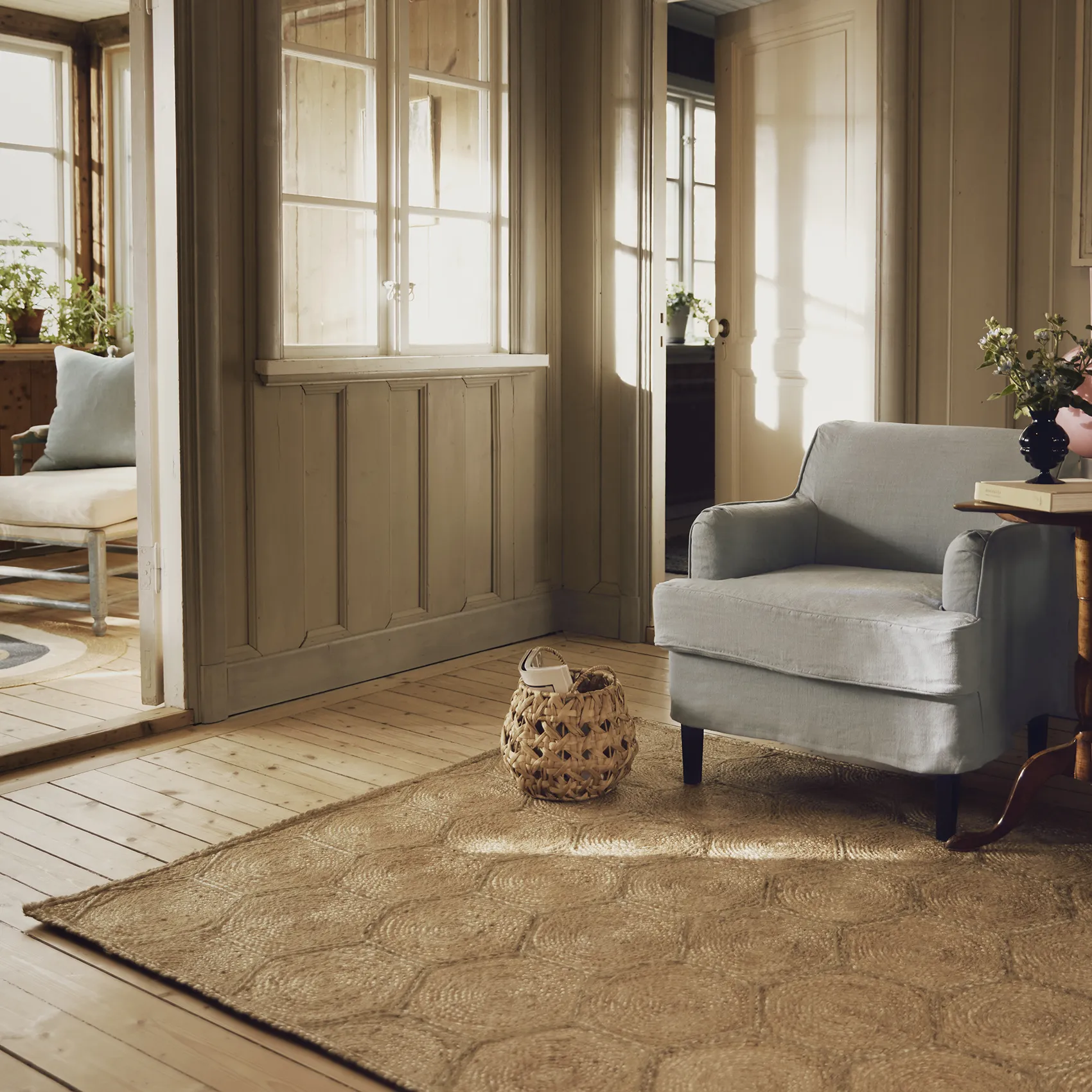 Elin är en jutematta från varumärket Dixie. Jutematta Elin 160x230cm med Honey-comb mönster i natur/naturgrå. Handspunnet jutegarn vävs av skickliga indiska hantverkare till en vacker och hållbar matta. En riktig klassiker.