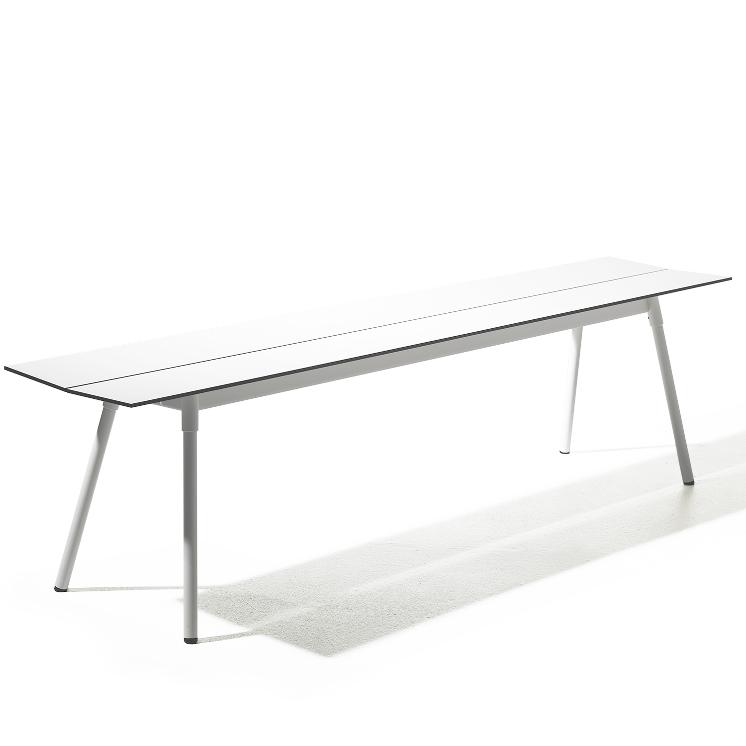 Stilren bänk i tåliga material för bruk såväl inne som ute. Finns i flera olika längder för att matcha Ellaborden. Avtagbara ben som underlättar vinterförvaringen.