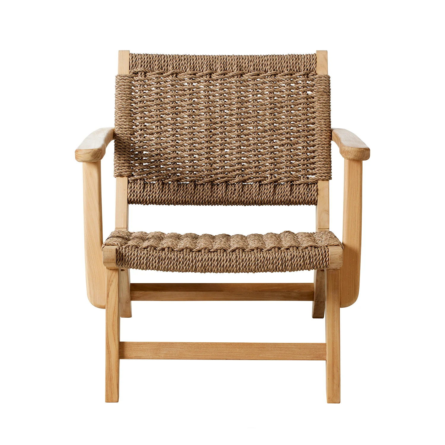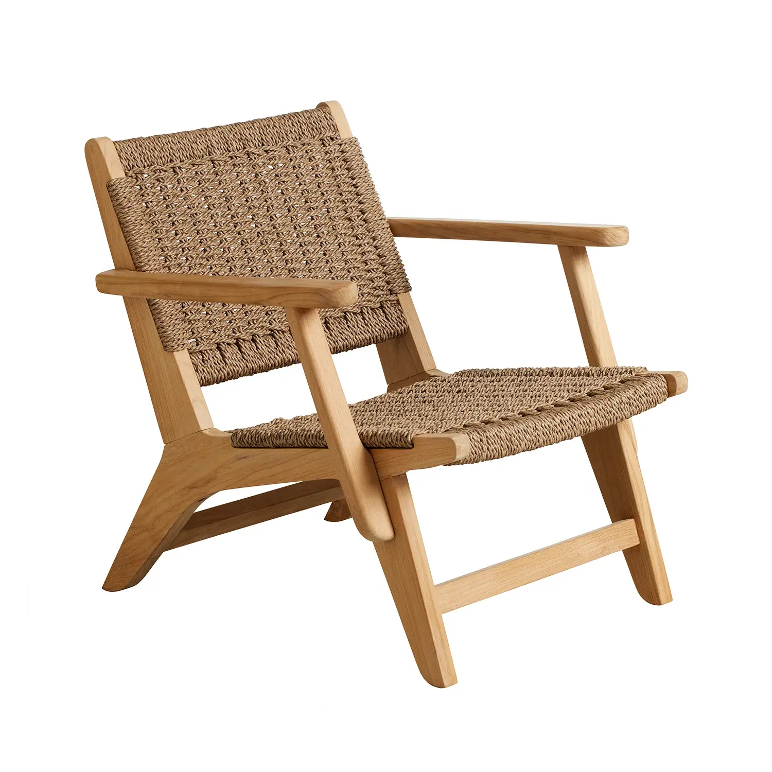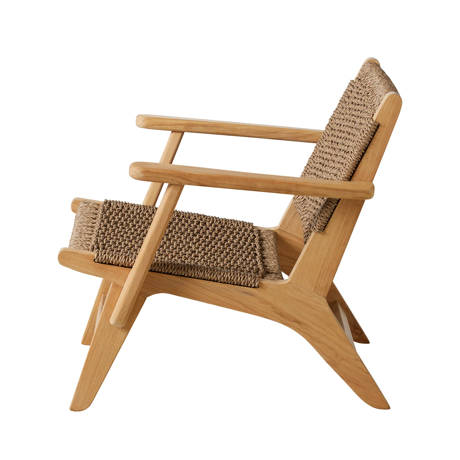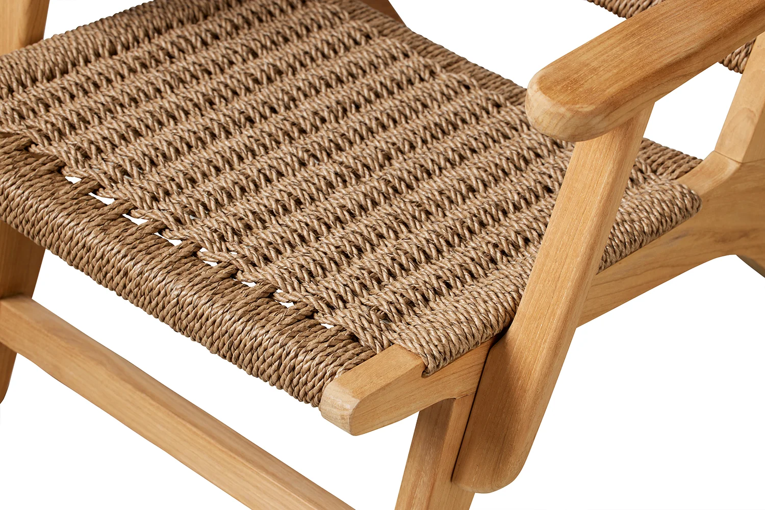 Eya är en stilren loungefåtölj gjord av Viro-rep och teak. Med sin naturliga och moderna design är den perfekt för terrassen, trädgården eller balkongen. Det massiva teakträdet ger bra stabilitet medan flätad sits och ryggstöd ger en bekväm sittupplevelse. En kombination av tidlös estetik och hållbarhet som gör utomhusavkoppling ännu mer inbjudande.