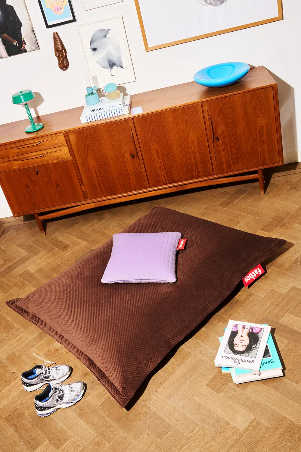 Helt tillverkad av återvunnet material. Original Slim Royal Velvet är fylld med revolutionerande, lätta plastkulor, gjorda av återvunnet förpackningsmaterial. Innerpåsen, som är tillverkad i återvunnen non-wovenpolyester, håller alla plastkulor på plats. Dessutom ser det subtilt perforerade sammetsöverdraget, tillverkat av återvunna PET-flaskor, fantastiskt elegant ut i alla interiörer.