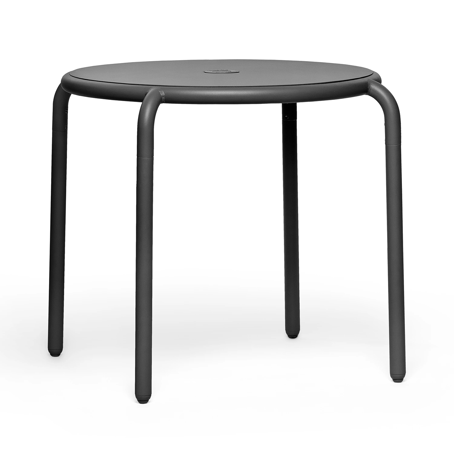 Med det runda Toní-bistrobordet kan du skapa det perfekta trädgårds- eller terrassarrangemanget på kort tid. Den lätta aluminiumen gör det hopfällbara trädgårdsbordet lätt att flytta eller stapla. Toní Bistreau har också en praktisk två-i-ett-funktion. Hålet i mitten av bordet är Ø41 mm och kan fungera som en parasollhållare under dagen och som en ljusstake på natten. Hemligheten? Täckplattans baksida innehåller en ljushållare som kan hålla antingen ett enkelt ljus eller den tillhörande Toníljusstaken med tre armar. På detta sätt kan du koppla av utanför hela dagen och hela natten.