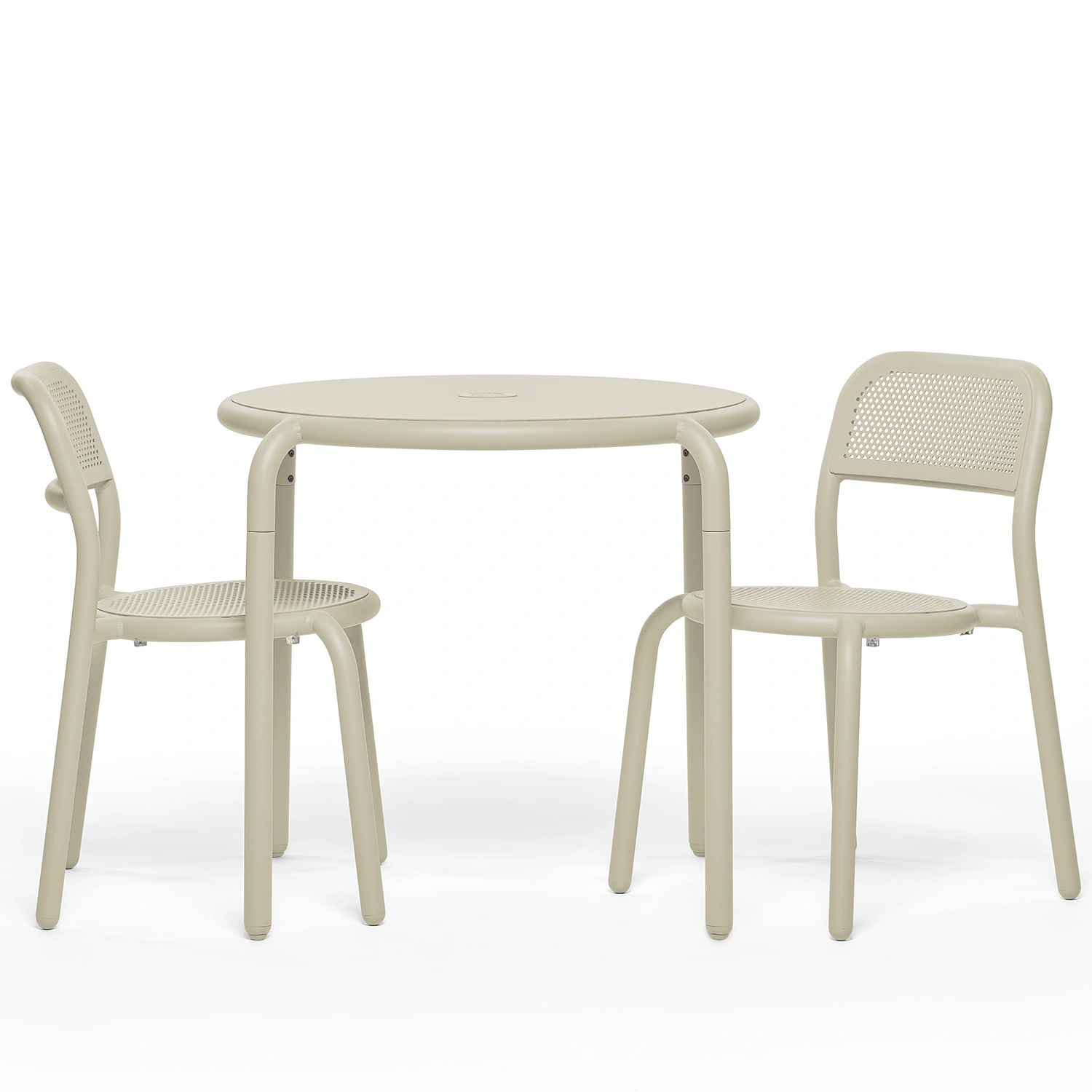 Bordet har hål för parasoll (Ø41 mm), som även passar för ljusstaken i samma serie. Finns i flera färger.