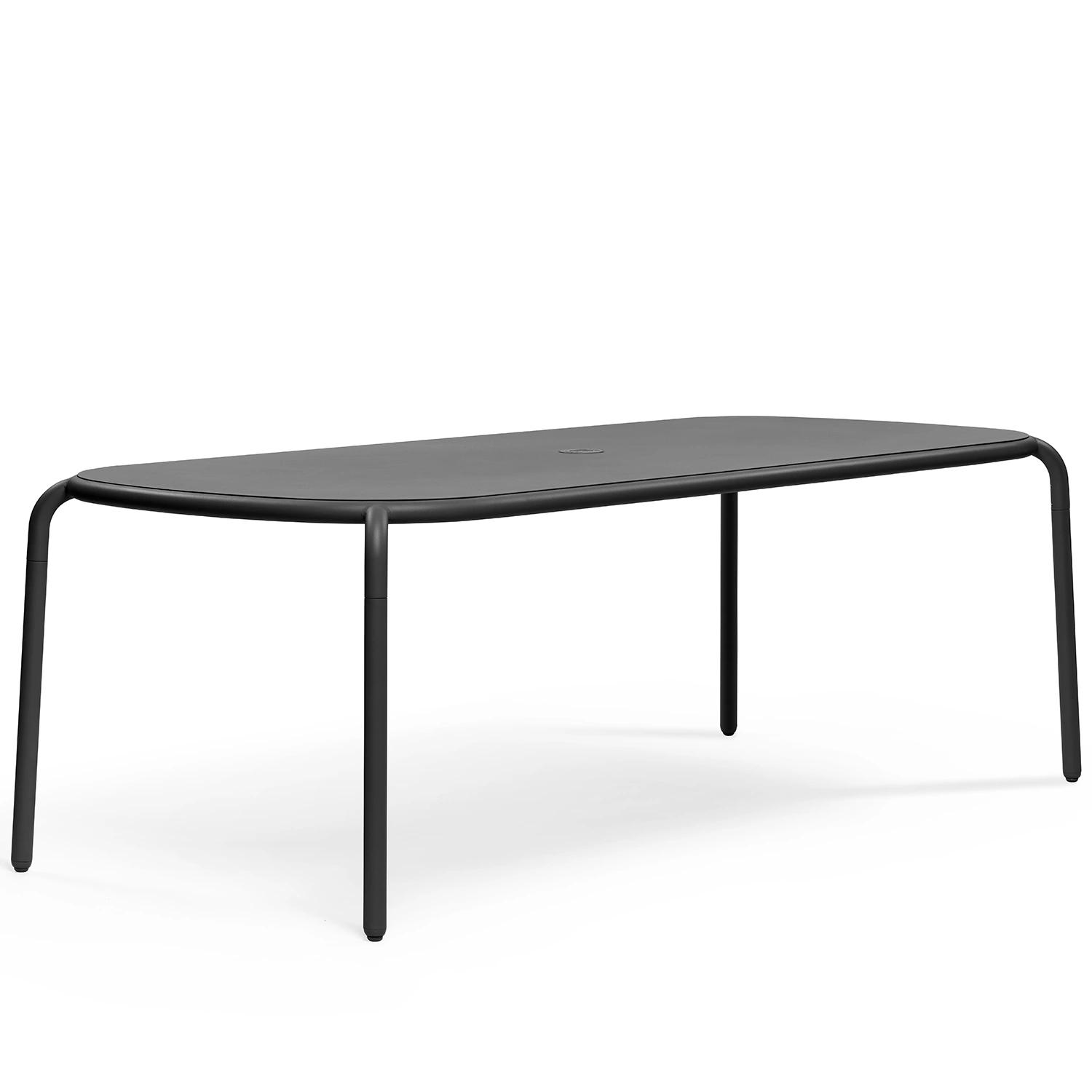 Vill du ha en avslappnad middag utomhus med din familj och vänner? Matbordet Toní Tablo kan hjälpa dig med det. Med en längd på 2,2 meter kan bordet rymma upp till 8 personer. Aluminiummaterialet gör bordet fint och lätt, så att du enkelt kan flytta det. Hålet i mitten är Ø41 mm och fungerar som en parasollhållare under dagen och kan även användas för den trearmade Toní-ljusstaken på natten. De justerbara benen låter dig ändra höjden efter önskemål.