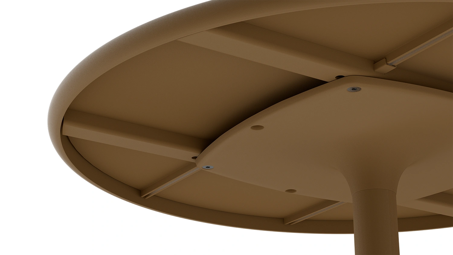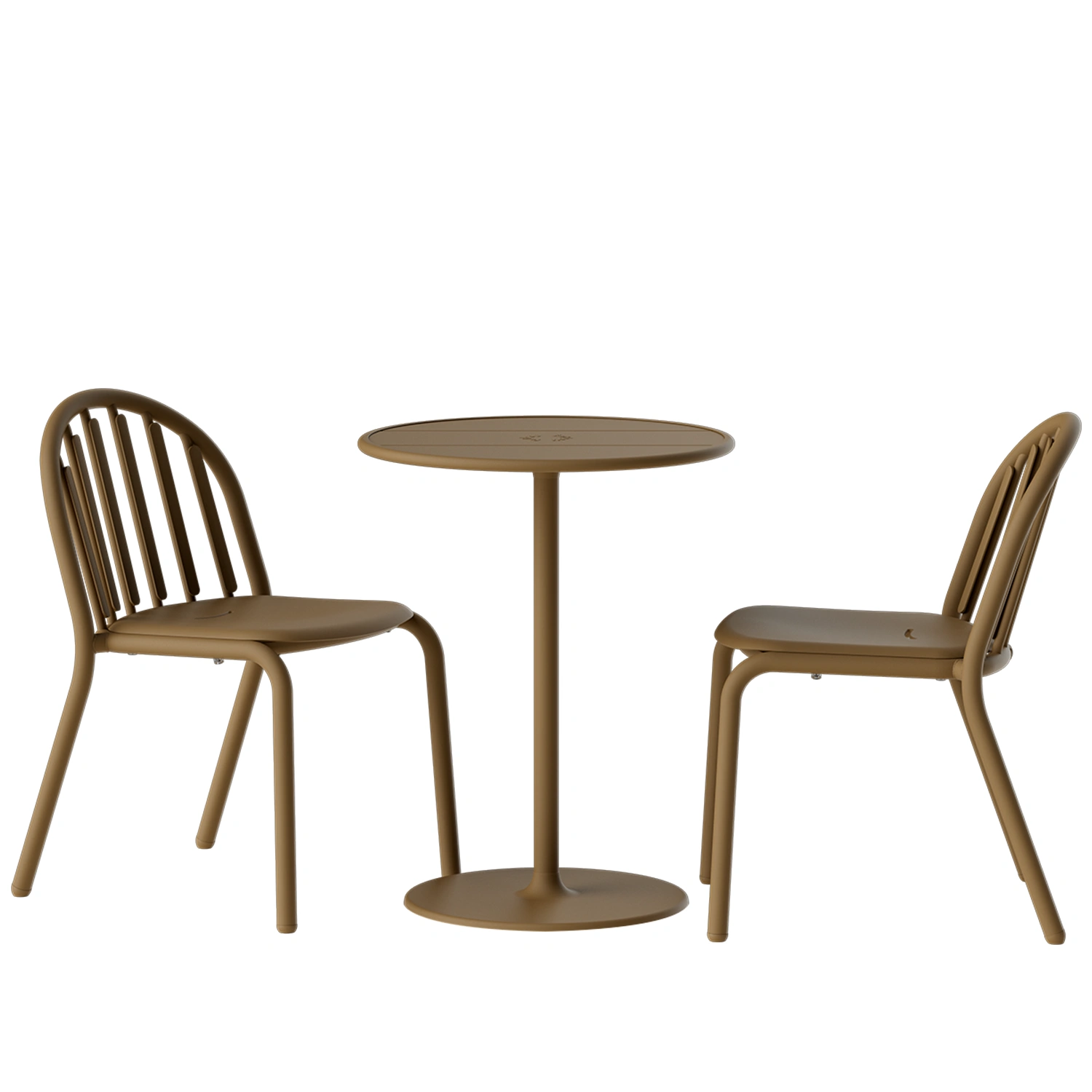 Fred’s Bistreau är gjort av ytbelagt aluminium och stål som klarar av alla väderlekar. Så du kan lämna det utomhus året runt. En smart detalj: tack vare de justerbara benen under basen står det här bistrobordet till trädgården alltid stadigt, oavsett hur ojämn markytan är.