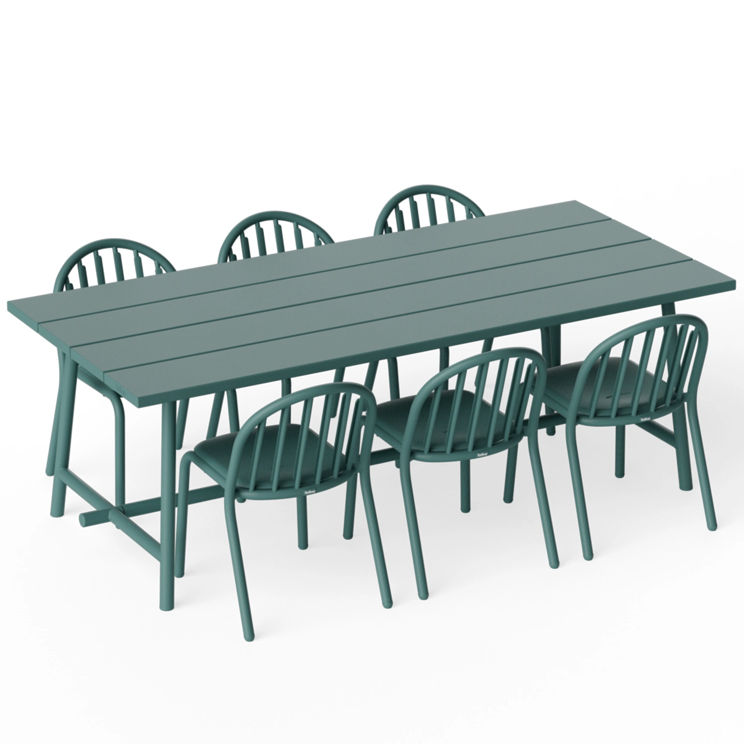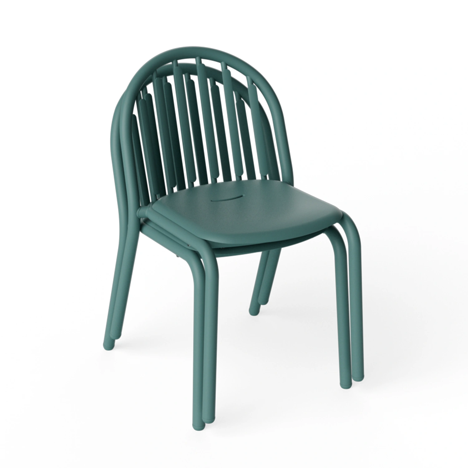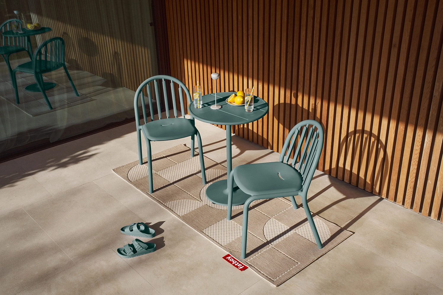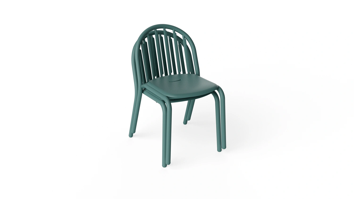 Fred’s matstol är en modern version av den klassiska pinnstolen. Den här stolen är tillverkad i väderresistent aluminium och sitsen är kurvig som en kudde. Öppningen i sitsen är formad som ett leende och ser till att regnvatten snabbt försvinner.