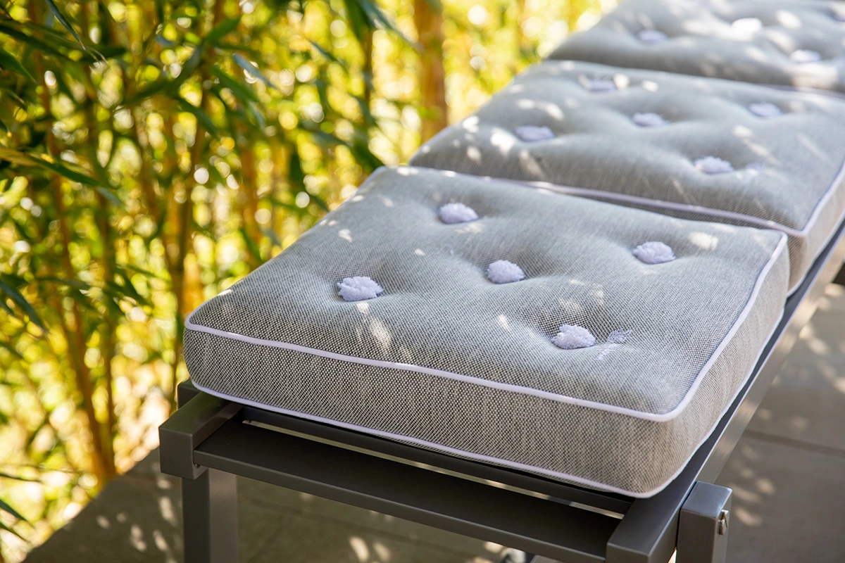 Bänken kan kompletteras med dynor. Passande dyna är den klassiska Fri Form-dynan i storlek 42.