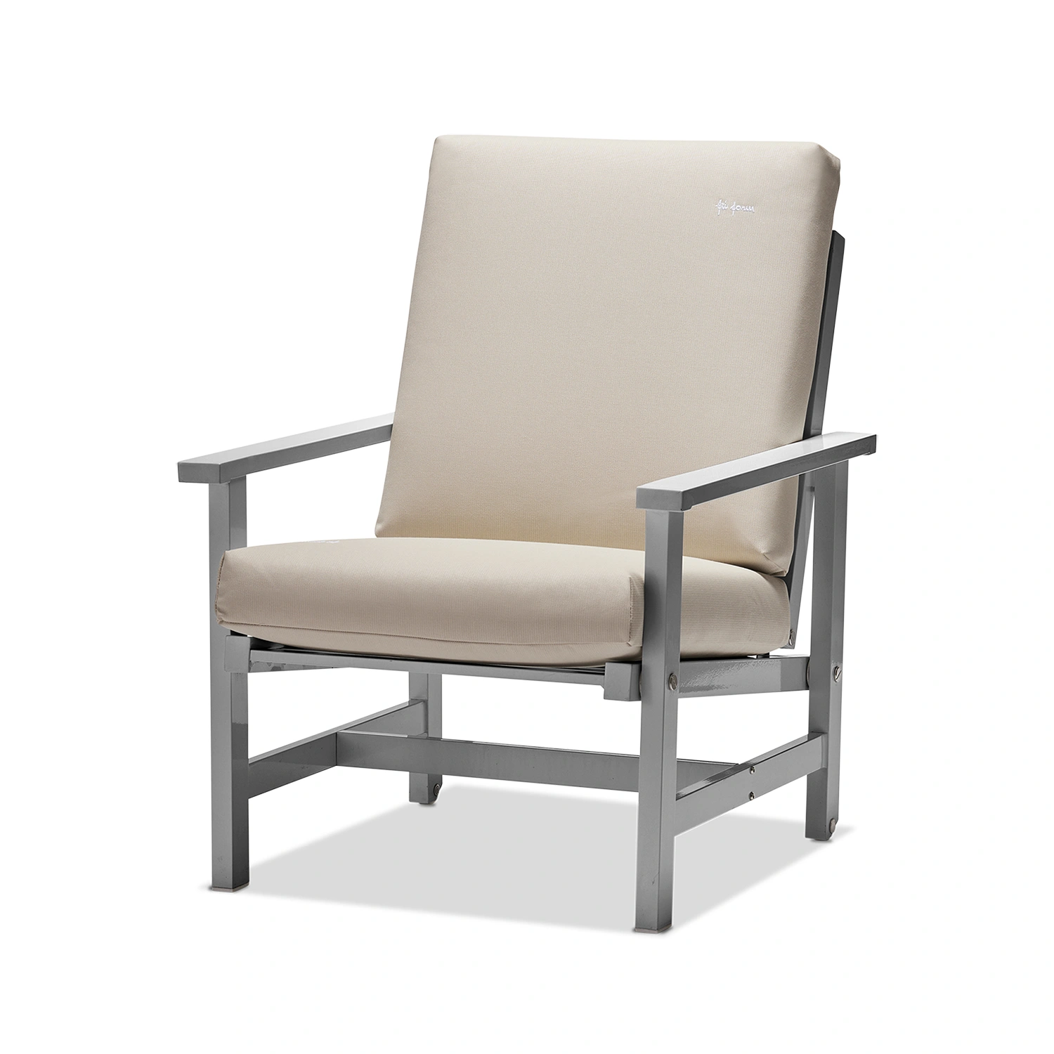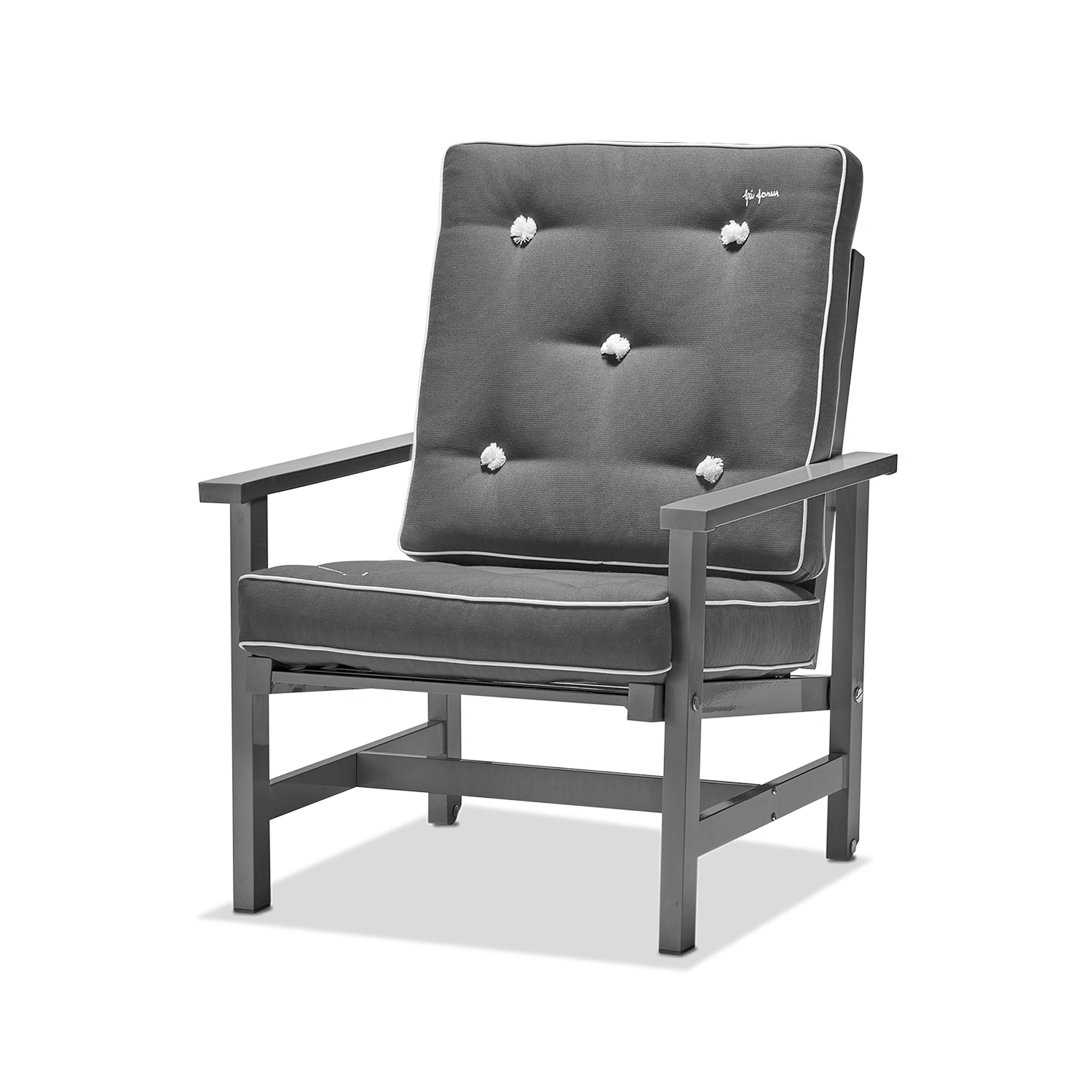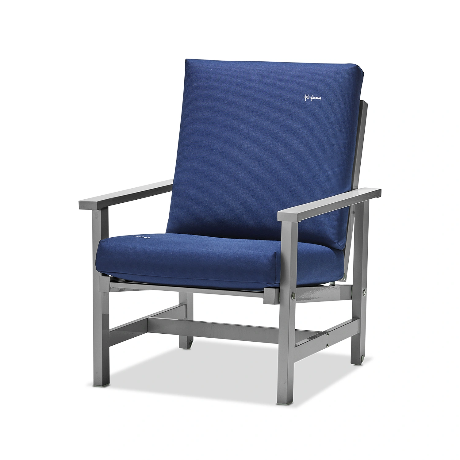 Fri Forms Fåtölj 05 är en ikonisk utemöbel som kombinerar tidlös design med praktisk funktionalitet. Stommen är tillverkad i aluminium och ytbehandlad med en elegant grå epoxylack som ger en exklusiv finish och gör fåtöljen helt underhållsfri. Tack vare materialvalet är möbeln både lätt och extremt väderbeständig – perfekt för det nordiska klimatet.