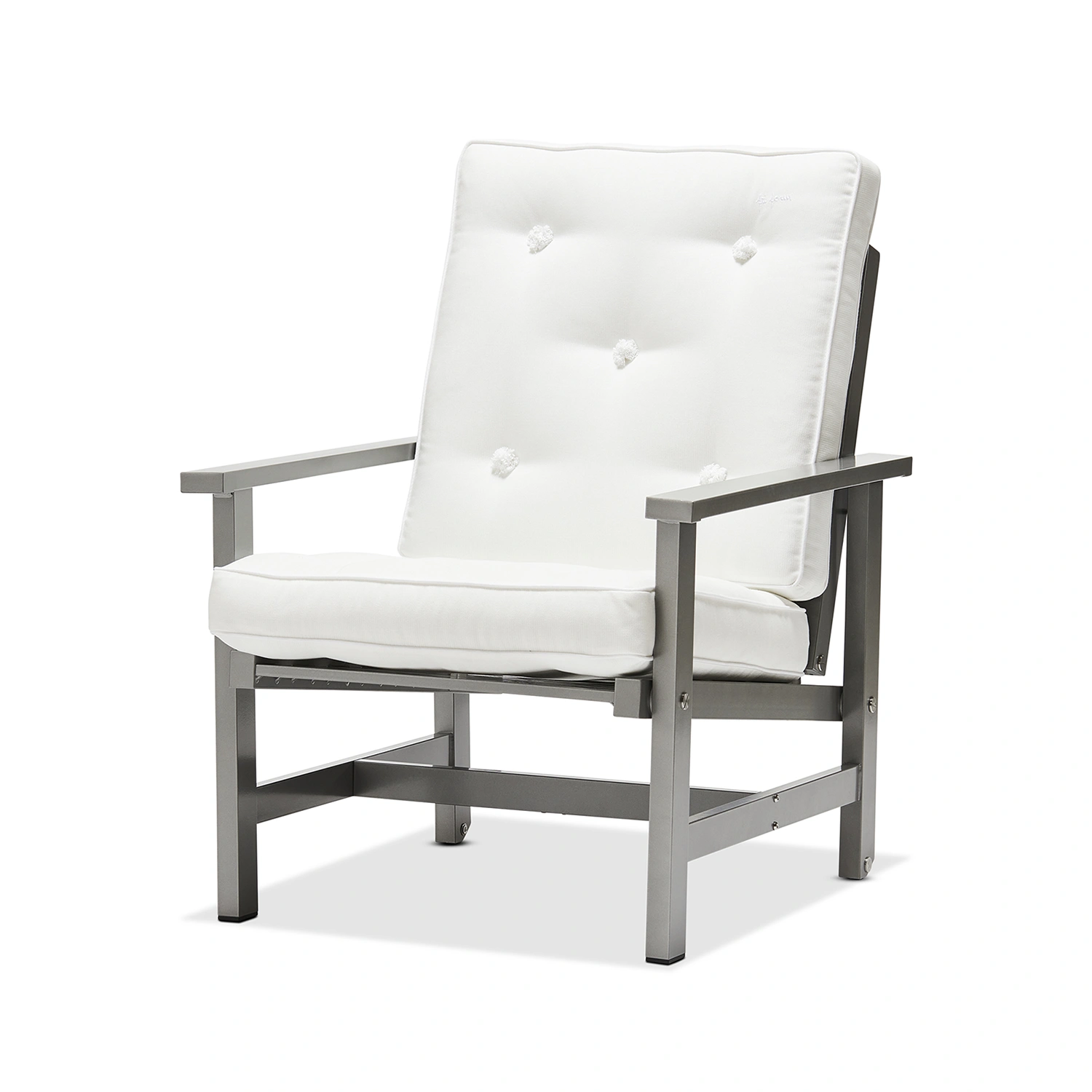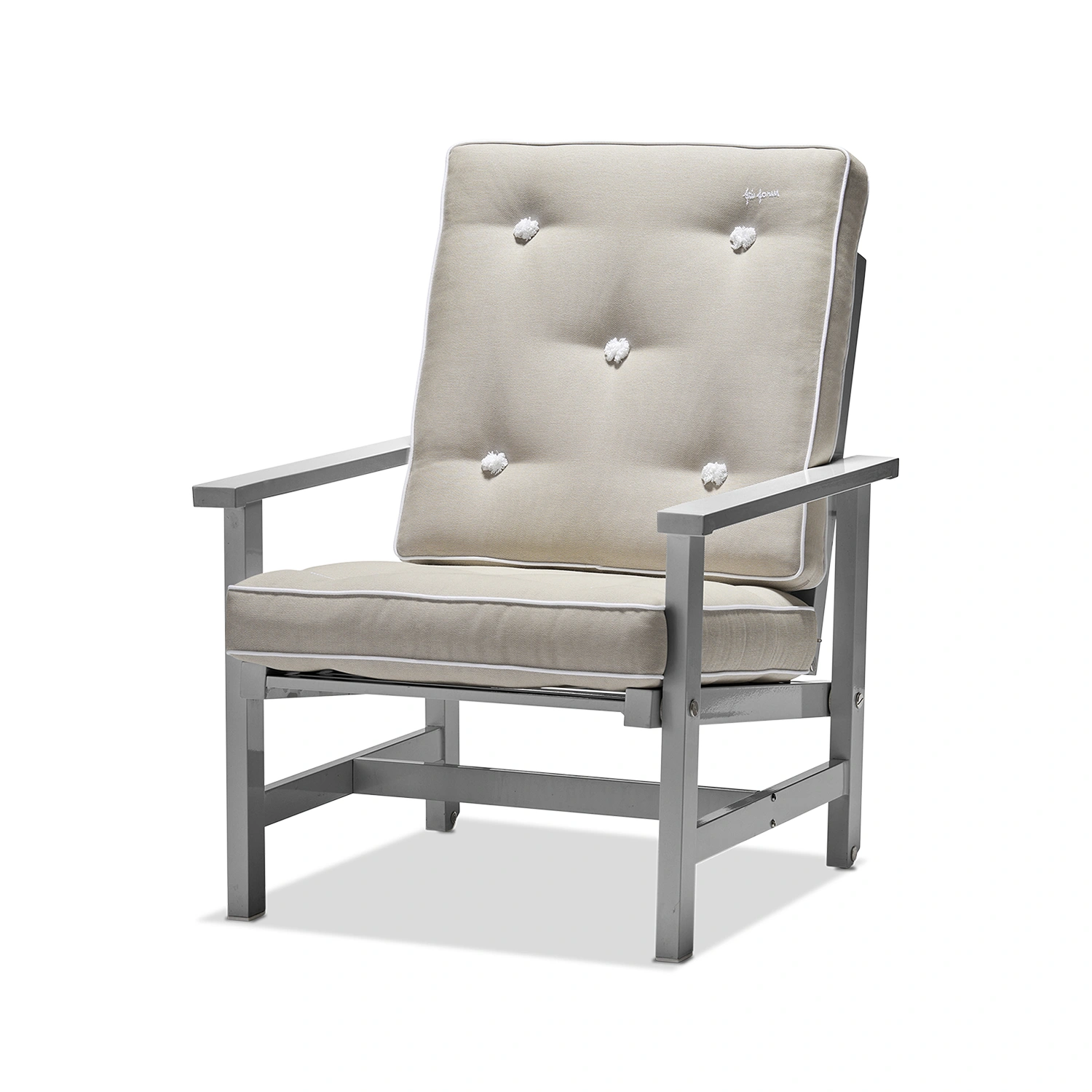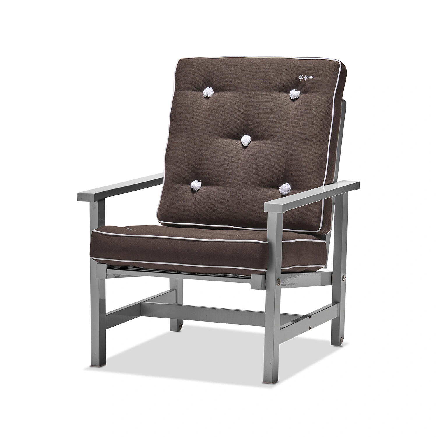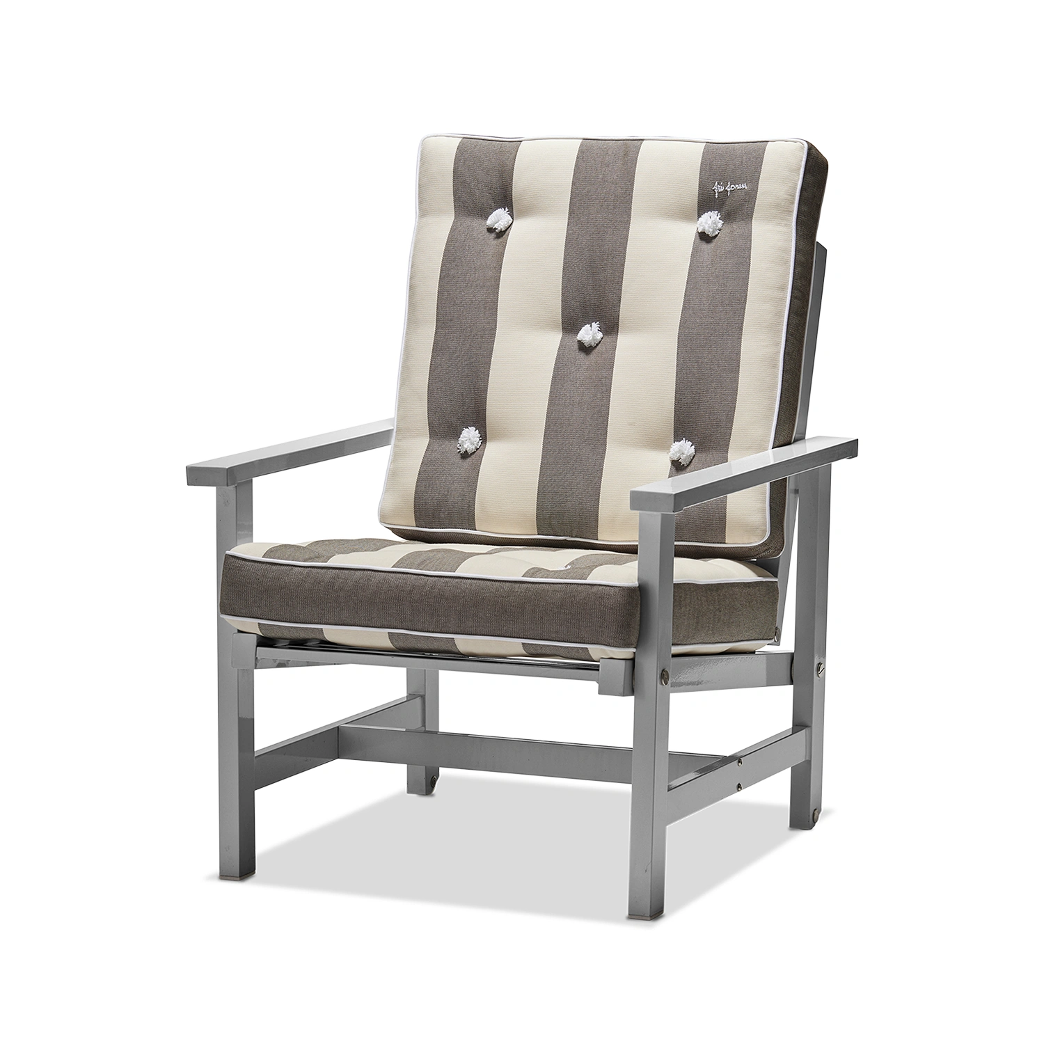 Fri Forms Fåtölj 05 är en ikonisk utemöbel som kombinerar tidlös design med praktisk funktionalitet. Stommen är tillverkad i aluminium och ytbehandlad med en elegant grå epoxylack som ger en exklusiv finish och gör fåtöljen helt underhållsfri. Tack vare materialvalet är möbeln både lätt och extremt väderbeständig – perfekt för det nordiska klimatet.