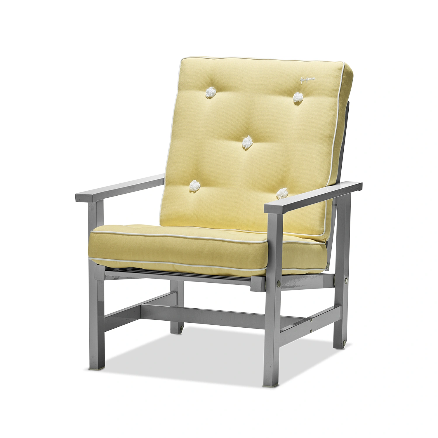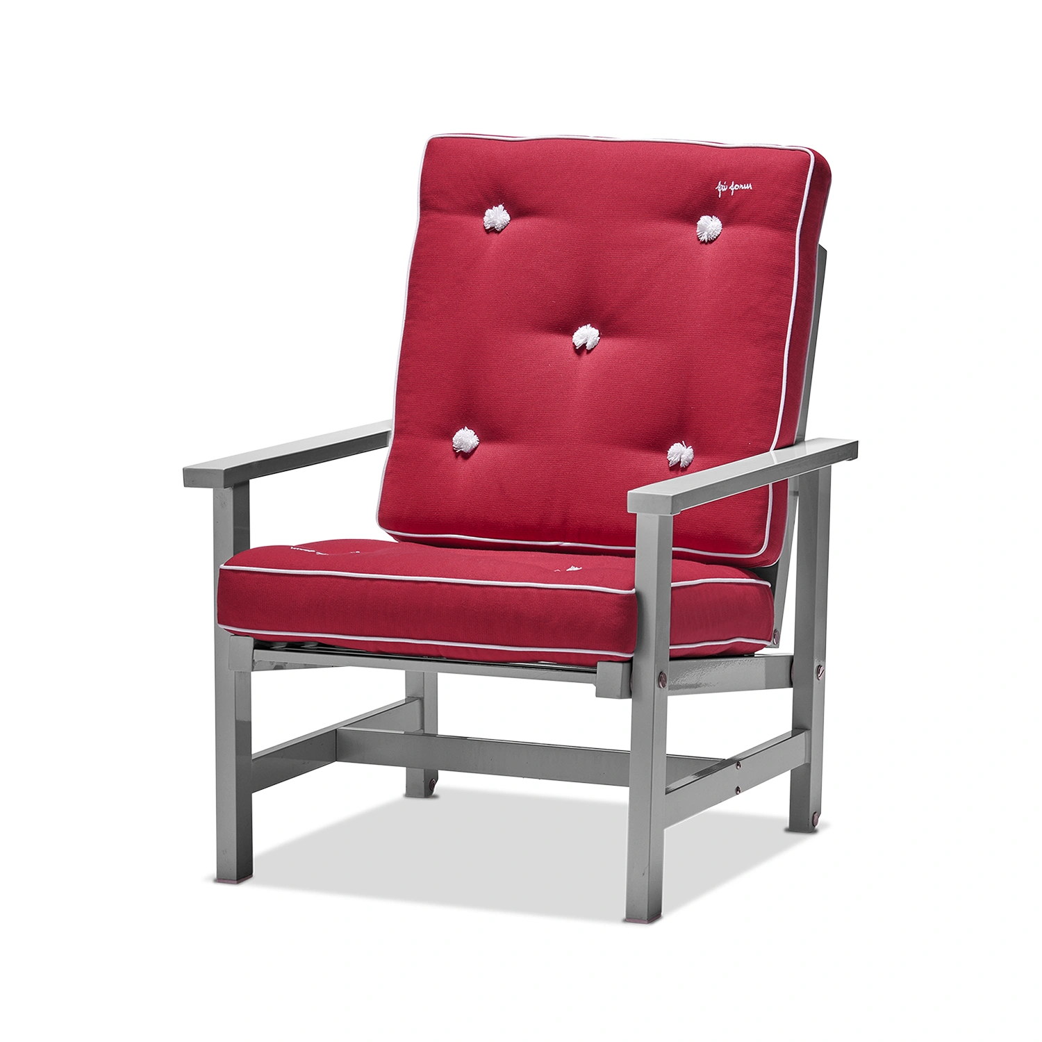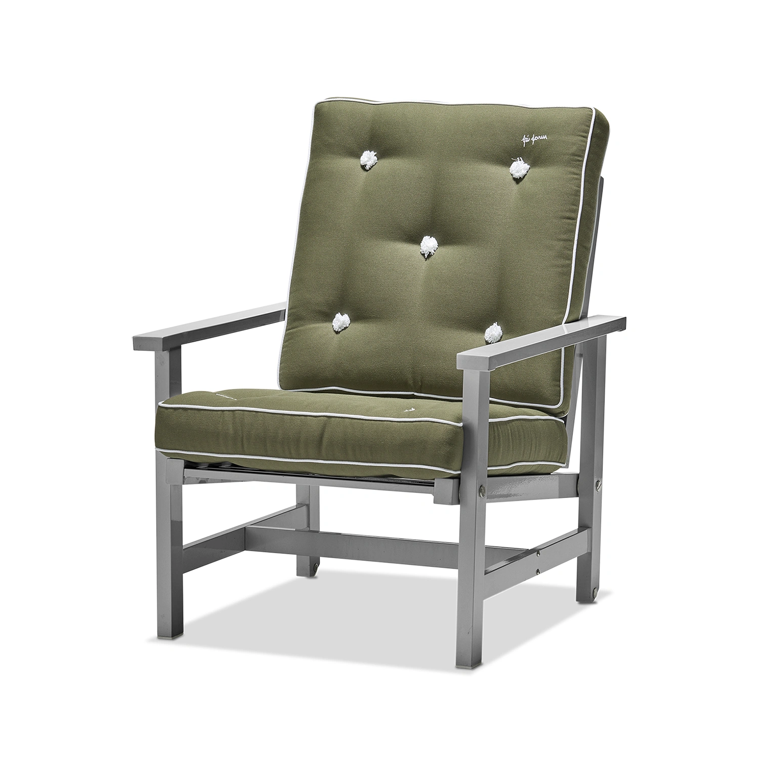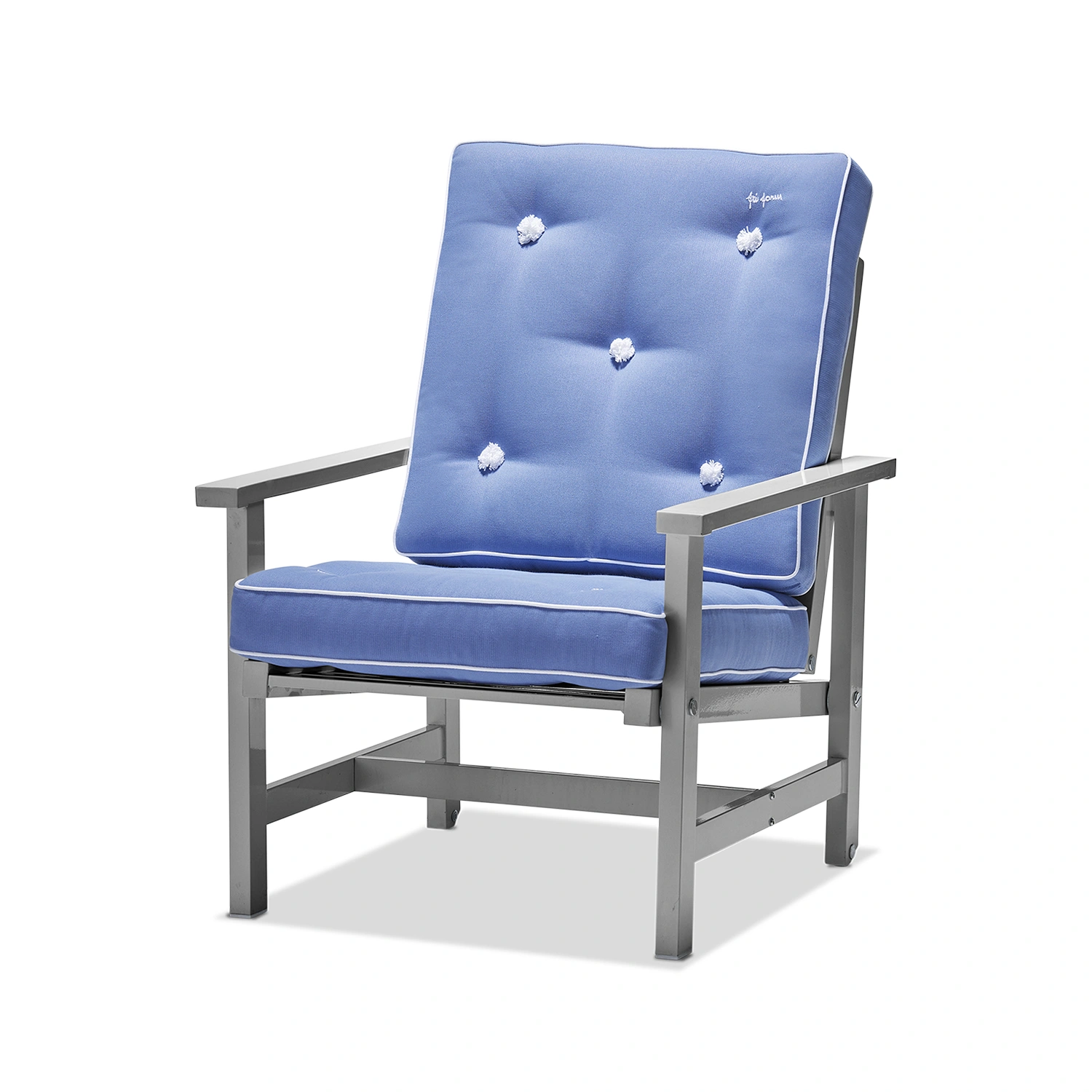 Fri Forms dynor är ett rent hantverk och tillverkas för hand från första sömmen till den sista knappen. Sömmerskor med många års erfarenhet gör all sömnad och en person stoppar varje dyna, vilket ger en unik kvalitet och känsla. Dynorna är både utsökta och bekväma, hållbara och vändbara. De tillverkas i tyg anpassat för utomhusbruk och är vatten- och smutsavvisande. Detaljer som passpoaler, vita kantband, tygklädda knappar och Fri Forms broderi kännetecknar serien. Dynorna finns i flera klassiska färger och kompletterar Fri Forms fåtölj.