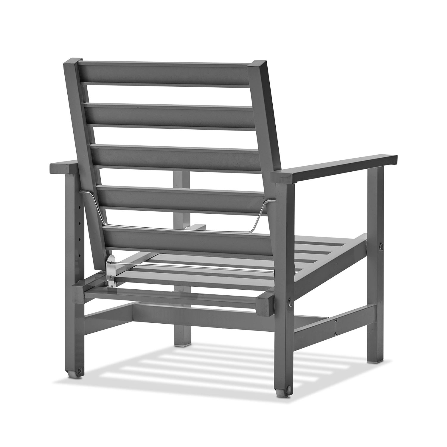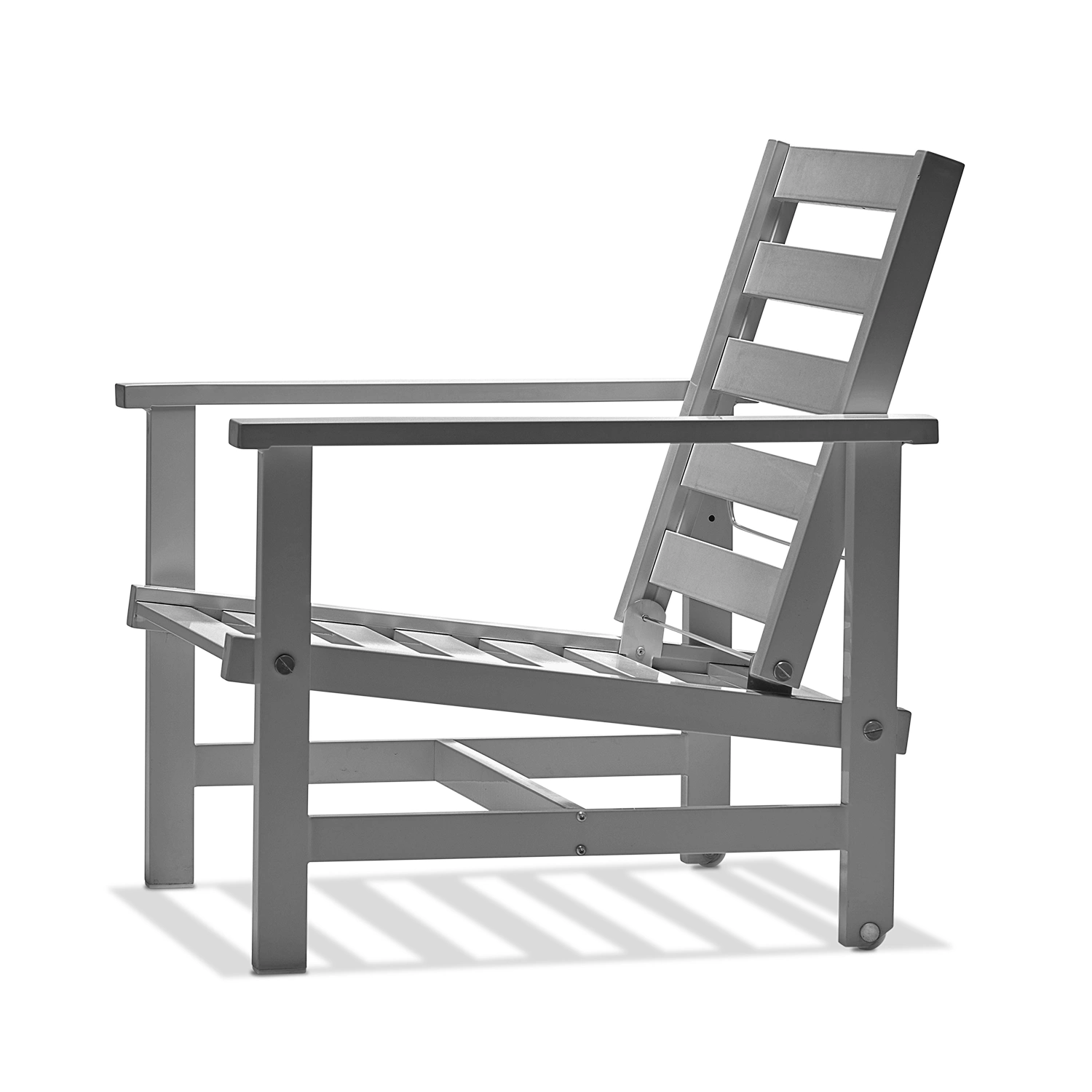 Fri Forms Fåtölj 05 är en klassisk och stilren utemöbel som kombinerar tidlös design med praktisk funktionalitet. Stommen är tillverkad i aluminium och ytbehandlad med en elegant grå epoxylack som gör fåtöljen helt underhållsfri och mycket väderbeständig. Aluminiumets egenskaper gör möbeln lätt, rostfri och perfekt anpassad för det nordiska klimatet.