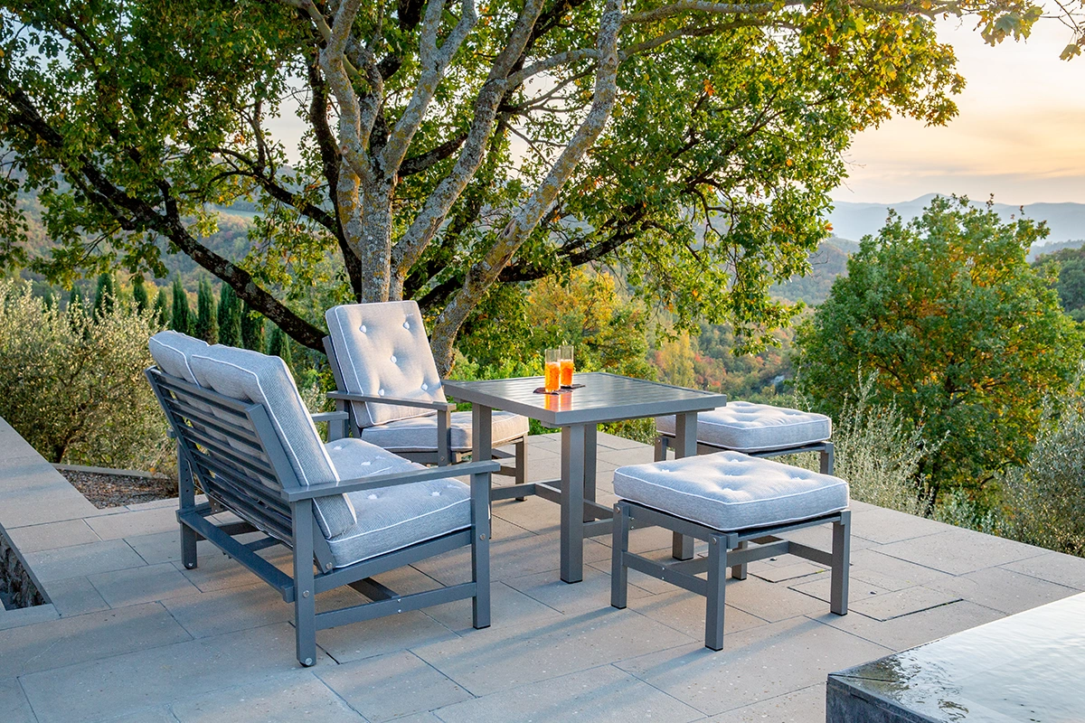 Aluminiummöbler kräver väldigt lite underhåll, torka av med en fuktig trasa tillsammans med ett milt rengöringsmedel och möbeln kommer hålla sig fin under lång tid....