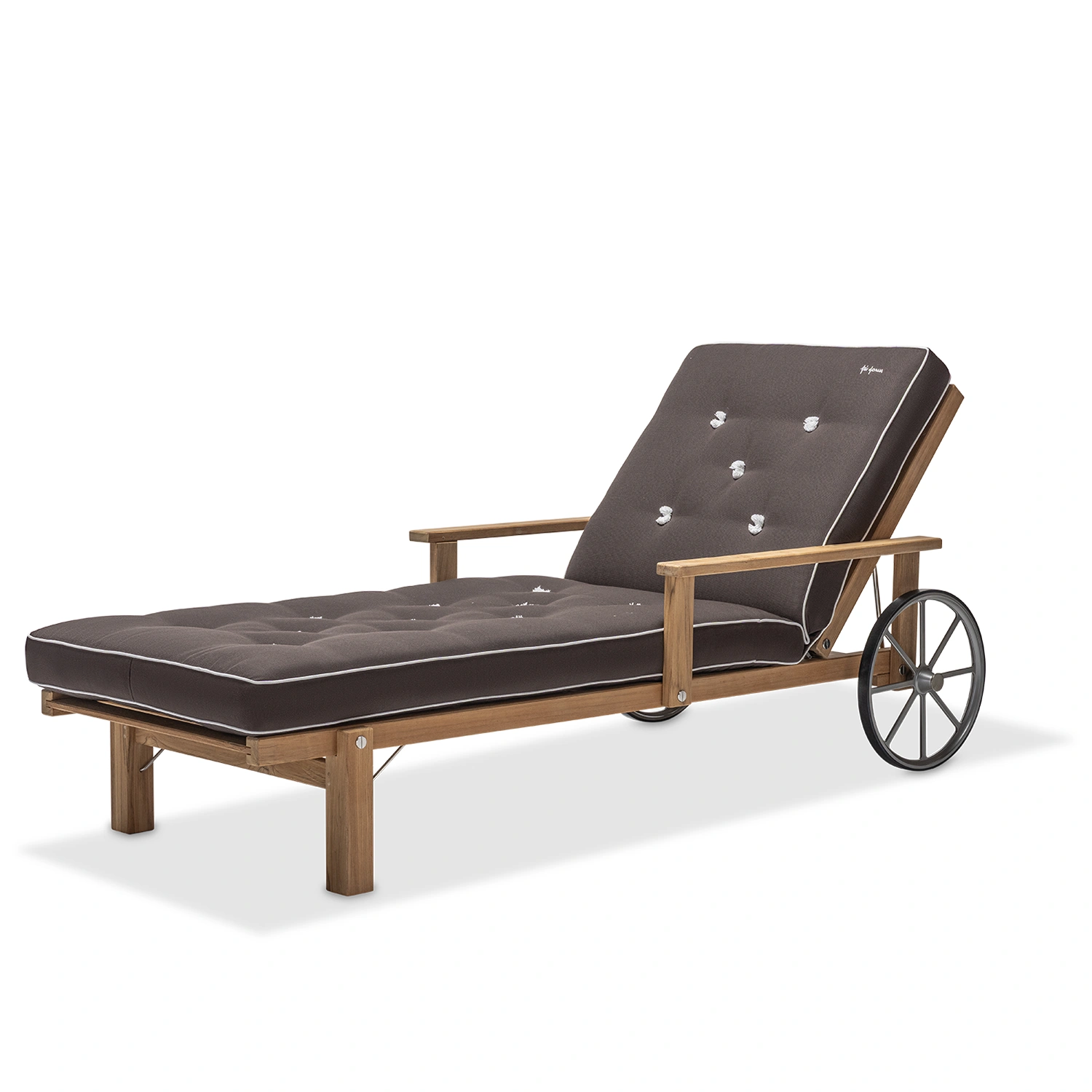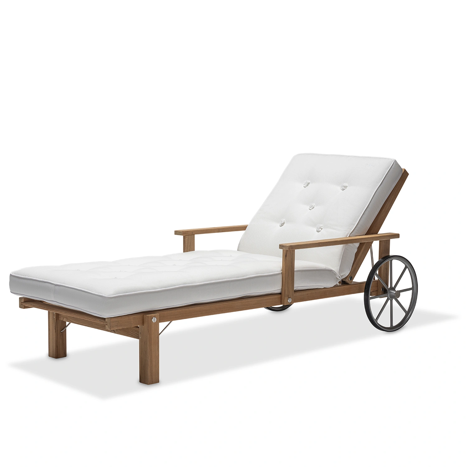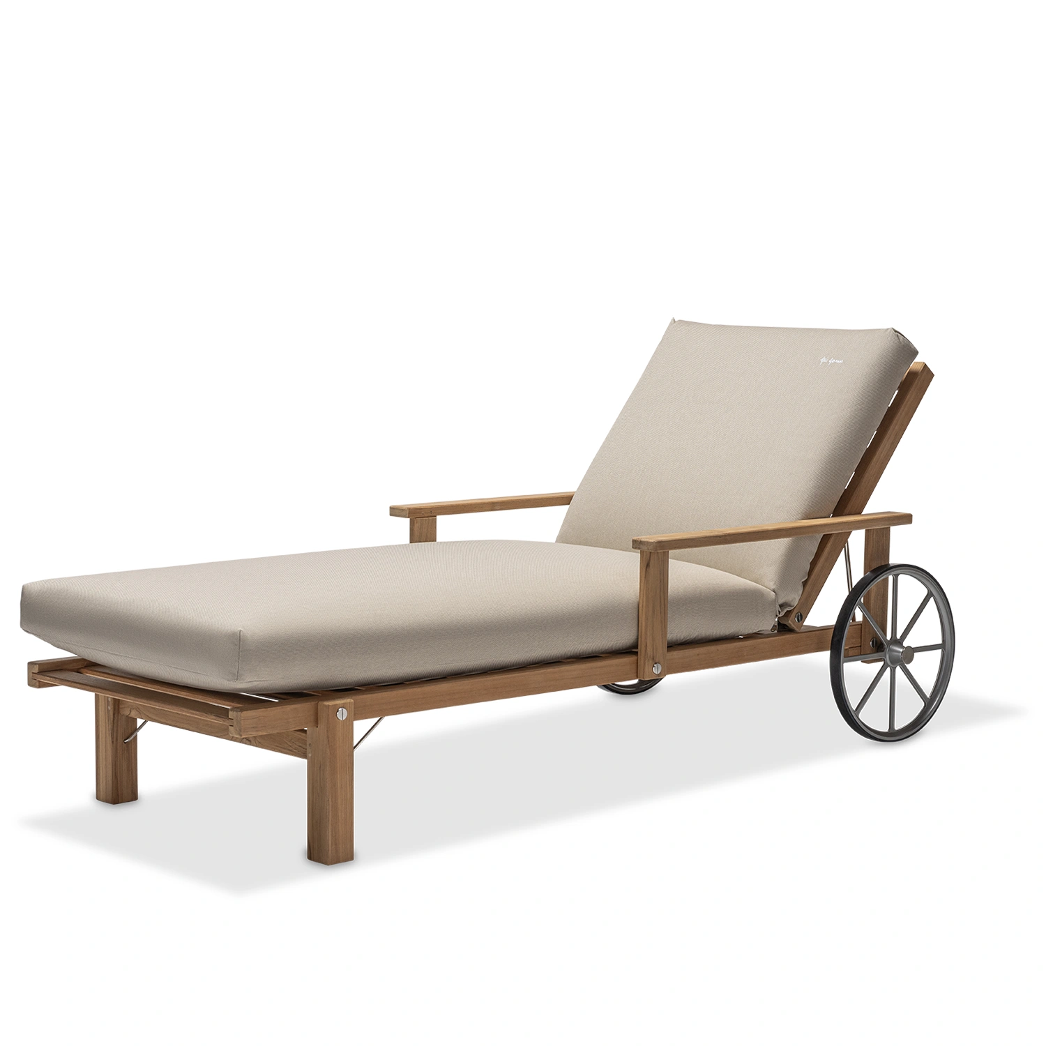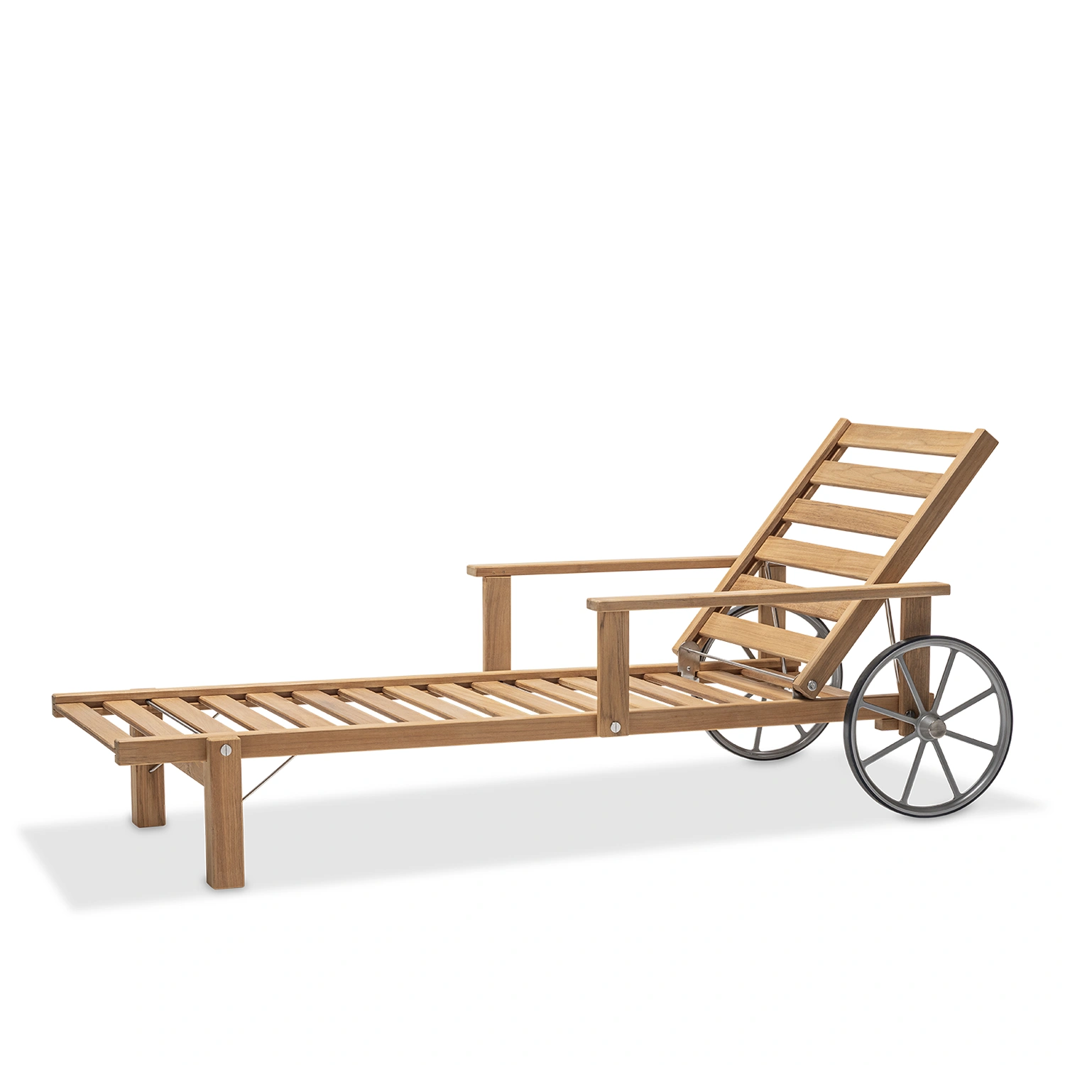 Liggvagn 31 är en ikonisk solsäng med hjul, skapad för total avkoppling. Den generösa liggytan och det lutande ryggstödet gör den till en favorit vid poolen eller på terrassen. Teakens varma ton och den genomtänkta designen ger en känsla av lyx och lugn.