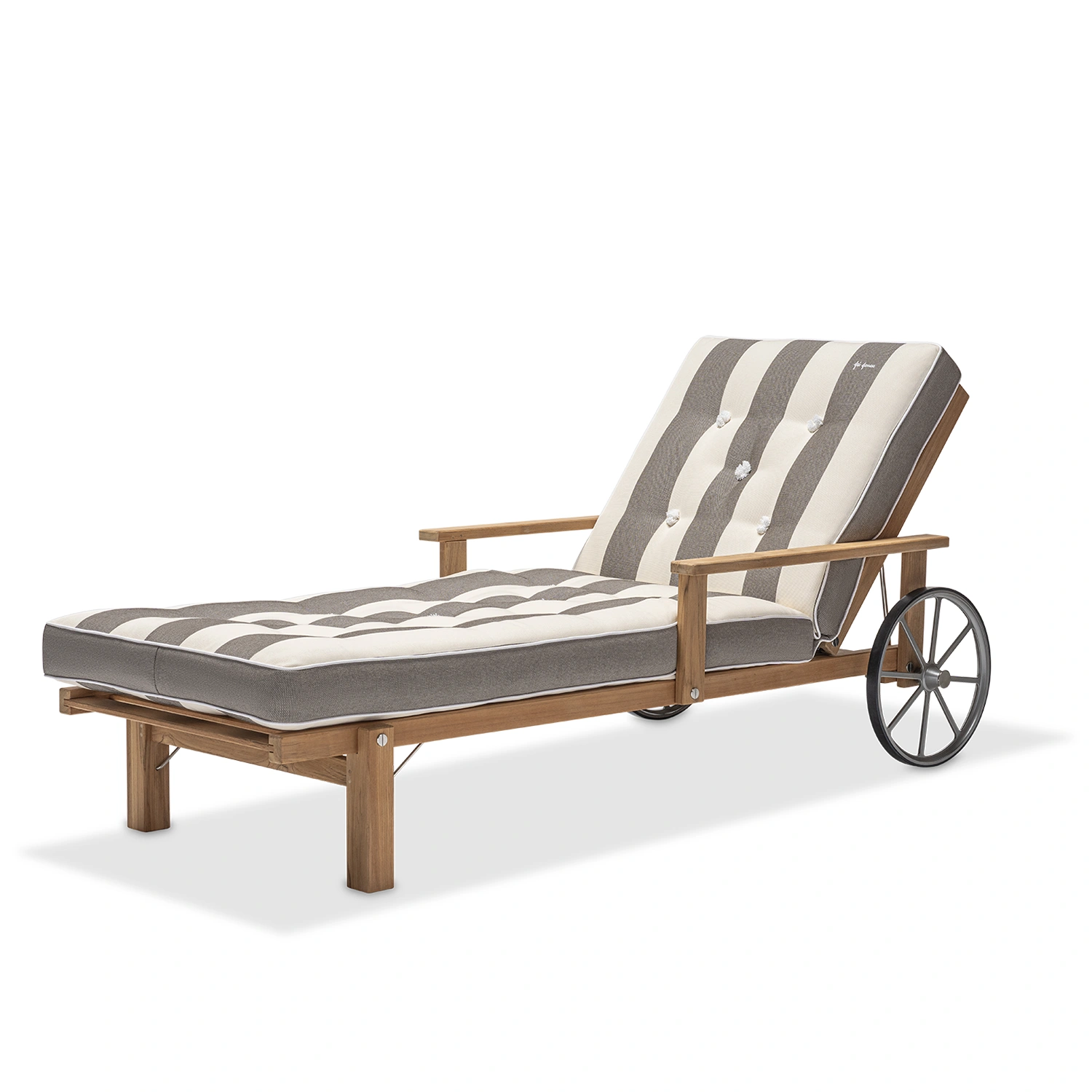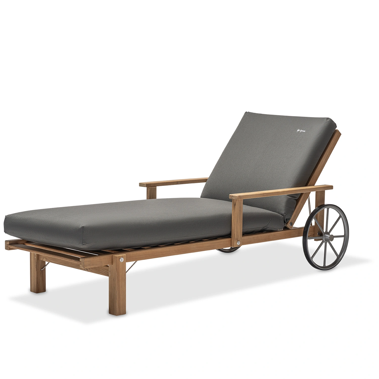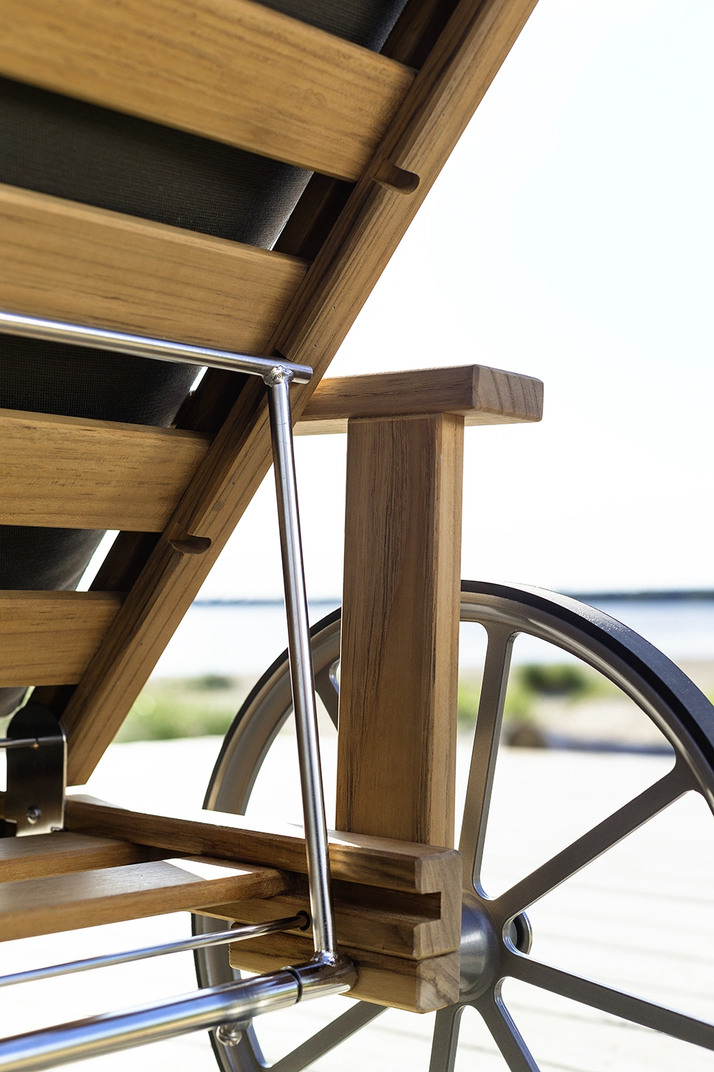 Liggvagn 31 är en ikonisk solsäng med hjul, skapad för total avkoppling. Den generösa liggytan och det lutande ryggstödet gör den till en favorit vid poolen eller på terrassen. Teakens varma ton och den genomtänkta designen ger en känsla av lyx och lugn.