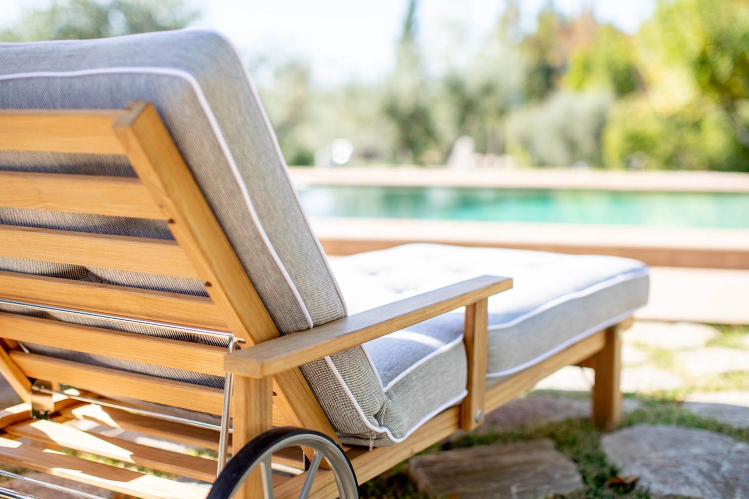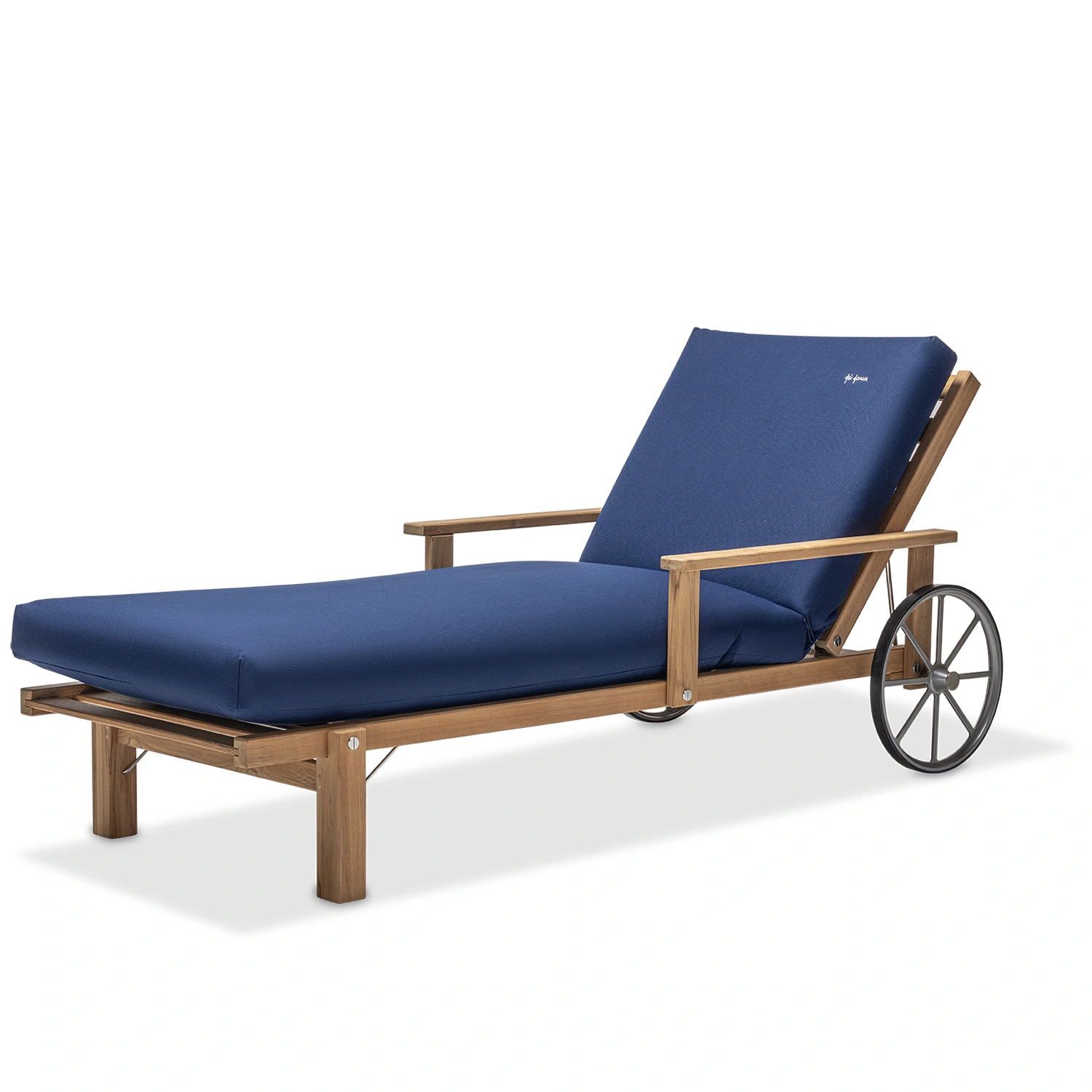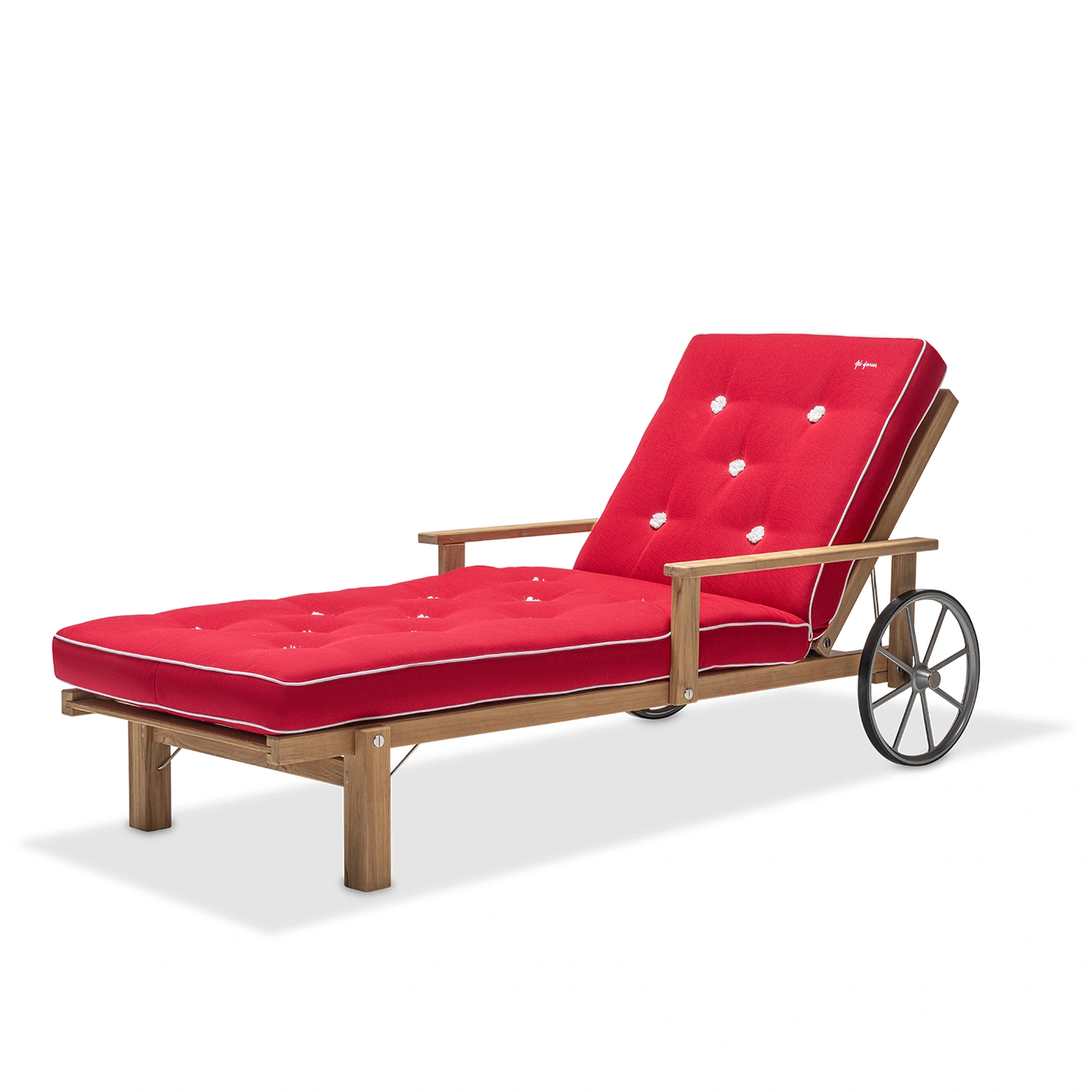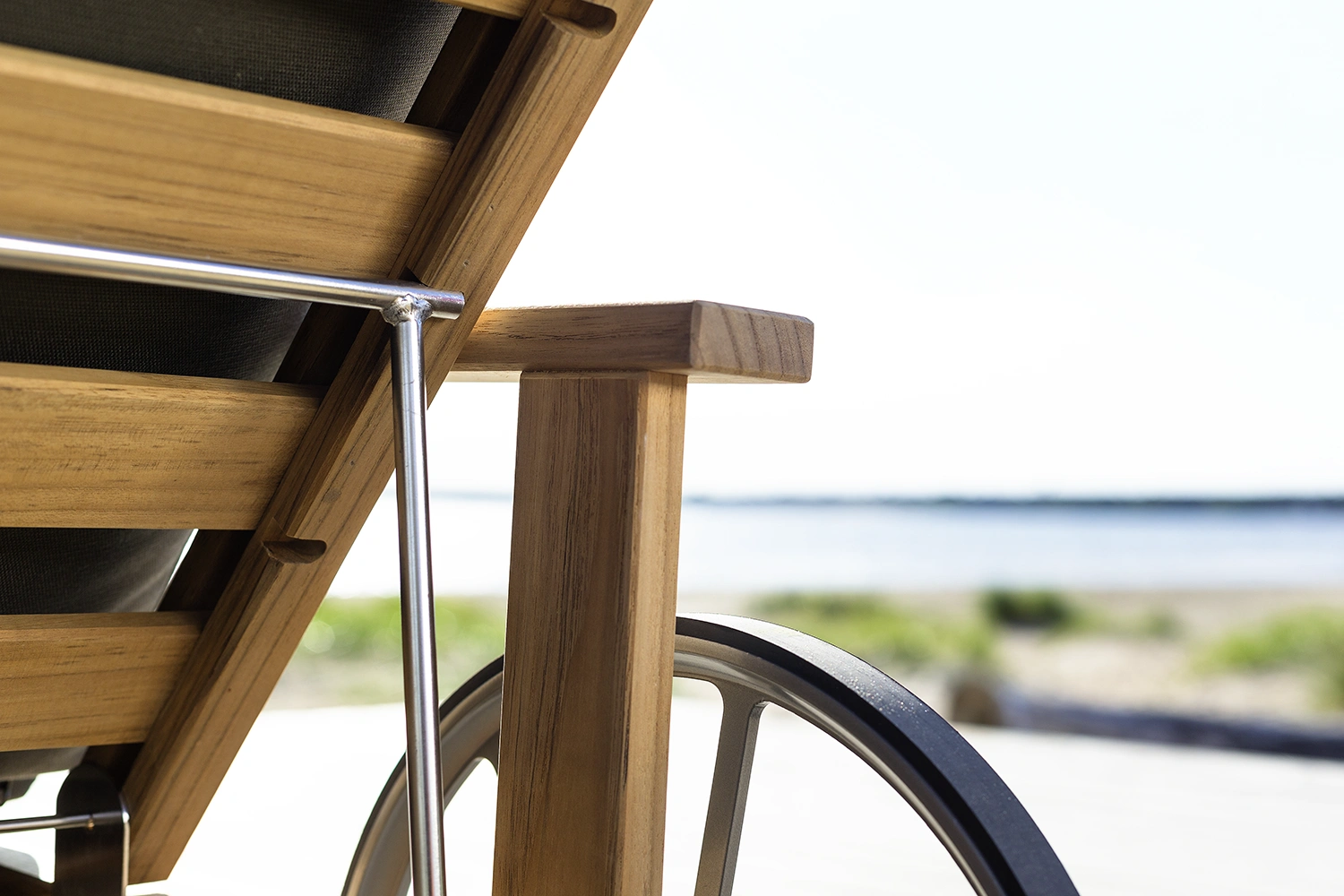Liggvagn 31 är en ikonisk solsäng med hjul, skapad för total avkoppling. Den generösa liggytan och det lutande ryggstödet gör den till en favorit vid poolen eller på terrassen. Teakens varma ton och den genomtänkta designen ger en känsla av lyx och lugn.