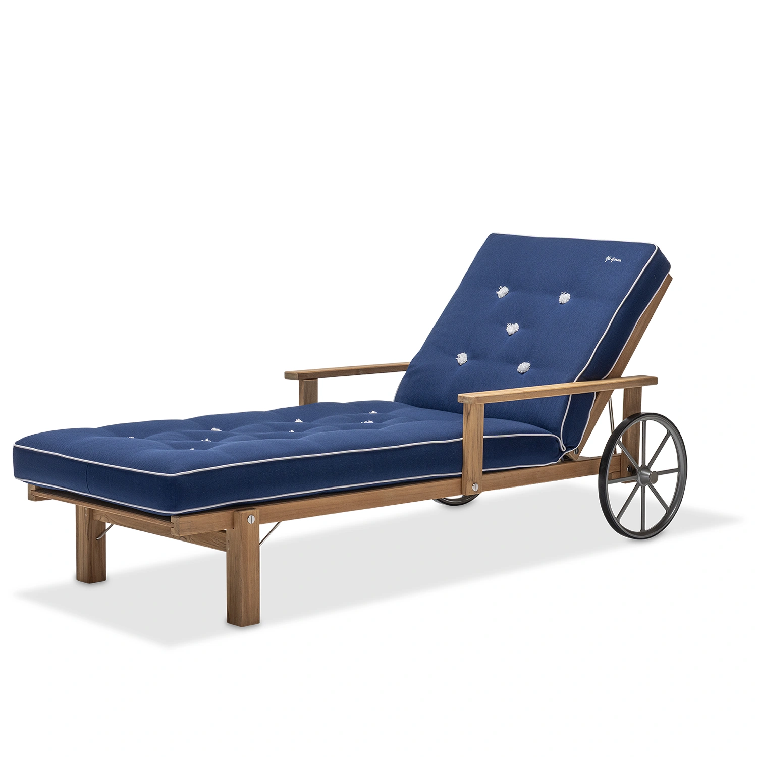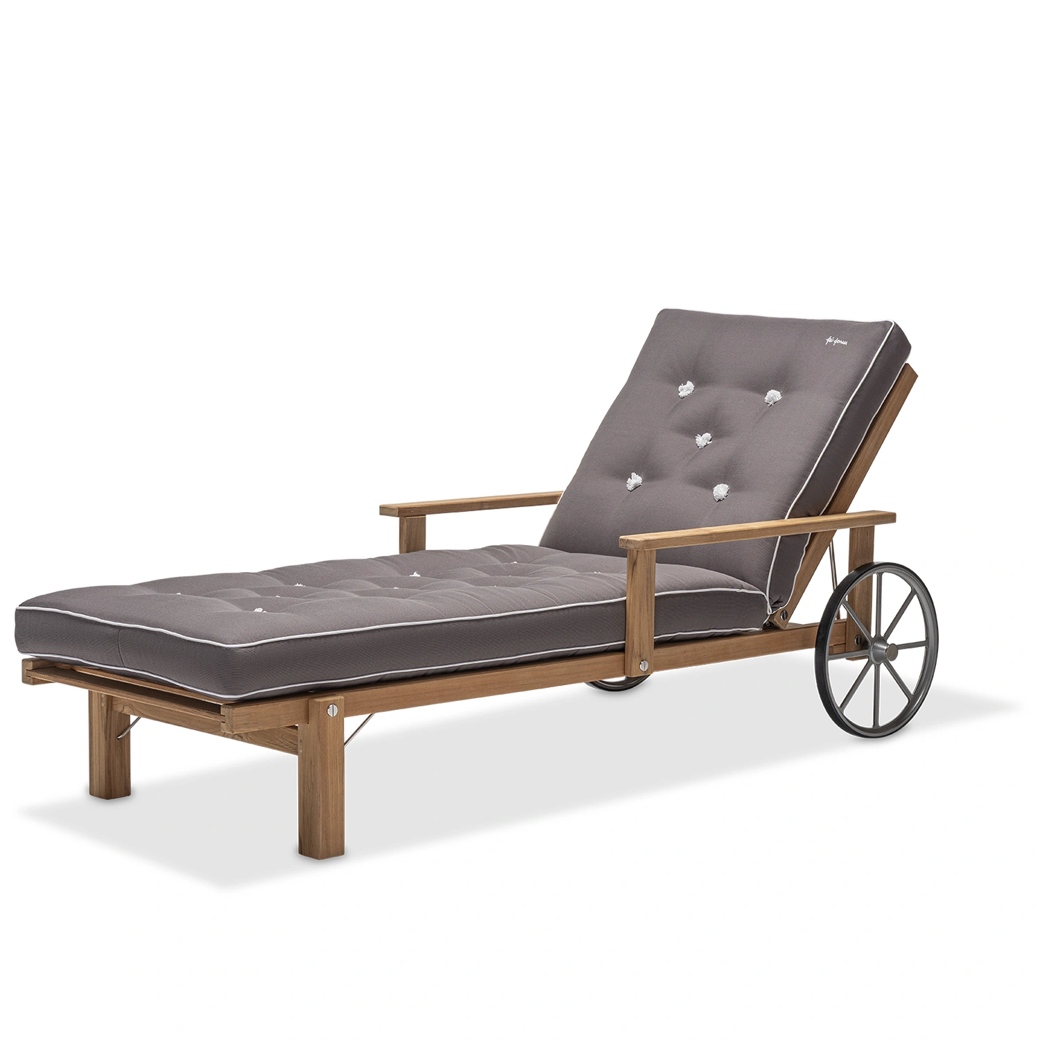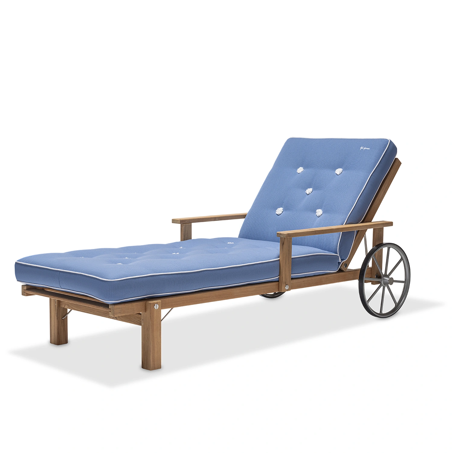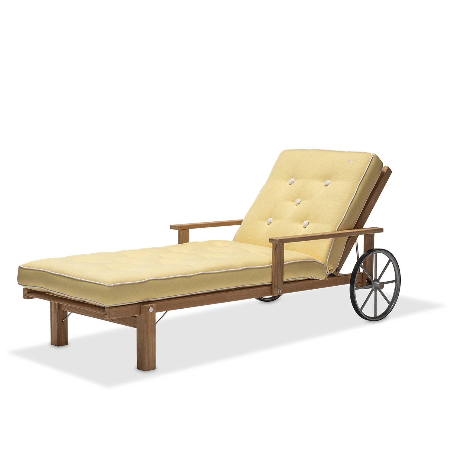Solsängen levereras här komplett med en skräddarsydd dyna som ger extra komfort och förstärker den klassiska känslan. Dynorna finns att välja i olika modeller.
