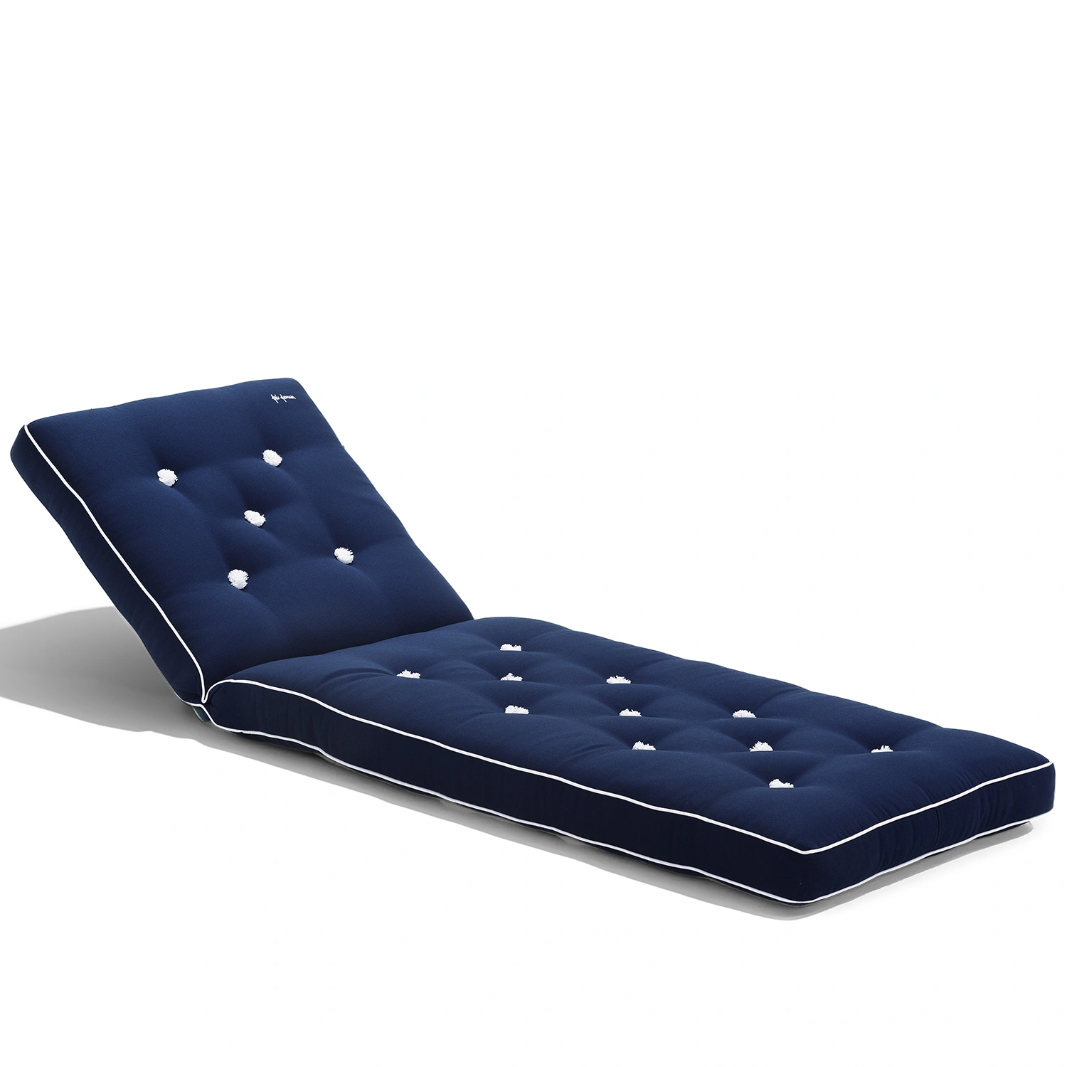 Fri Form Liggvagnsdyna i blått är ett stilfullt val som ger din uteplats en klassisk och marin känsla. Dynan är vändbar och tillverkad i scotchgardbehandlad dralon som är slitstark och väderbeständig. Med vit paspoal, klädda knappar och Fri Form-brodyr kombineras komfort och tidlös design. Dynan är 9 cm tjock och passar Fri Forms liggvagnar.