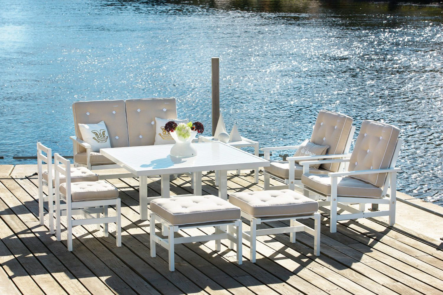 Aluminiummöbler kräver väldigt lite underhåll, torka av med en fuktig trasa tillsammans med ett milt rengöringsmedel och möbeln kommer hålla sig fin under lång tid....